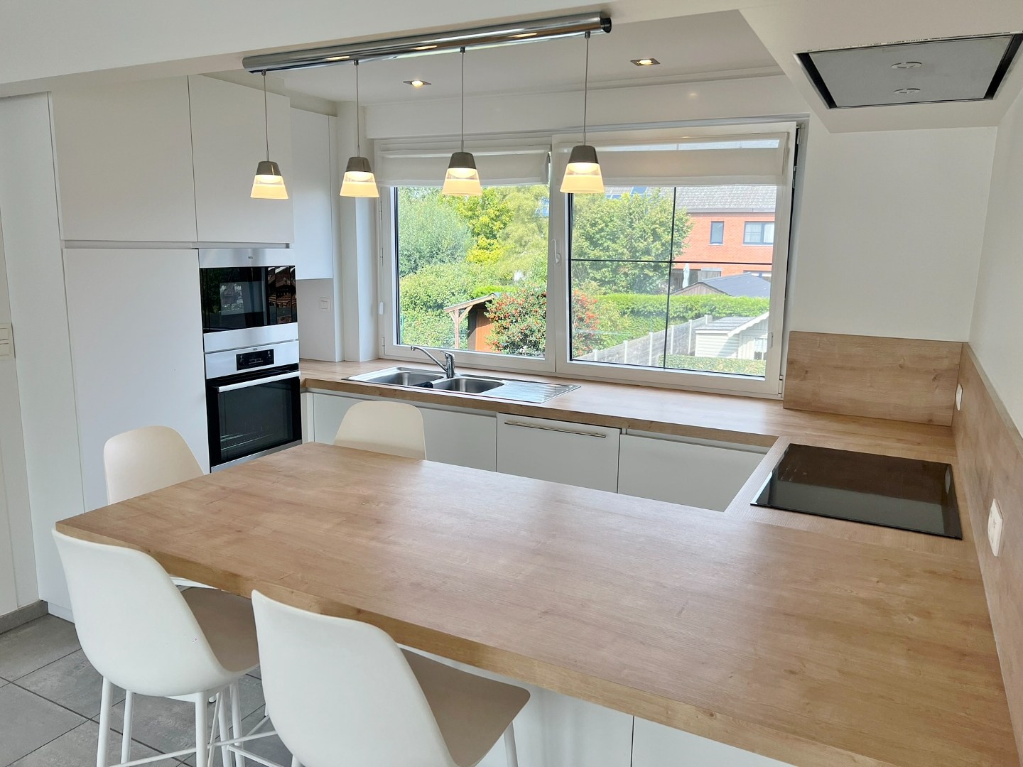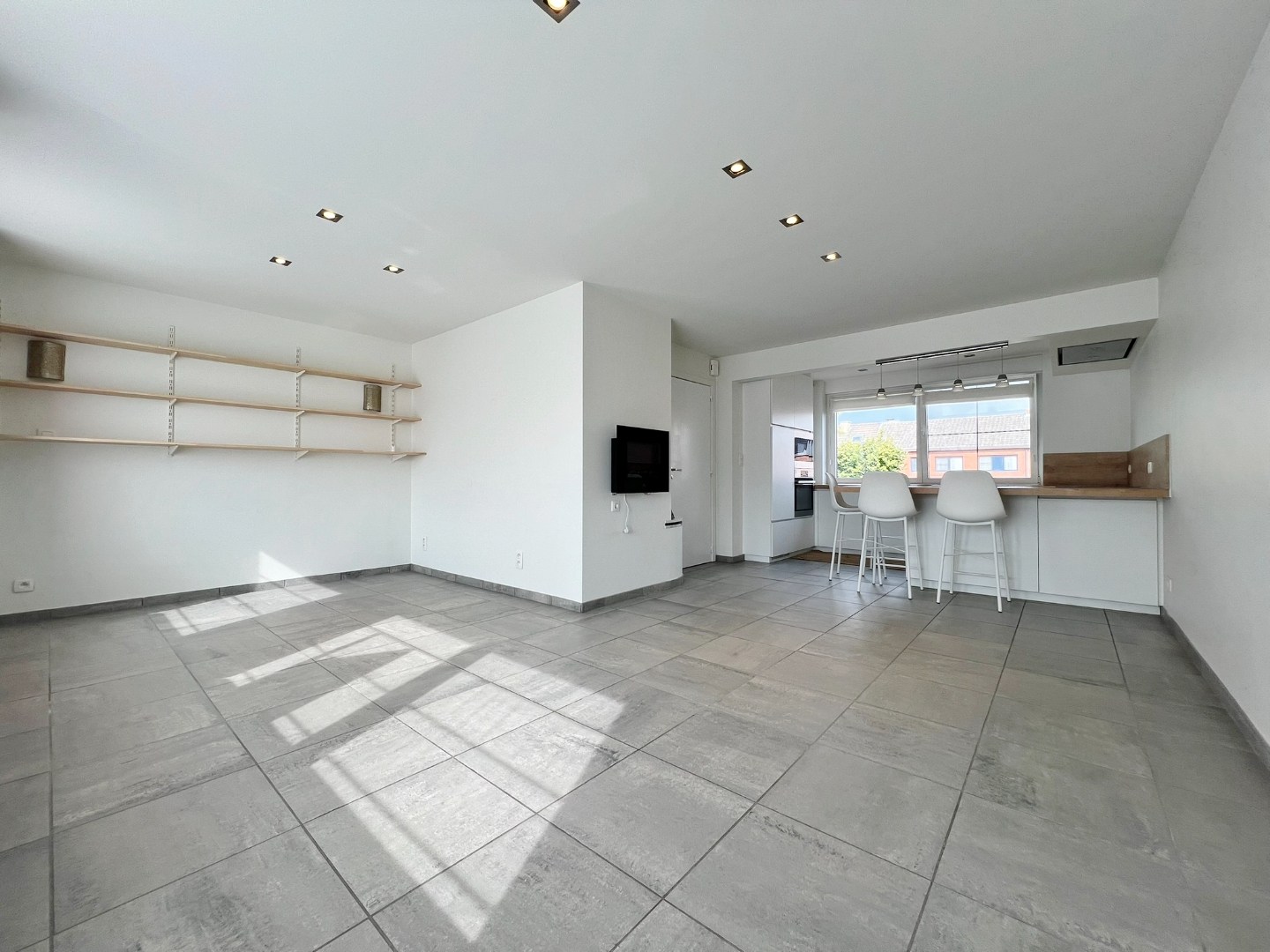 +1 verdiep: ruime lichtrijke leefruimte met open volledig ingerichte keuken en apart toilet.