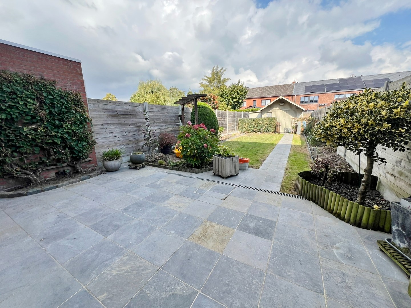 Buiten is een zonnige volledig afgesloten tuin met tuinhuis, er is tevens een private oprit.