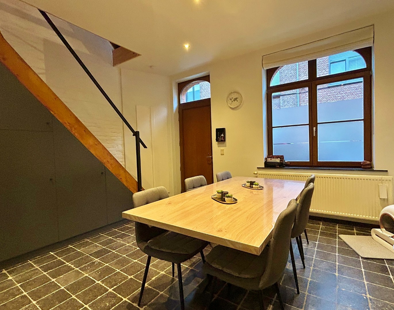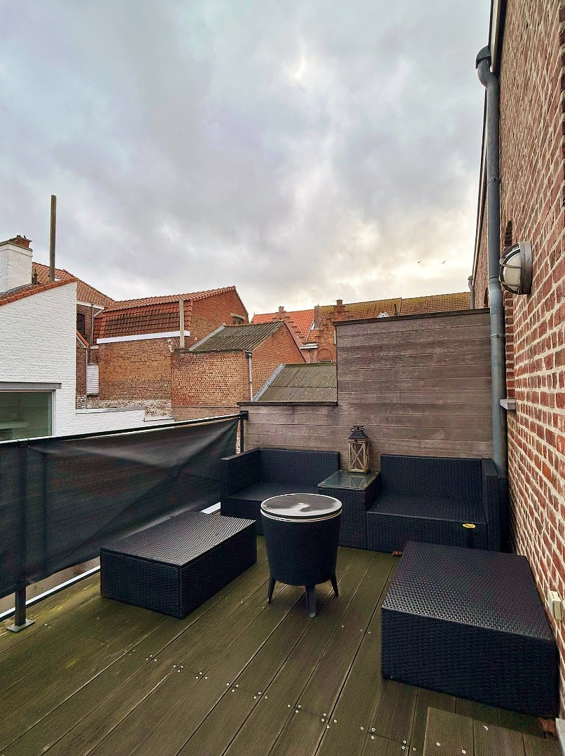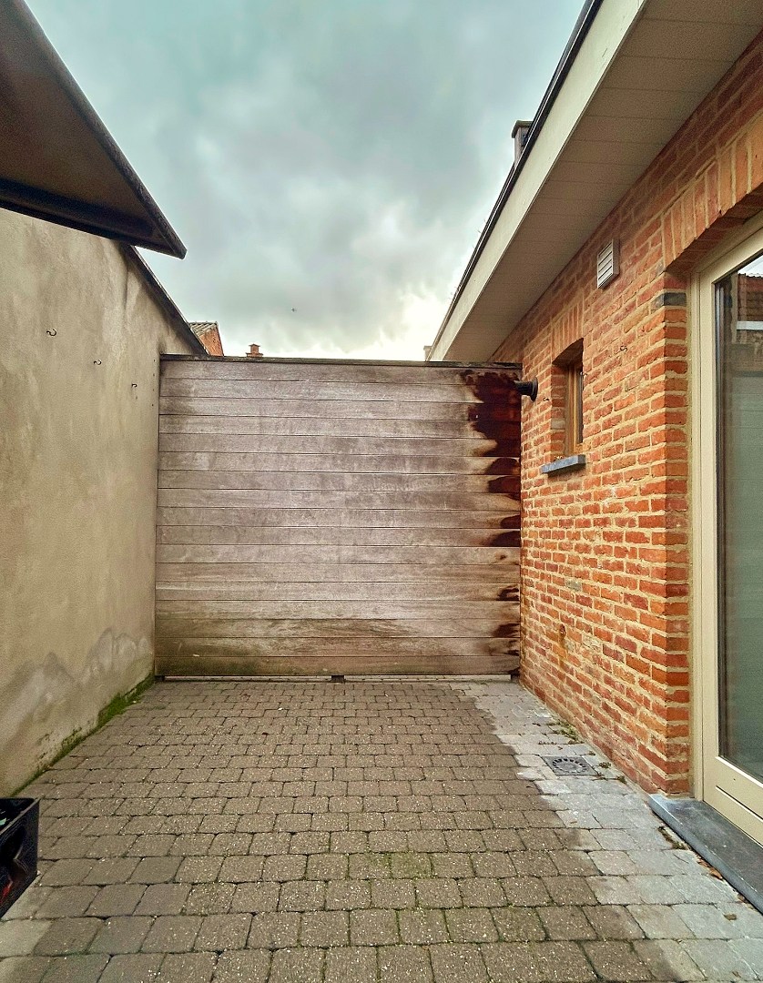 Deze woning bevindt zich op wandelafstand van het centrum van Ieper en is als volgt ingedeeld: de gelijkvloers bestaat uit een lichtrijke eetruimte met aansluitend een ingerichte keuken en een badkamer met lavabomeubel, douche, toilet en aansluiting voor de wasmachine. Via de keuken is er toegang tot het koertje.