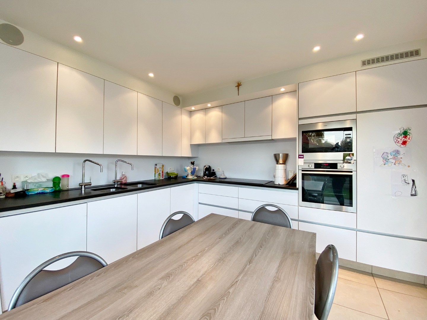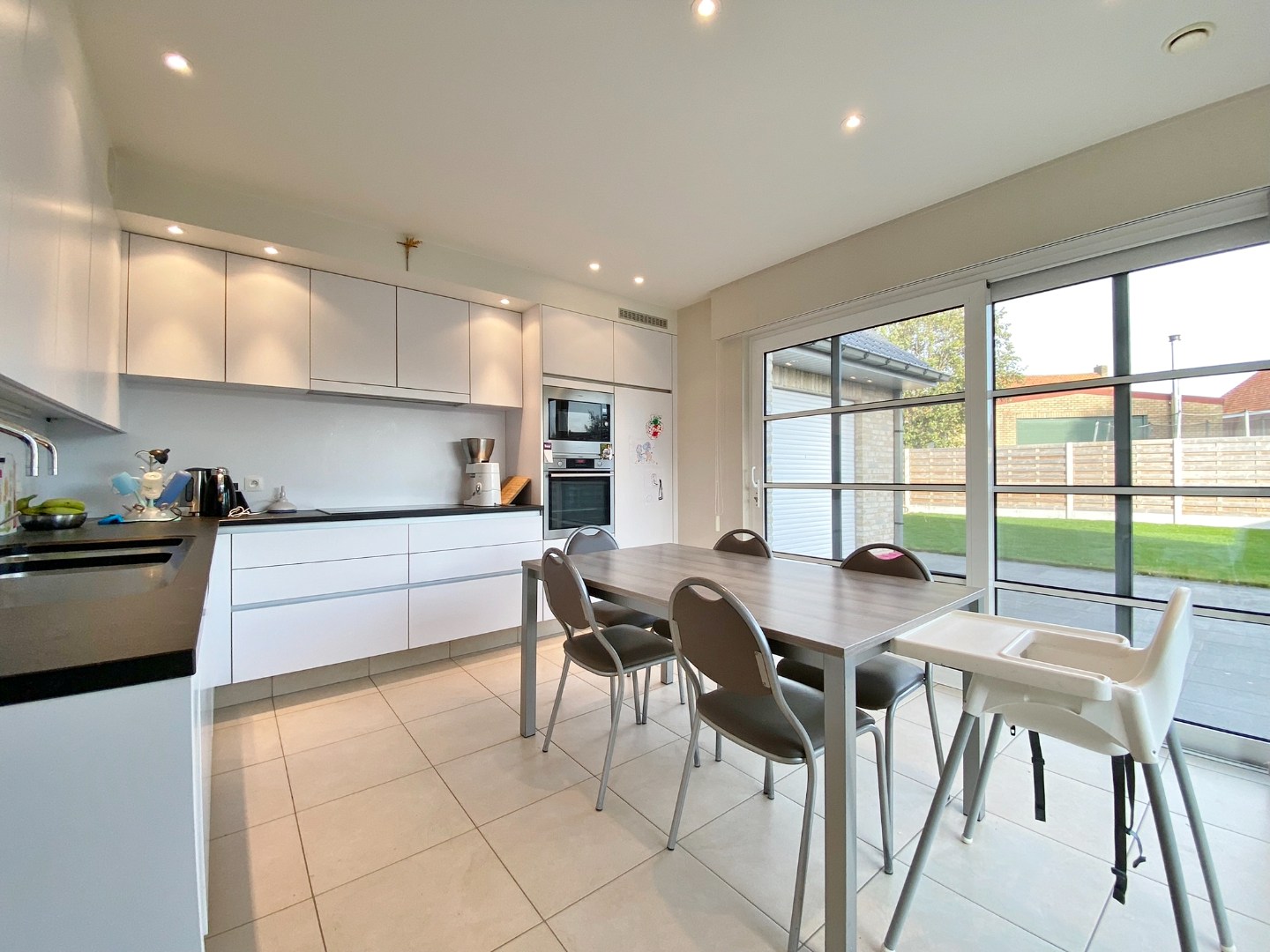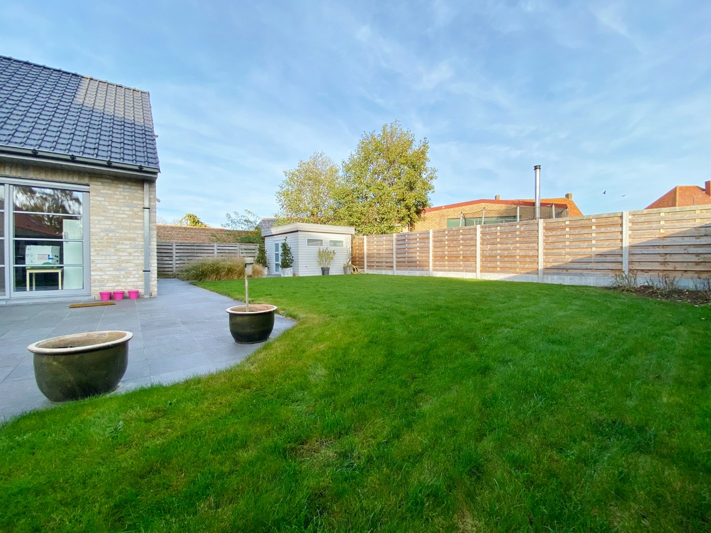 Deze woning is gelegen in de dorpskern van Noordschote en omvat een gelijkvloerse verdieping met inkom, gastentoilet, ruime lichtrijke leefruimte, volledig ingerichte keuken, 2 slaapkamers, badkamer met lavabomeubel, inloopdouche en toilet, wasplaats en garage. Op het eerste verdiep zijn 2 ruime slaapkamers, een zolderruimte en een badkamer met lavabomeubel, ligbad, douche en toilet. Buiten is een zonnige volledig afgesloten tuin met terras en tuinhuis.