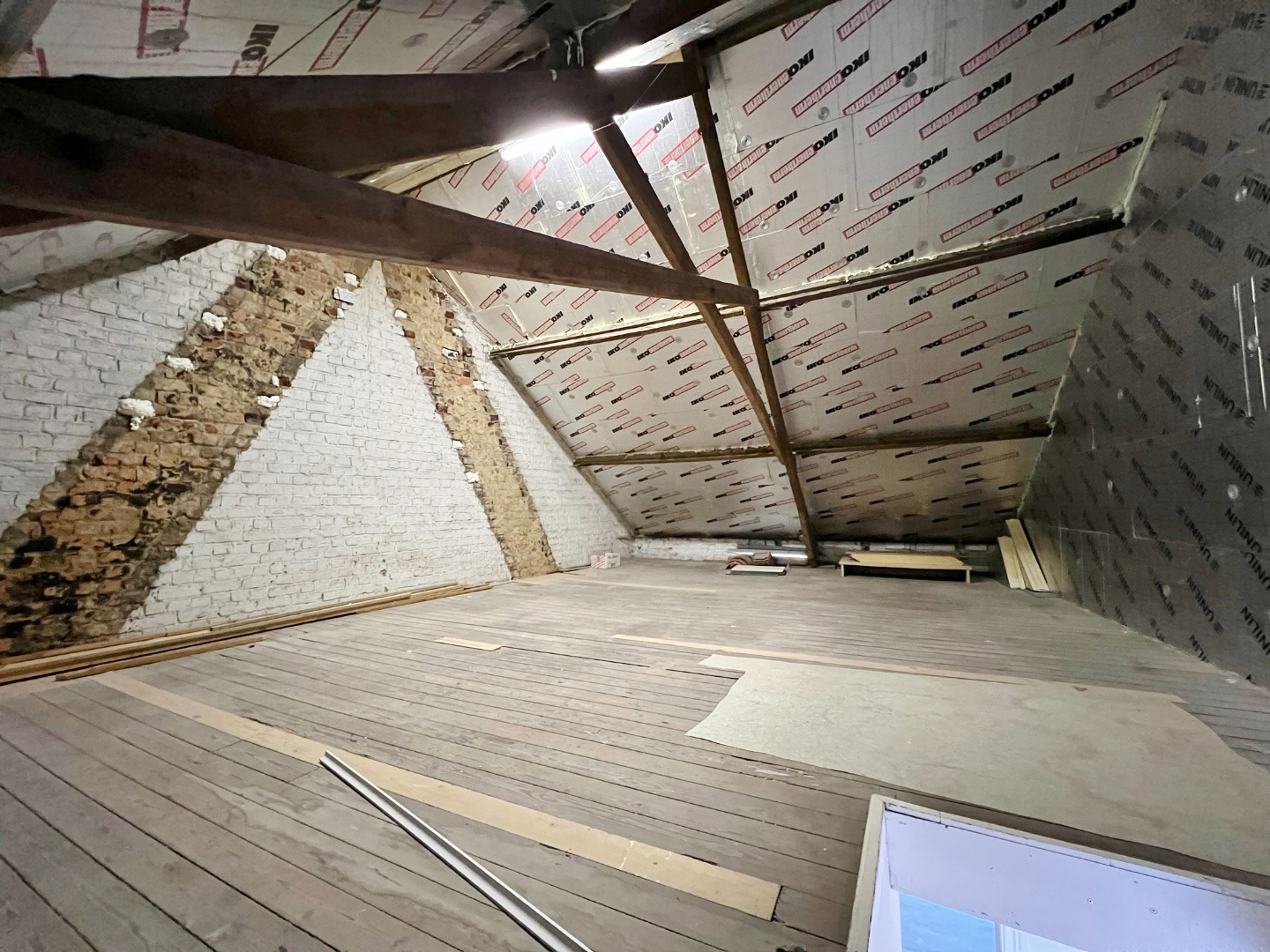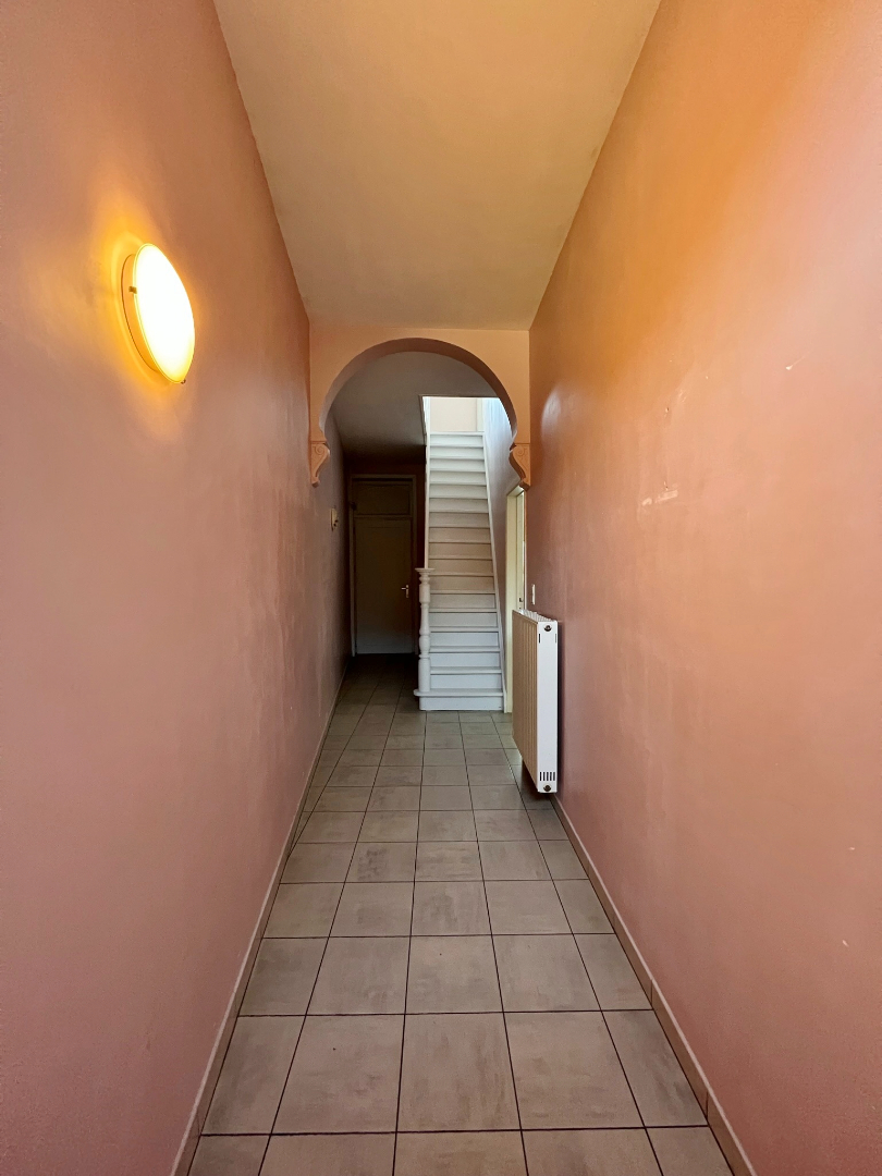Deze rijwoning is centraal gelegen en omvat een inkom, ruime lichtrijke leefruimte met open ingerichte keuken, wasplaats, badkamer met douche, toilet en lavabomeubel, bergruimte met toegang tot tuin ( gemakkelijk voor fietsen,..). Op het eerste verdiep zijn 3 slaapkamers. Op het tweede verdiep is een ruime zolder bereikbaar via vaste trap. Buiten is een zonnige afgesloten tuin met terras (zuid-west)
