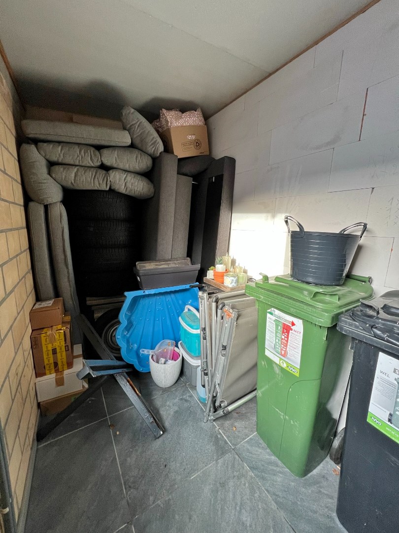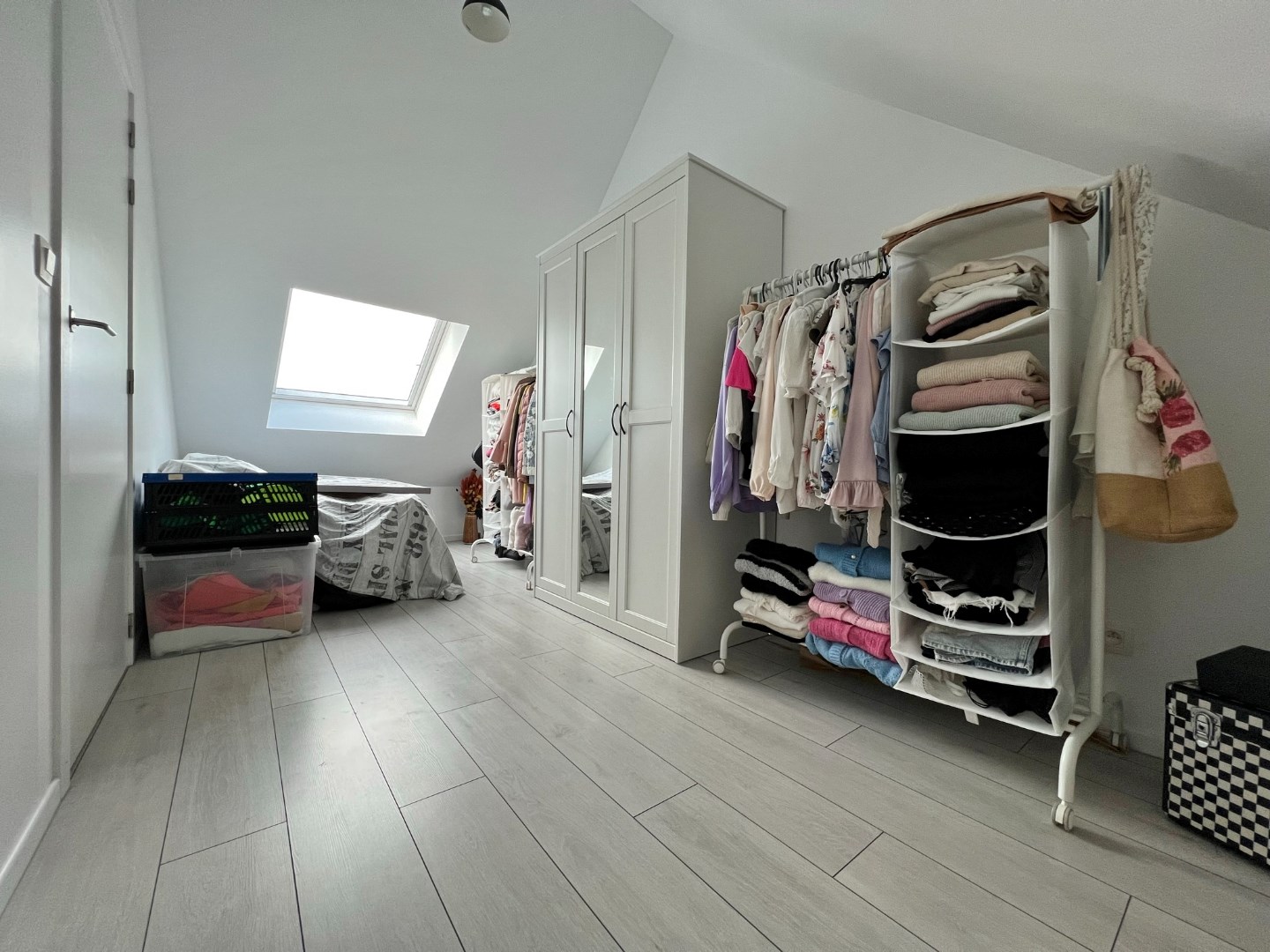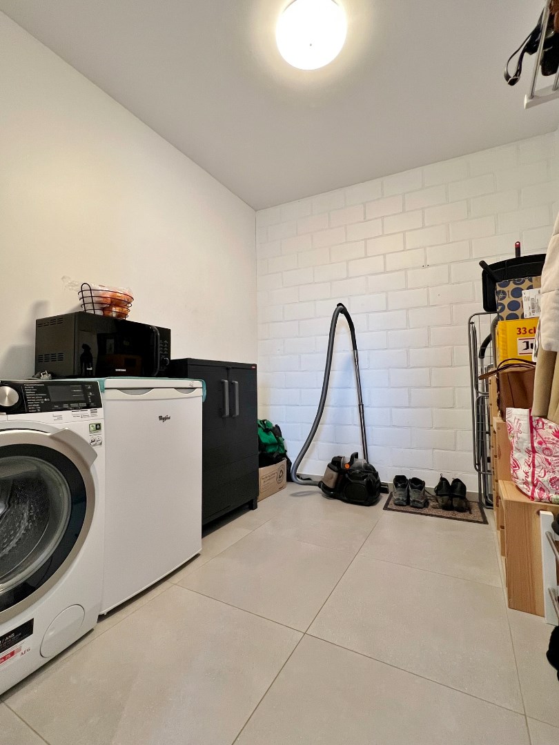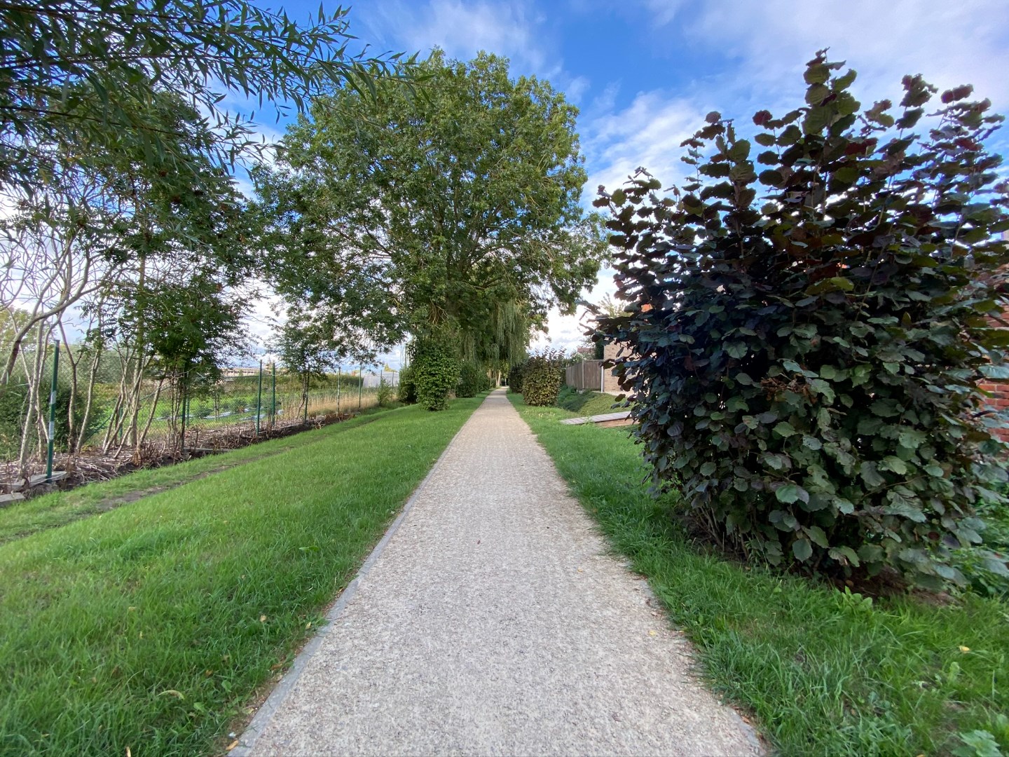 Deze centraal gelegen woning werd volledig vernieuwd en omvat een ruime lichtrijke leefruimte met open volledig ingerichte keuken, bergplaats/wasplaats, apart toilet, badkamer met inloopdouche en lavabomeubel. Op het eerste verdiep zijn 2 slaapkamers. Buiten is een volledig afgesloten koer met buitenberging en uitweg langs achter via het wandelpad.