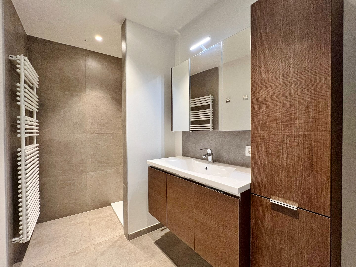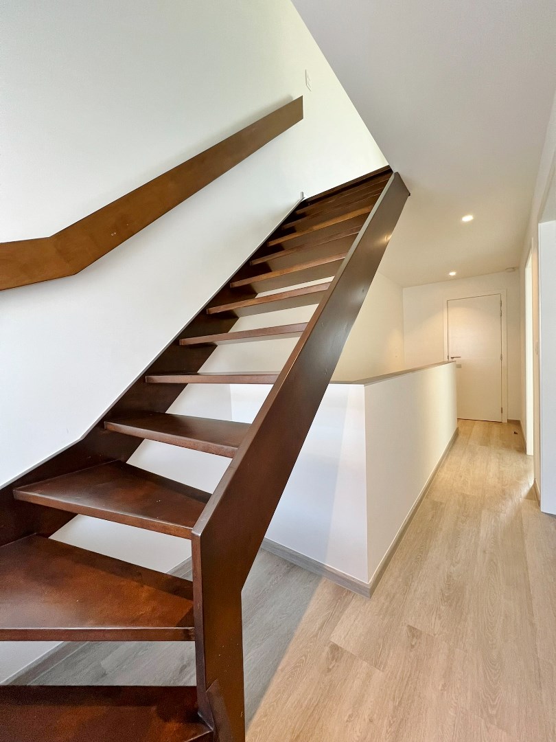 Deze woning werd volledig vernieuwd en omvat een gelijkvloerse verdieping met inkom, ruime lichtrijke leefruimte met open volledig ingerichte keuken, badkamer met inloopdouche en dubbel lavabomeubel, apart toilet en een bergruimte ( handig voor fietsen en vuilbakken ). Op het eerste verdiep zijn 2 volwaardige slaapkamers en een apart toilet en op het derde verdiep is een grote master bedroom.