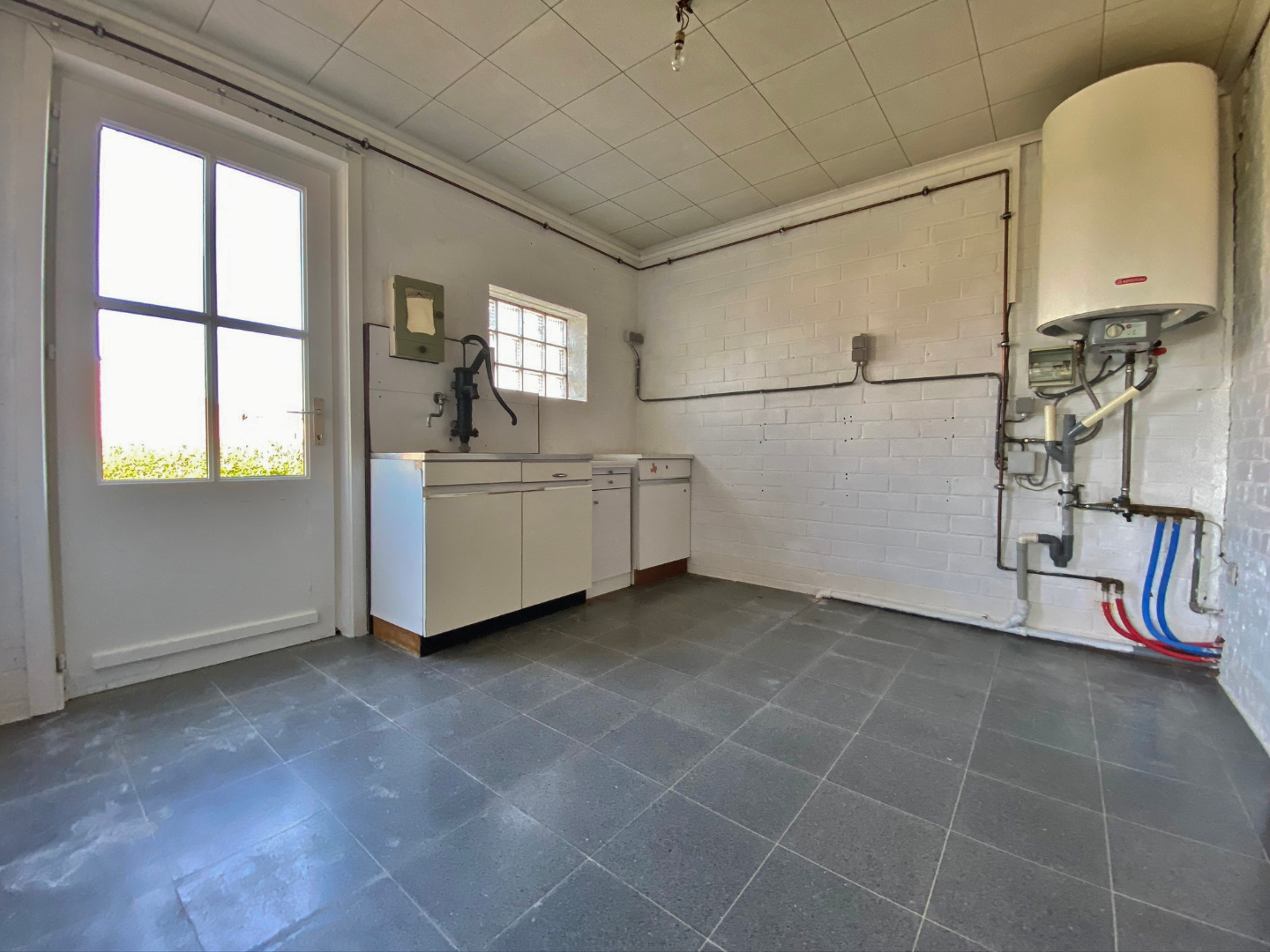 Deze woning omvat een gelijkvloerse verdieping met inkom, leefruimte met eet- en zitplaats, ruime leefkeuken, wasplaats, vernieuwde badkamer met douche, lavabomeubel en toilet, een slaapkamer en een voutekamer met kelder onder. Op het eerste verdiep is een ingerichte slaapkamer en open zolderruimte.