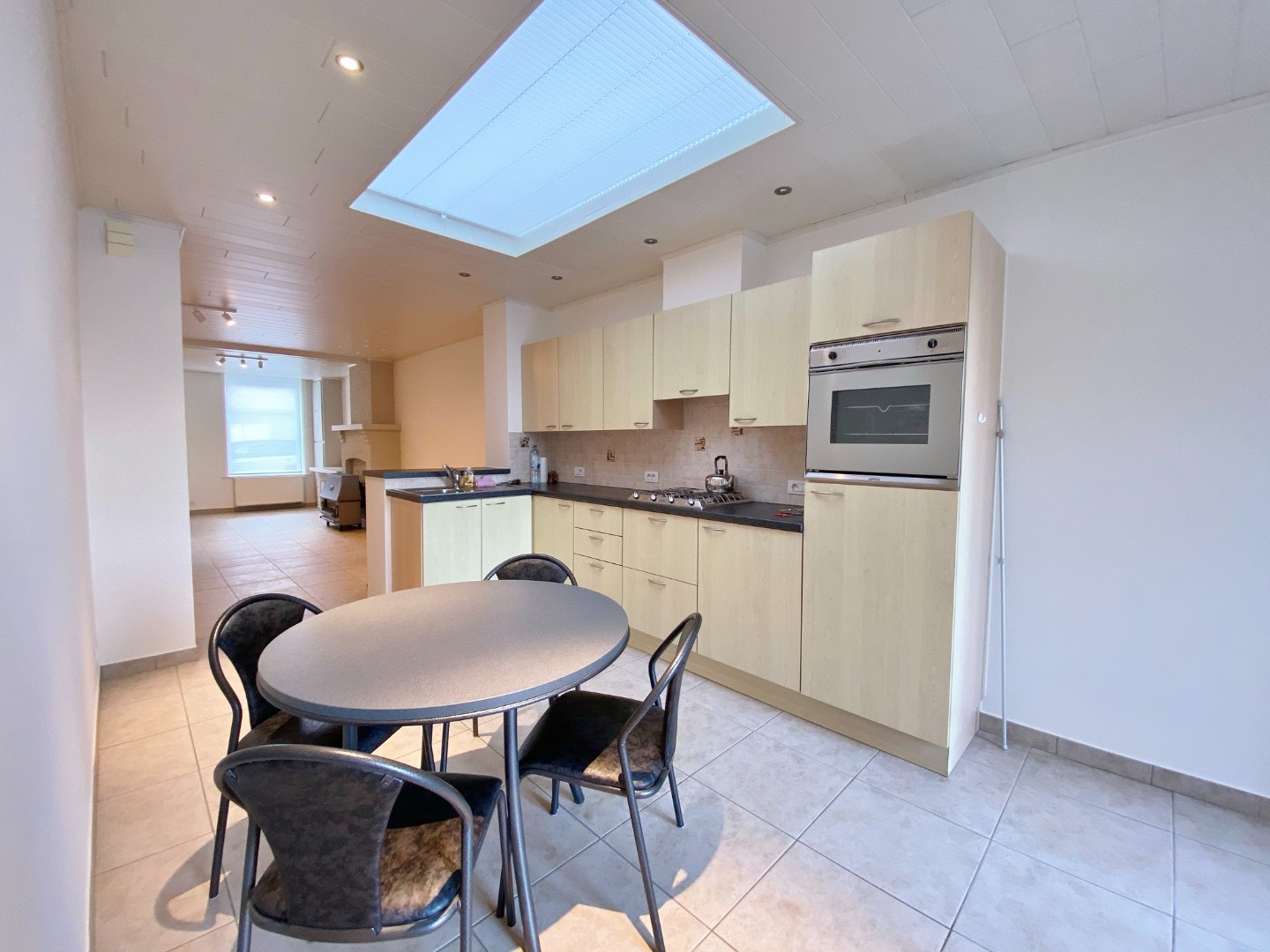 Deze woning omvat een gelijkvloerse verdieping met inkom, ruime leefruimte met open keuken, slaapkamer, apart toilet, badkamer met ligbad, douche en lavabomeubel en een garage. Op het eerste verdiep zijn 2 slaapkamers waarvan 1 met dressing en een tweede badkamer met douche, lavabomeubel en toilet. Op het zolderverdiep is 1 ruime slaapkamer. Buiten zijn een volledig afgesloten tuin met terras, buitenberging en tuinhuis. ( tuin is toegankelijk via zijweg )