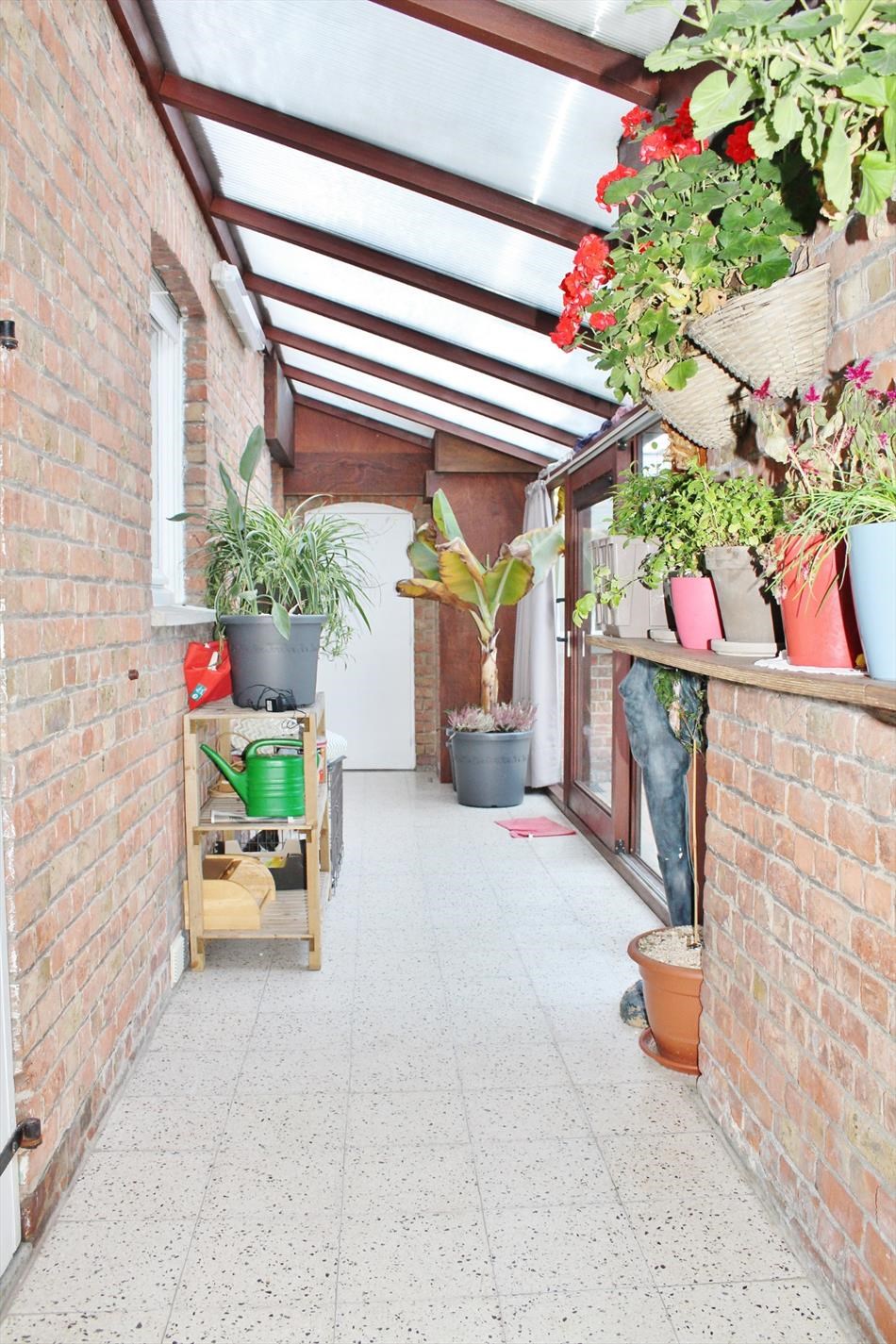 Buiten kan je genieten van een gezellige, zonnige tuin met verschillende buitenbergingen.