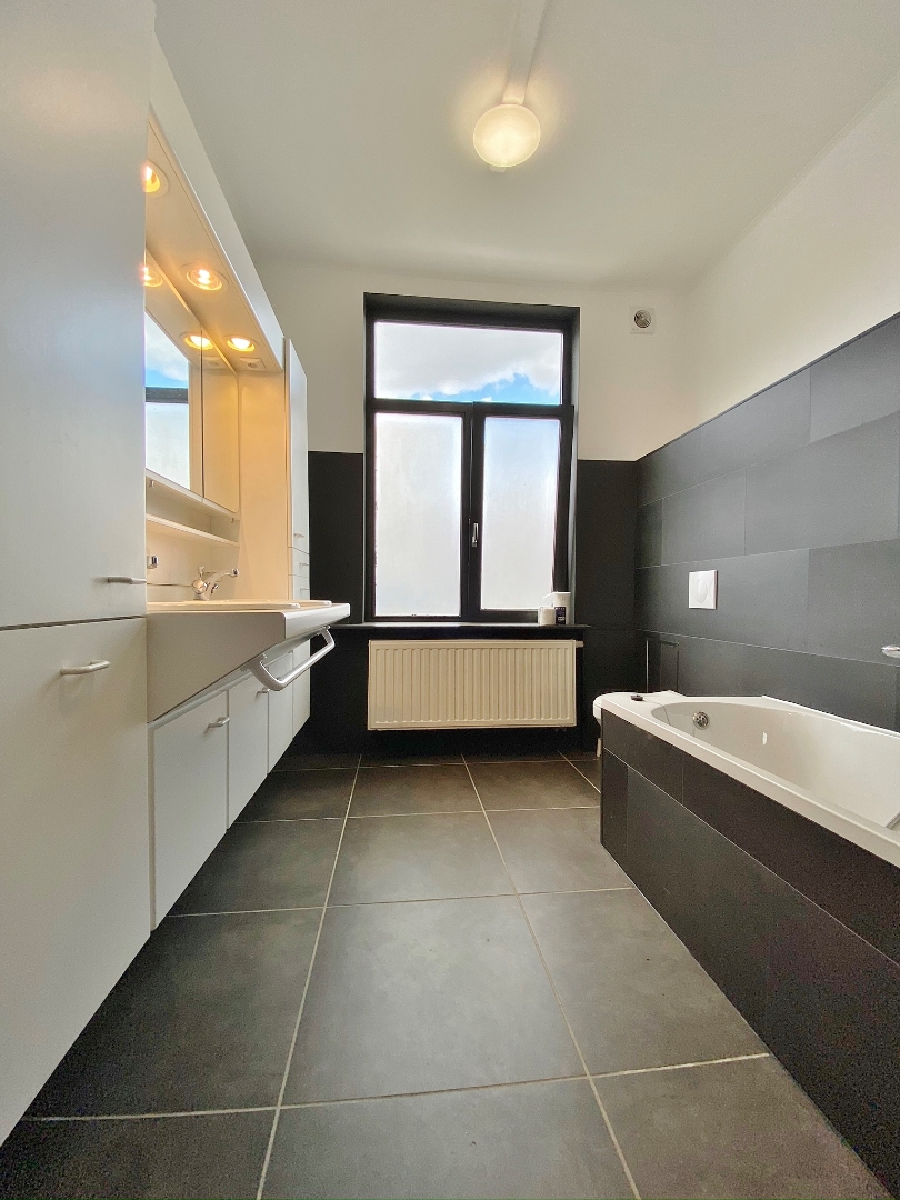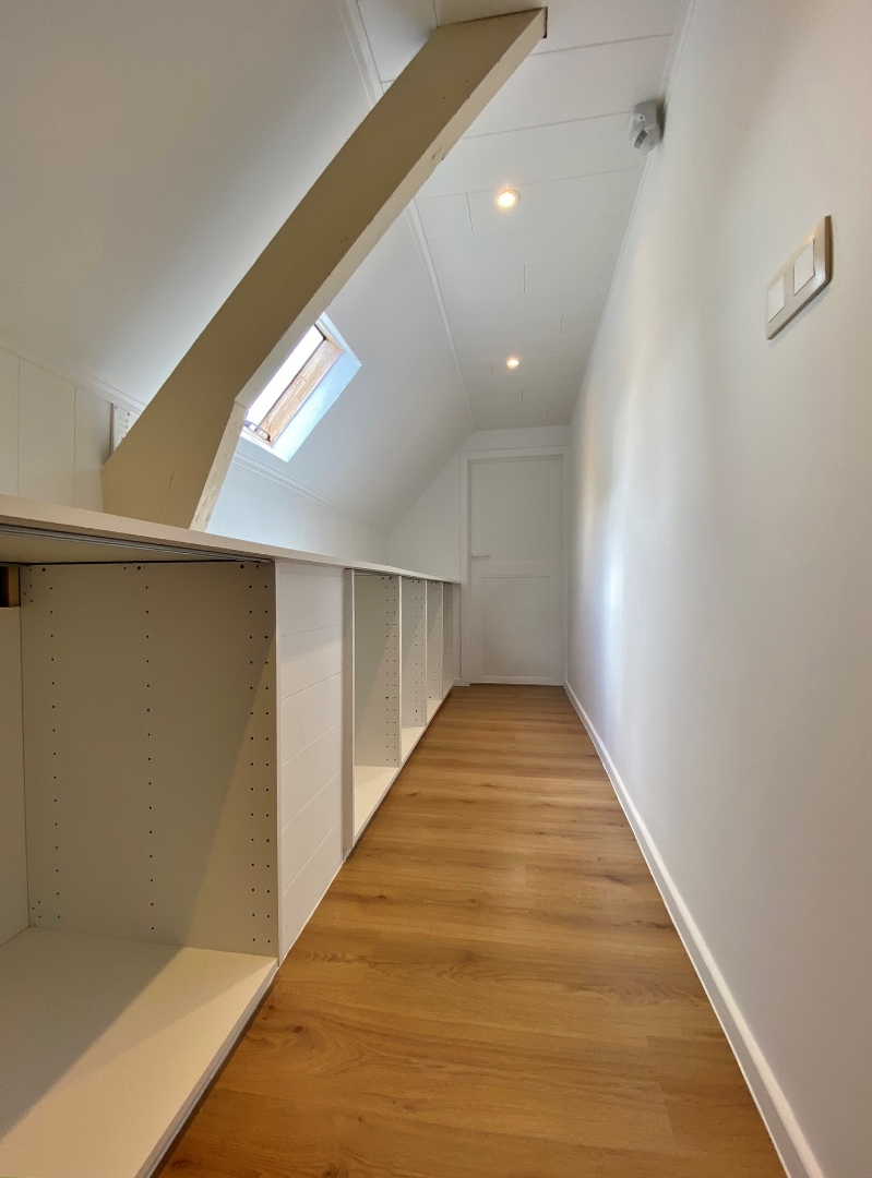 Deze woning omvat een gelijkvloerse verdieping met inkom, ruime lichtrijke leefruimte met zicht op de tuin, ingerichte keuken, bergplaats met aansluiting voor wasmachine, badkamer met bad, douche, lavabomeubel en toilet. Op het eerste verdiep zijn een nachthal met ingemaakte kasten en 3 slaapkamers.