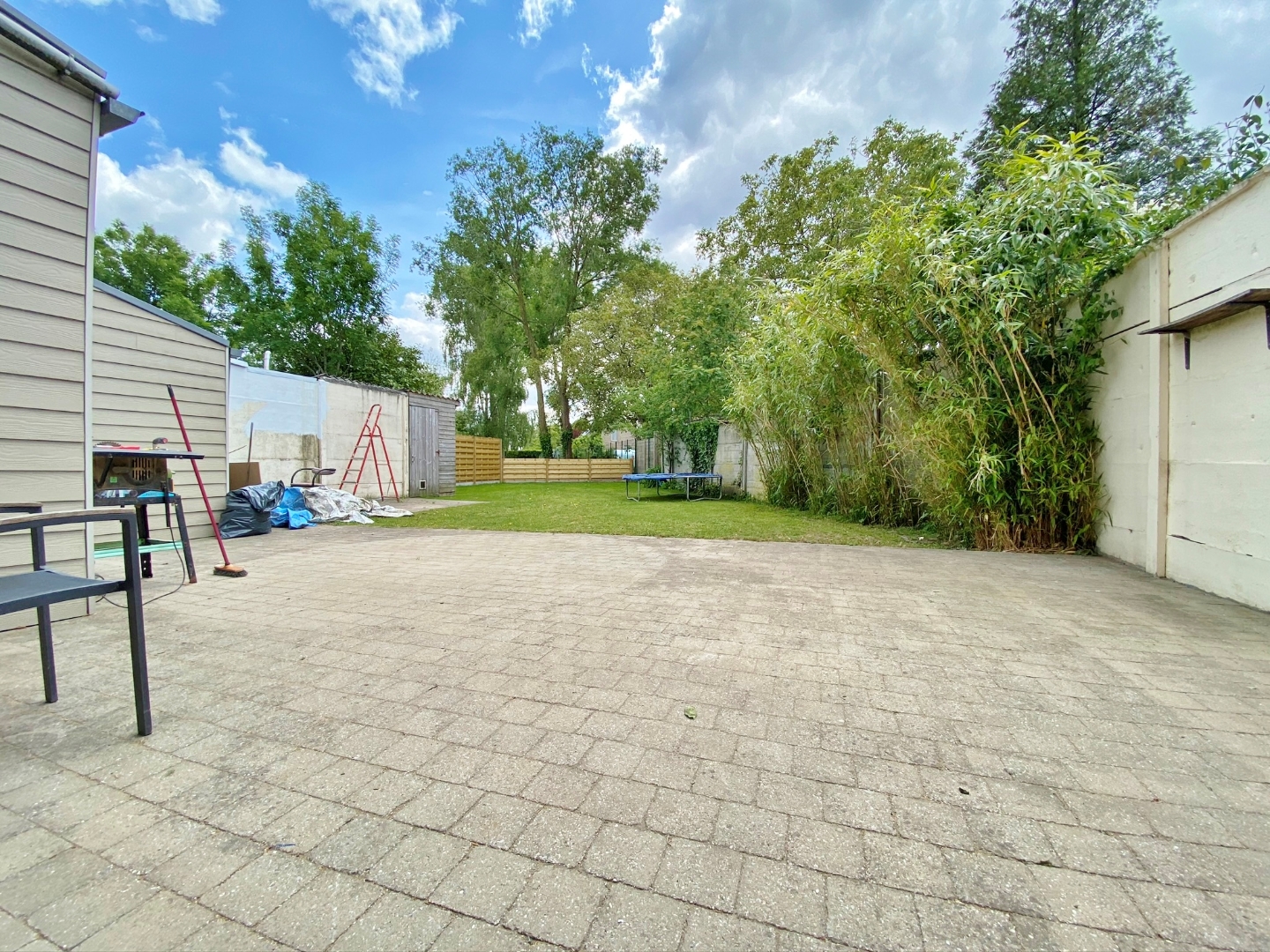 Buiten is een volledig omheinde gezellige zuid-gerichte tuin met terras.