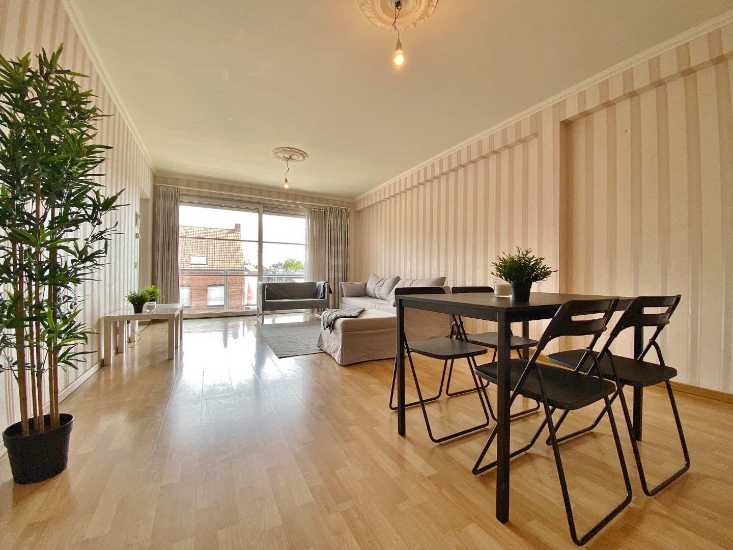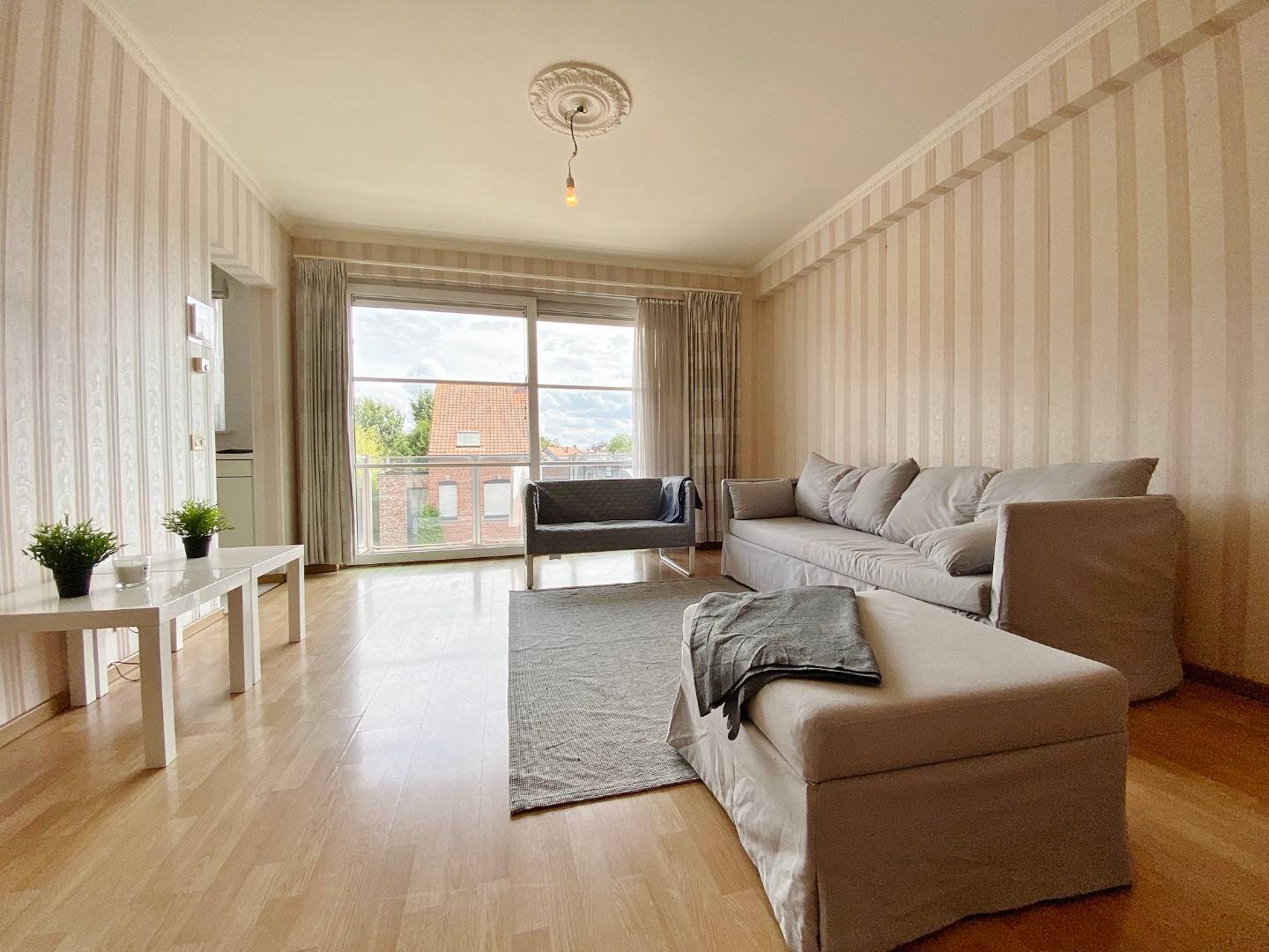 Dit appartement is gelegen op de 2de verdieping en omvat een inkom, apart toilet, ruime lichtrijke leefruimte met toegang tot terras, ingerichte keuken en aansluitende berging, 2 ruime slaapkamers, badkamer met lavabomeubel en bad en een aparte douchekamer.