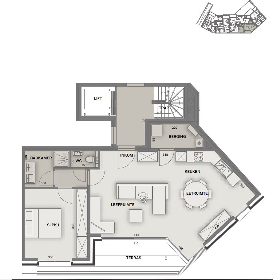 - personaliseren van uw appartement is nog mogelijk! ( bv: vloerbedekking, keuken, badkamer, binnendeuren en zelfs het aanpassen van niet dragende structuren kan besproken worden )