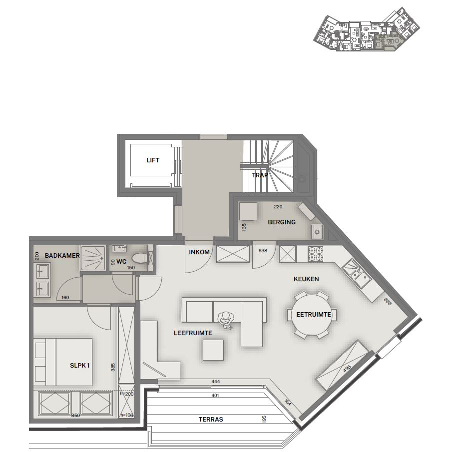 - personaliseren van uw appartement is nog mogelijk! ( bv: vloerbedekking, keuken, badkamer, binnendeuren en zelfs het aanpassen van niet dragende structuren kan besproken worden )