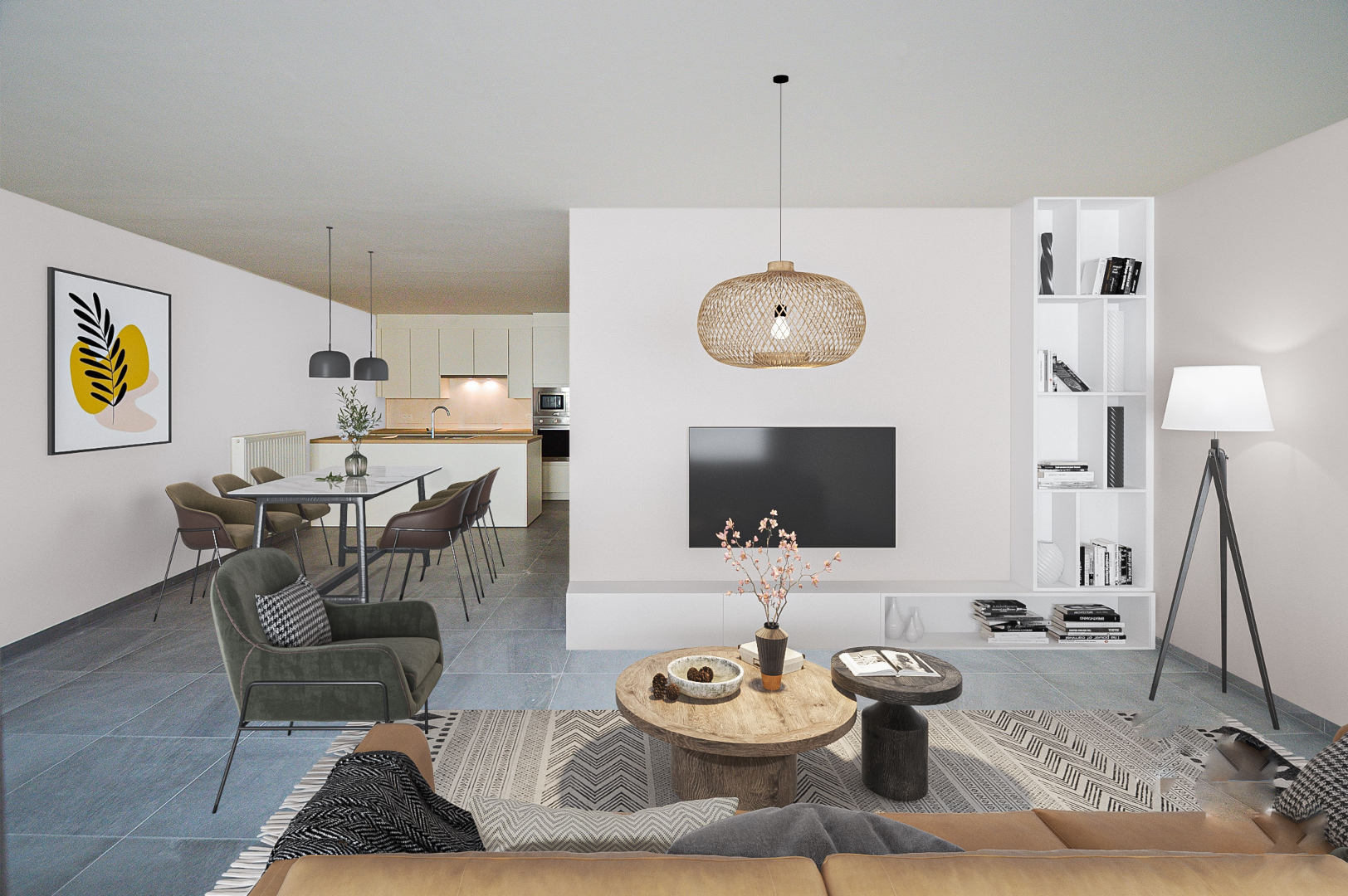 Daarnaast hebt u de lichtrijke woon- en eetkamer met open volledig geïnstalleerde keuken en berging.