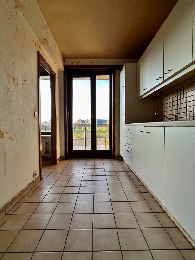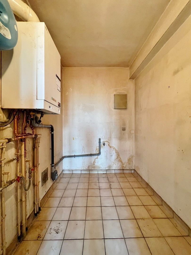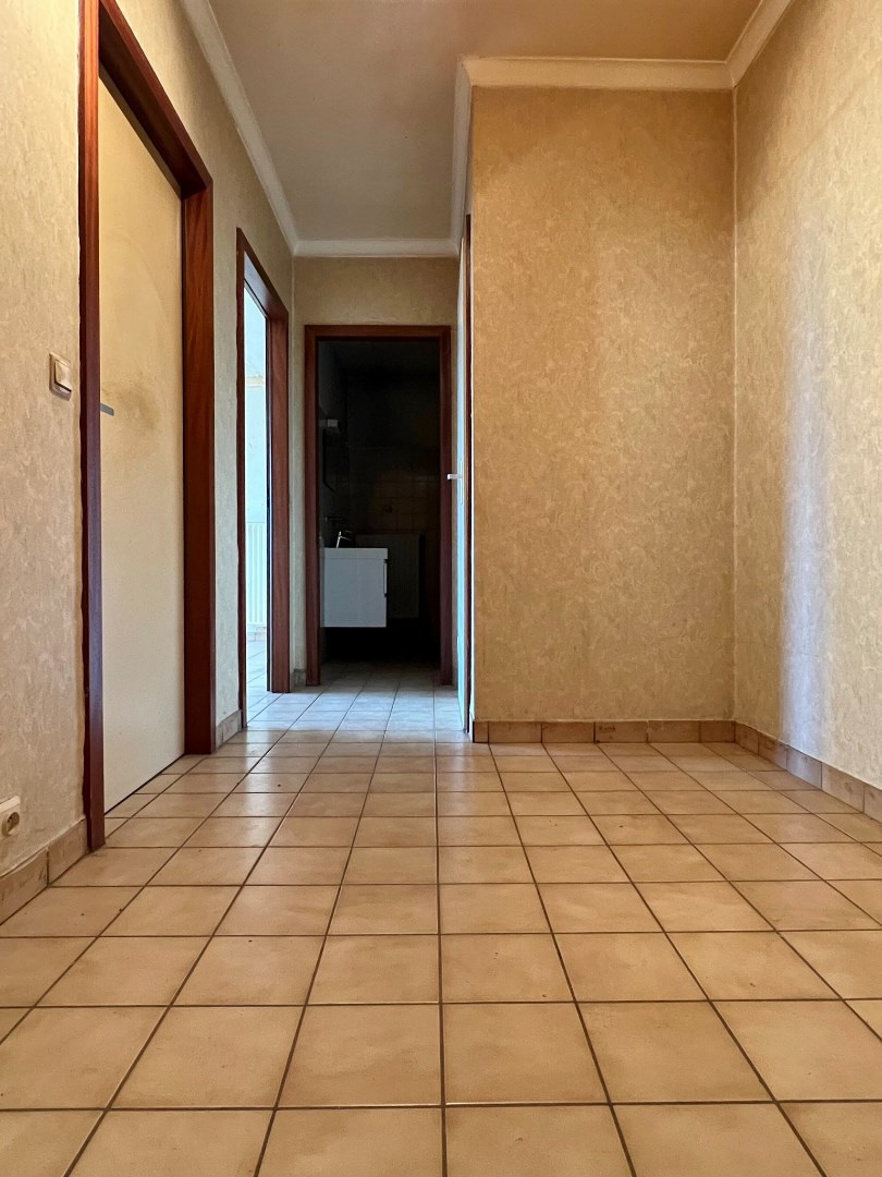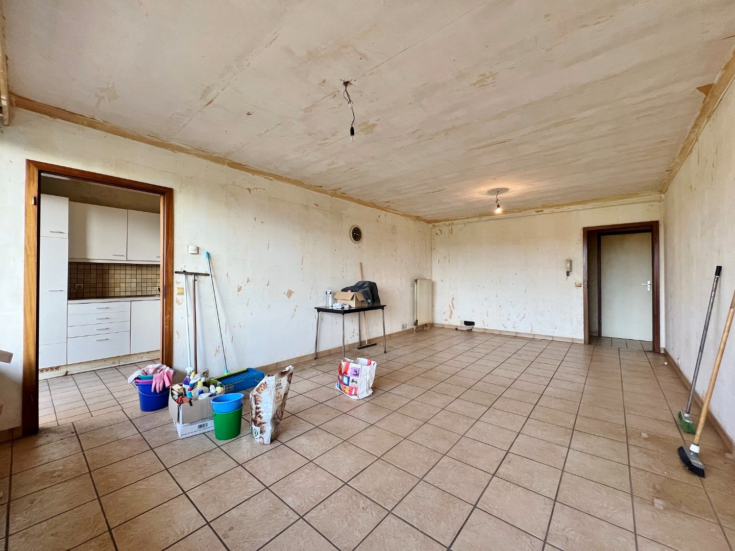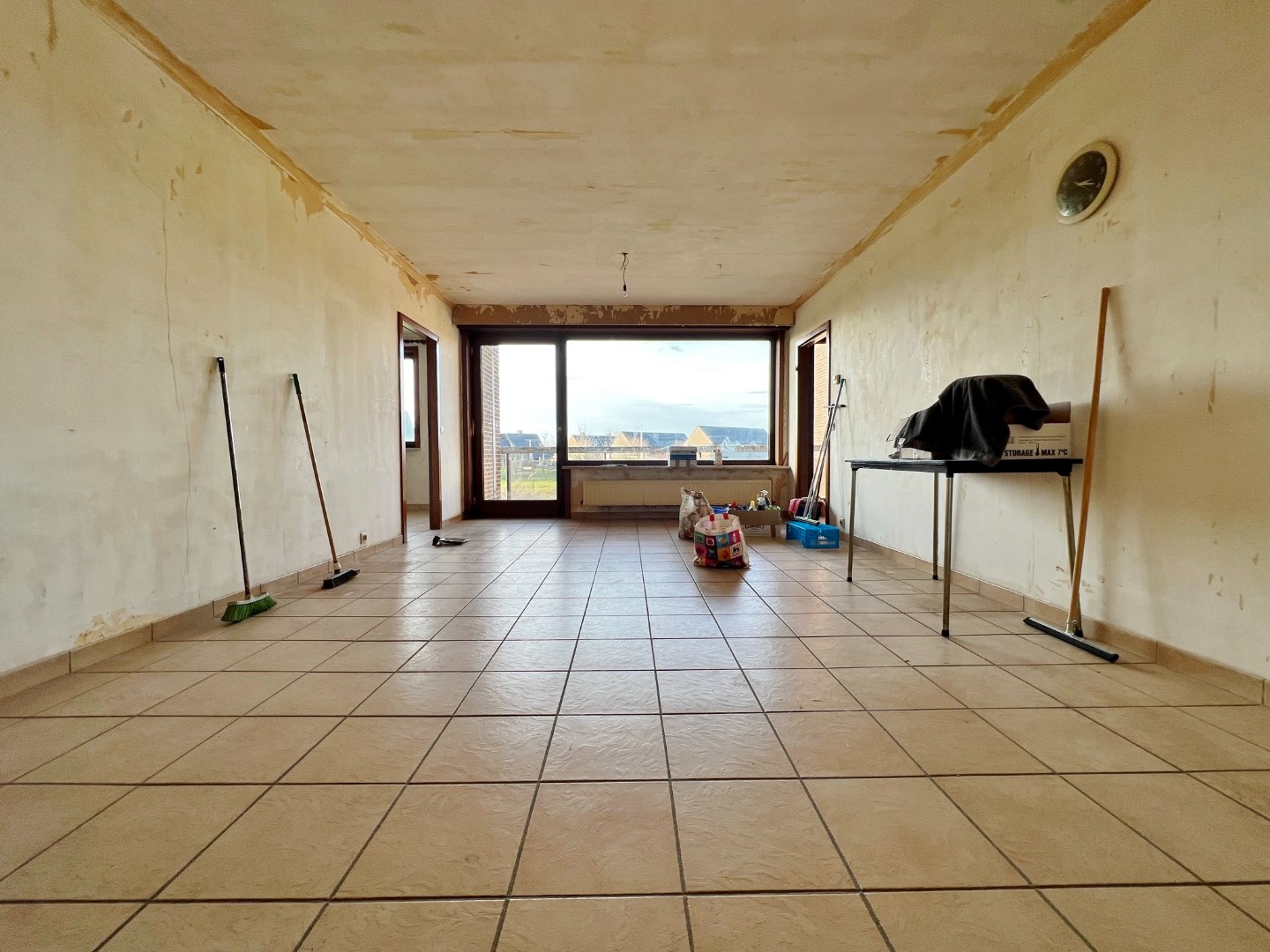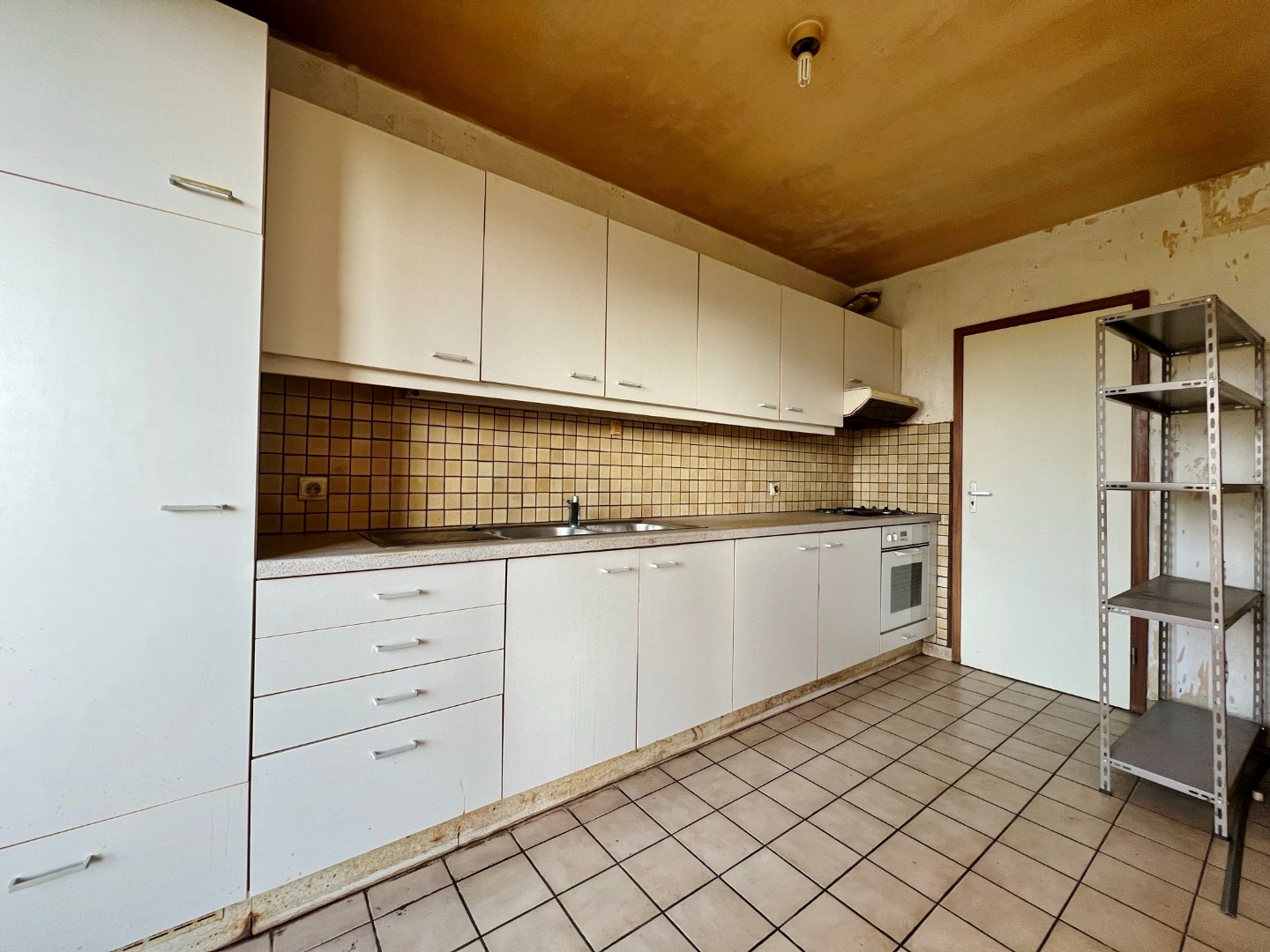 Dit te renoveren appartement is zeer rustig gelegen en omvat een inkom, gastentoilet, ruime lichtrijke leefruimte met aansluitend ingerichte keuken en ruim zonnig terras, bergruimte, 2 ruime slaapkamers en een badkamer met inloopdouche en lavabomeubel.