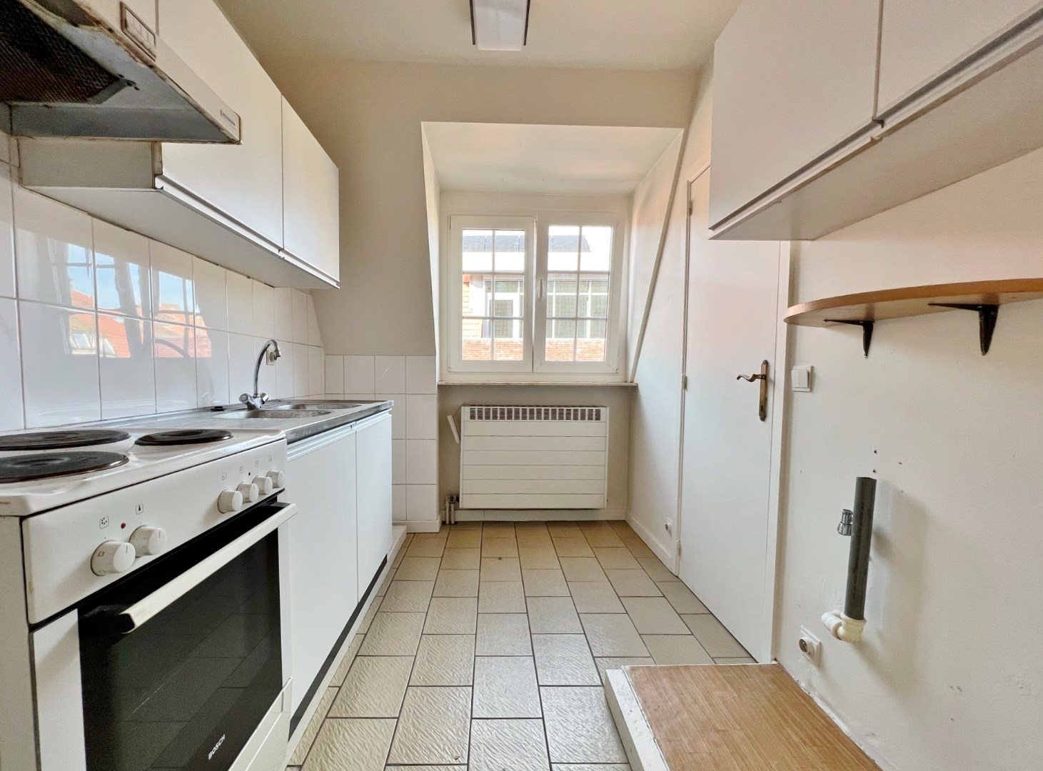 Dit appartement is gelegen op wandelafstand van de markt en omvat een inkom, lichtrijke leefruimte, ingerichte keuken, 2 slaapkamers, bergruimte en een badkamer met lavabo, bad en toilet.