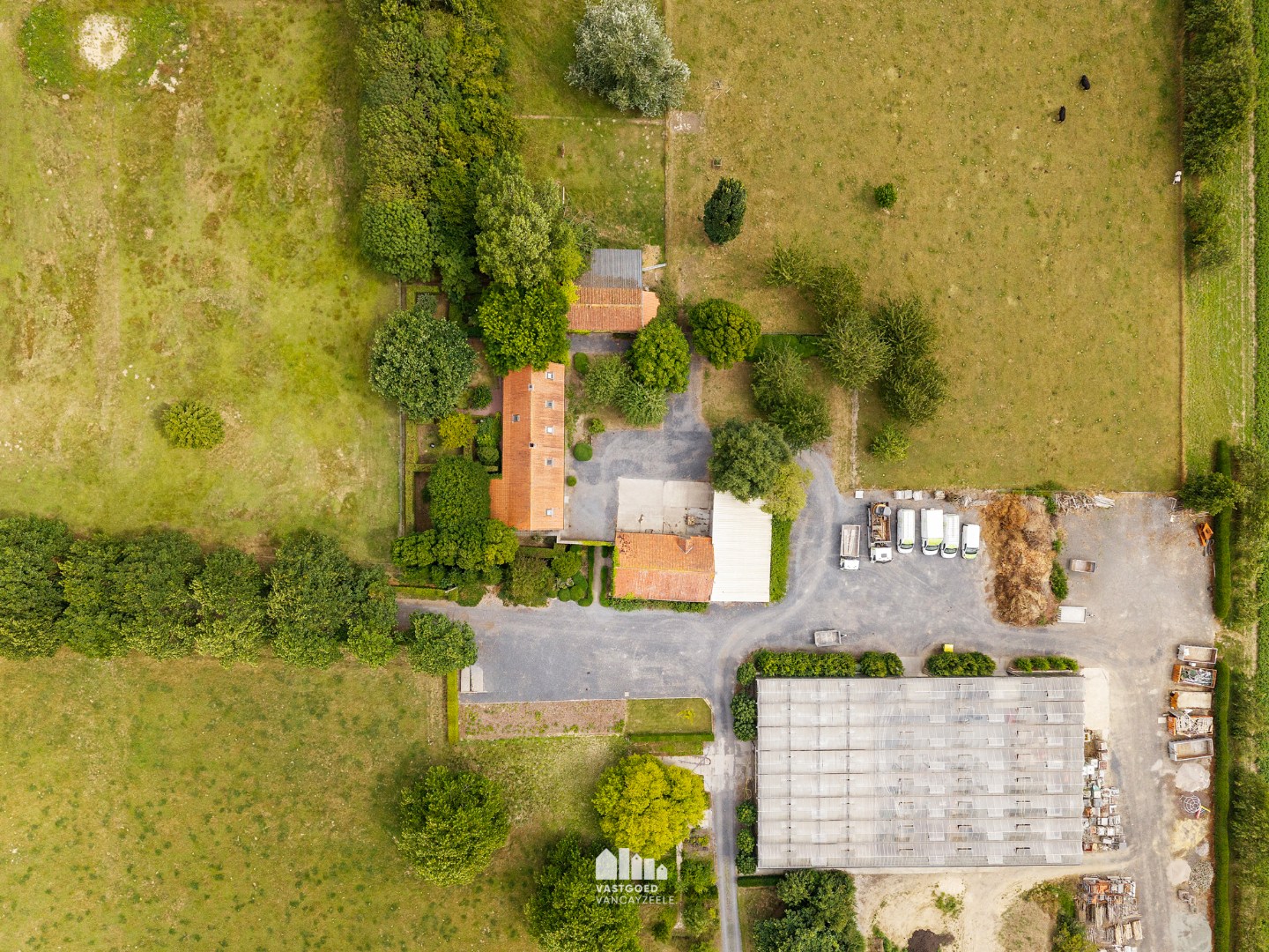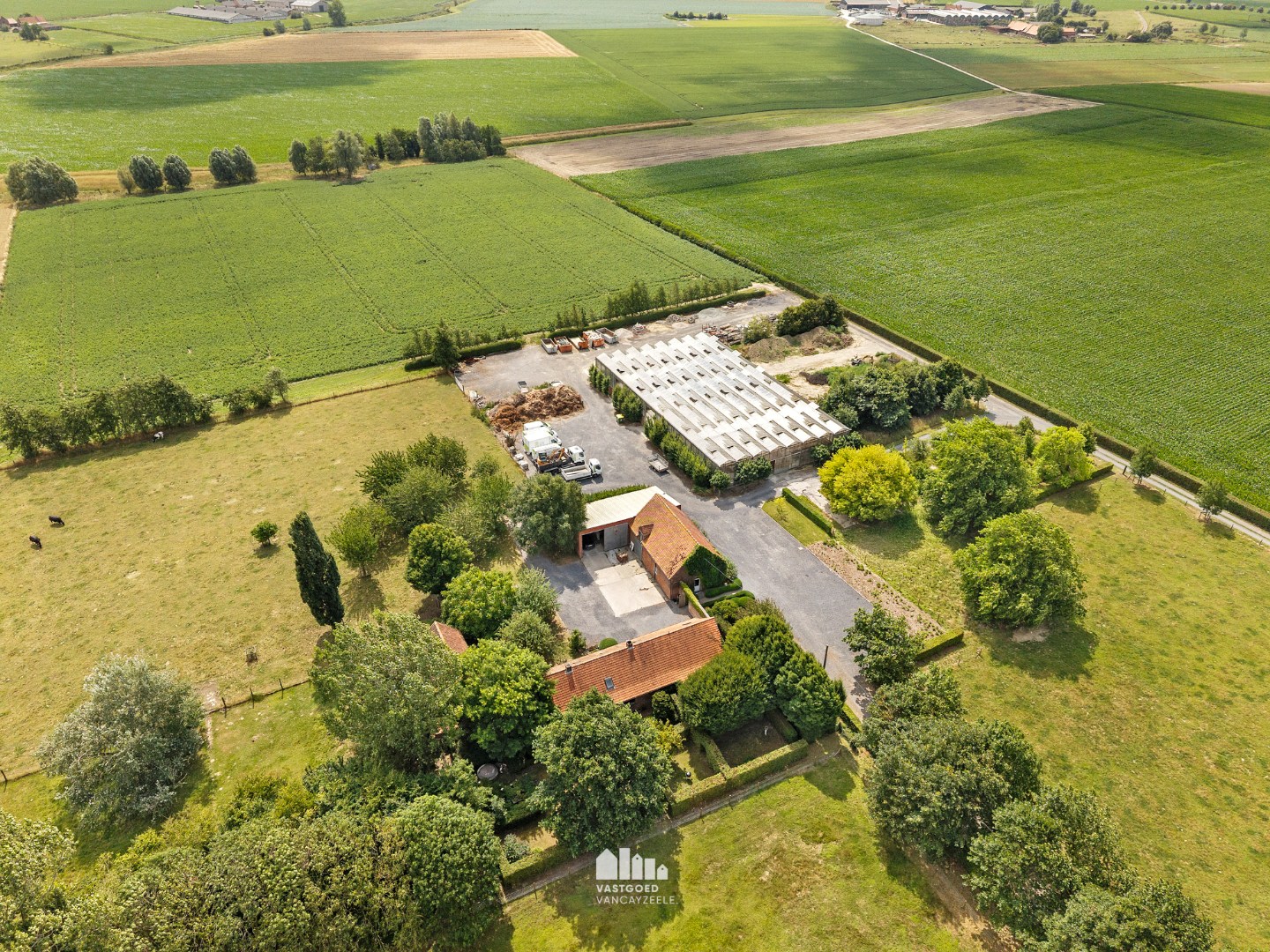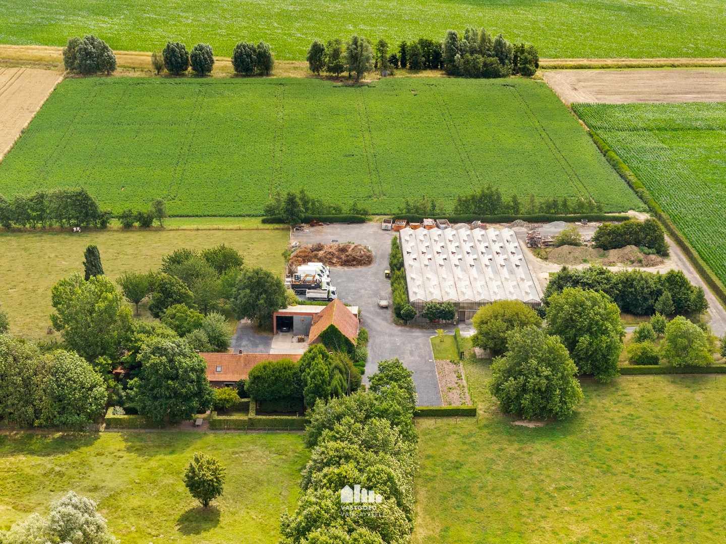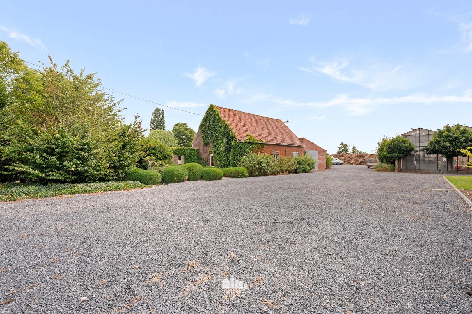 De hoeve tot op heden uitgebaat als tuinbouwbedrijf bestaat uit een hoofdwoning, verschillende bijgebouwen waarvan één ingericht als bureel, een ruime serre, koer en weides.
