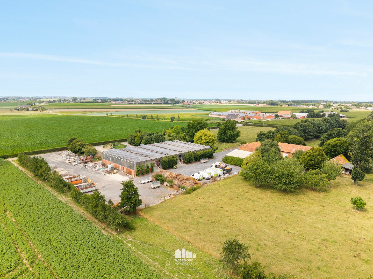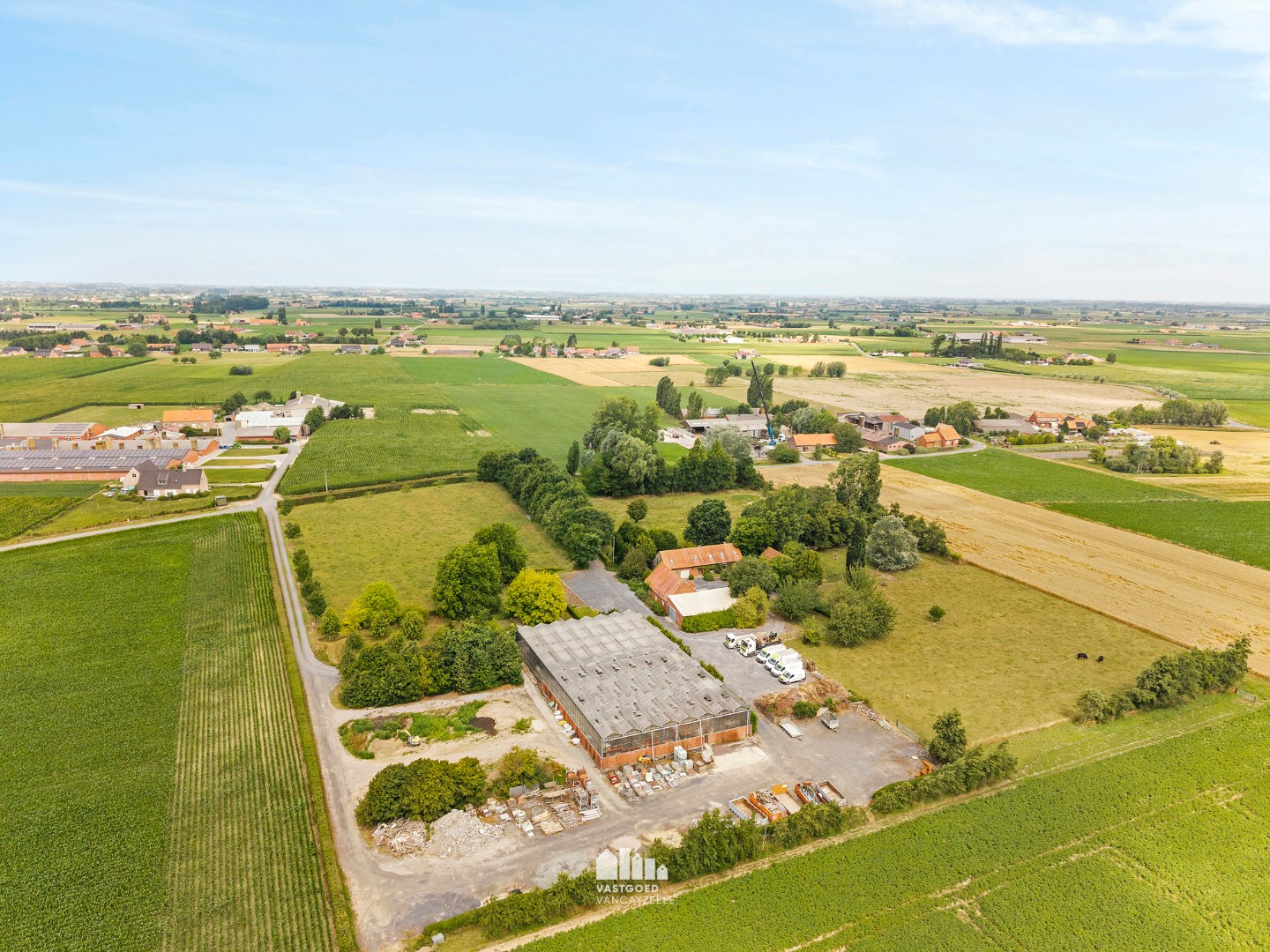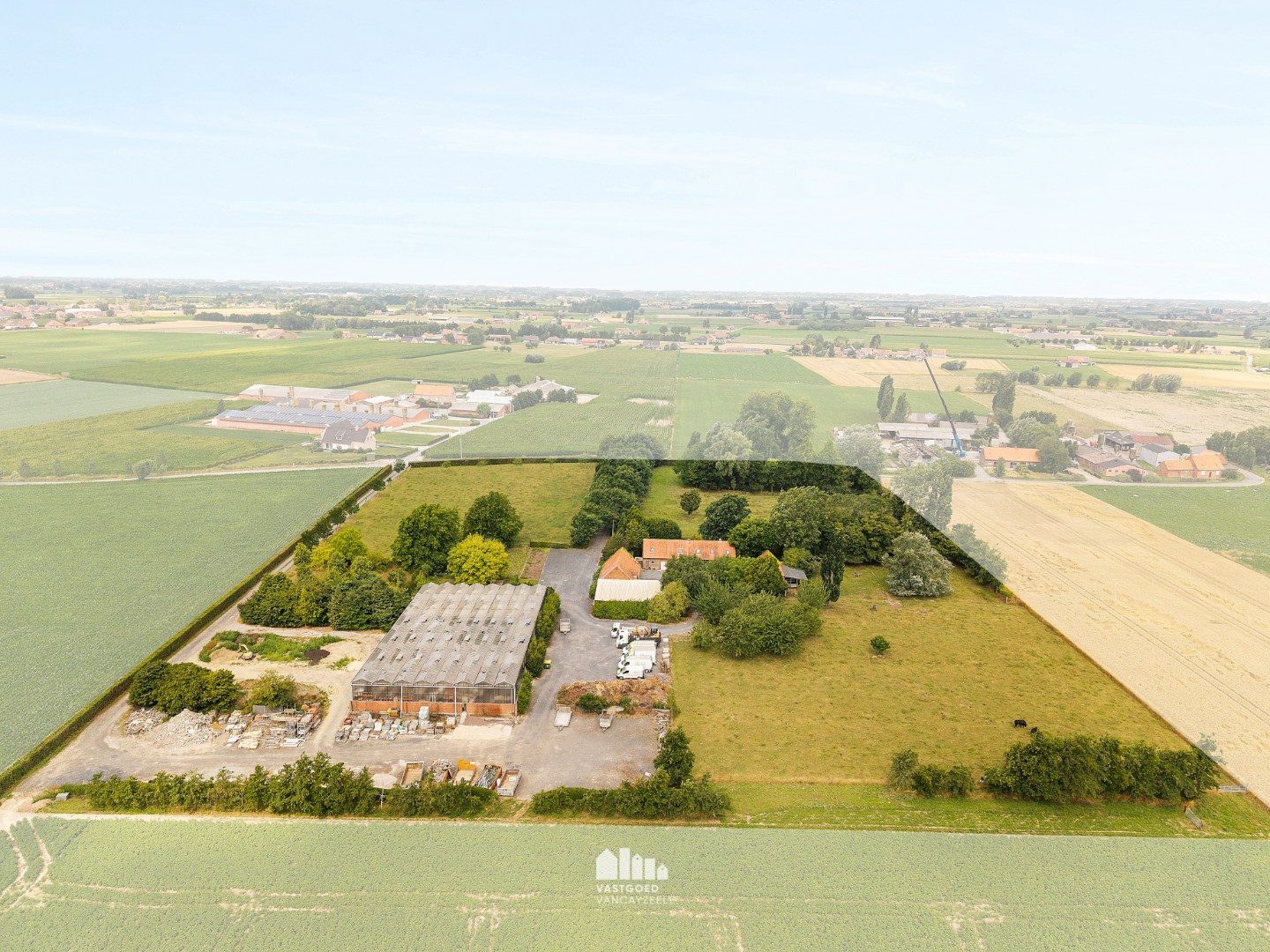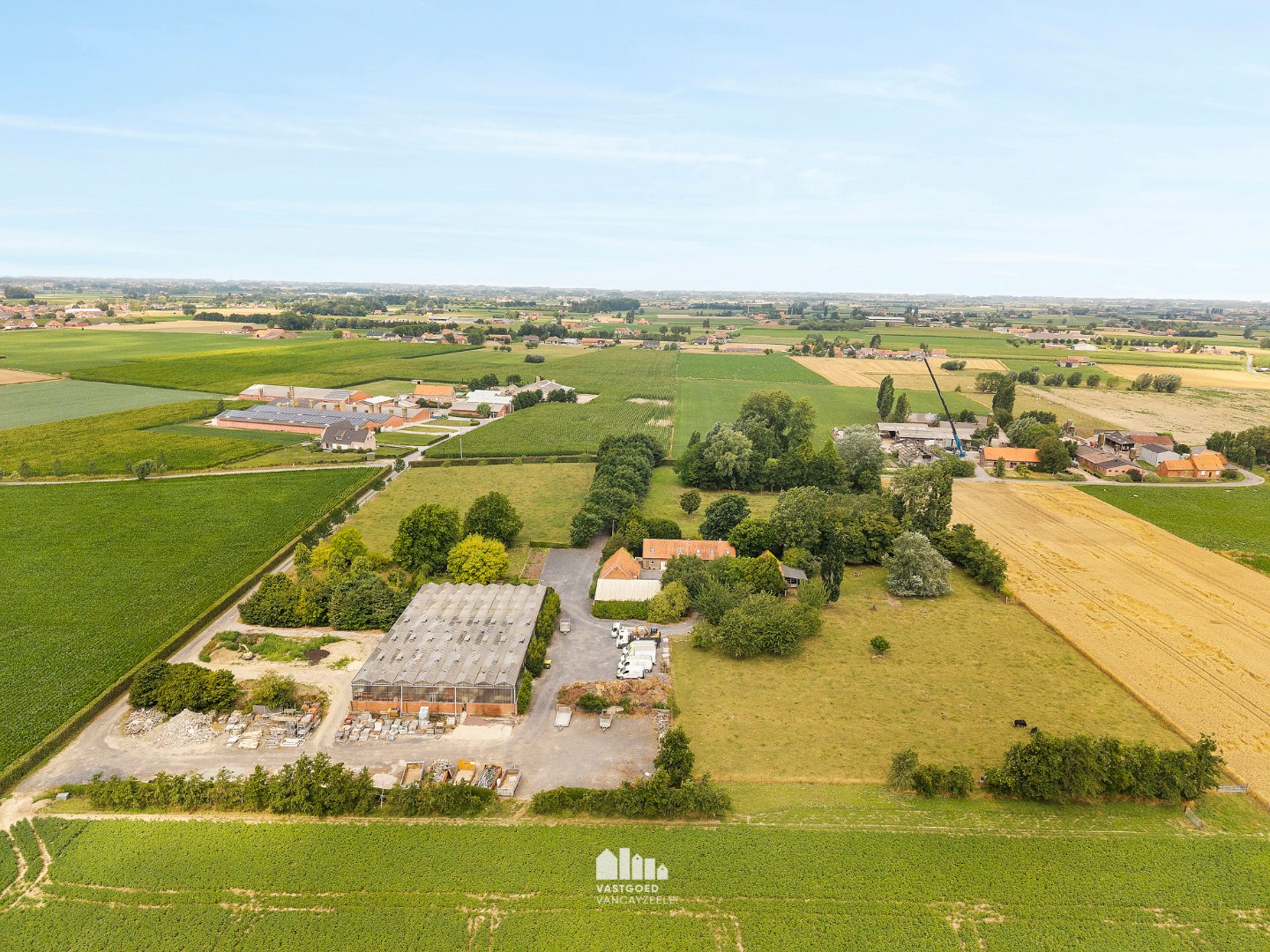 De hoeve tot op heden uitgebaat als tuinbouwbedrijf bestaat uit een hoofdwoning, verschillende bijgebouwen waarvan één ingericht als bureel, een ruime serre, koer en weides.