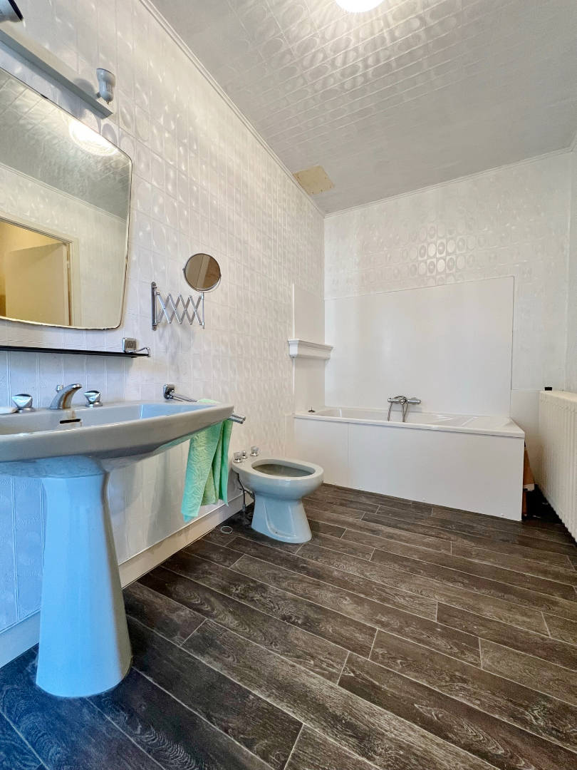 Op de eerste verdieping verdeeld de ruime nachthal, 2 zeer ruime slaapkamers met karaktervolle ingemaakte kasten, 1 kleinere slaapkamer, badkamer met ligbad en lavabomeubel en een bergruimte. Via de authentieke vaste trap bereikt u de tweede verdieping, hier komt u via de hal terecht in twee grote geïsoleerde zolderruimtes.