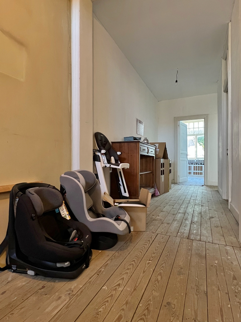 De ruime opbergplaatsen achteraan kunnen ook opnieuw omgevormd worden tot tuin / koer.