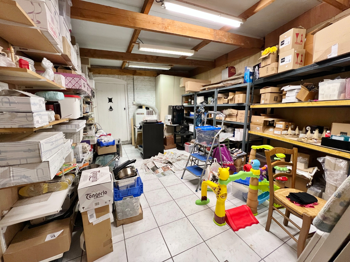 Op de gelijkvloerse verdieping kan u een grote winkelruimte terugvinden voorzien van heel wat ingemaakte kasten en etalageruimtes, een authentieke trappenhal, een toilet en heel wat stockageruimte, deze is bereikbaar via de parking achter de eigendom. Vanuit deze verdieping is er ook toegang tot de ruime kelder, hier treft u ook de tellers van de nutsvoorzieningen.