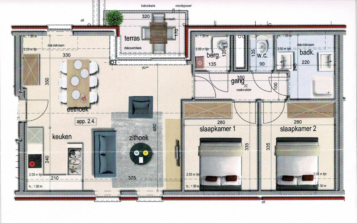 Dit appartement is gelegen in de dorpskern van Dikkebus en omvat een inkom, ruime lichtrijke leefruimte met open volledig ingerichte keuken en aansluitend terras, berging met aansluiting voor wasmachine, 2 slaapkamers en een badkamer met douche en lavabomeubel.