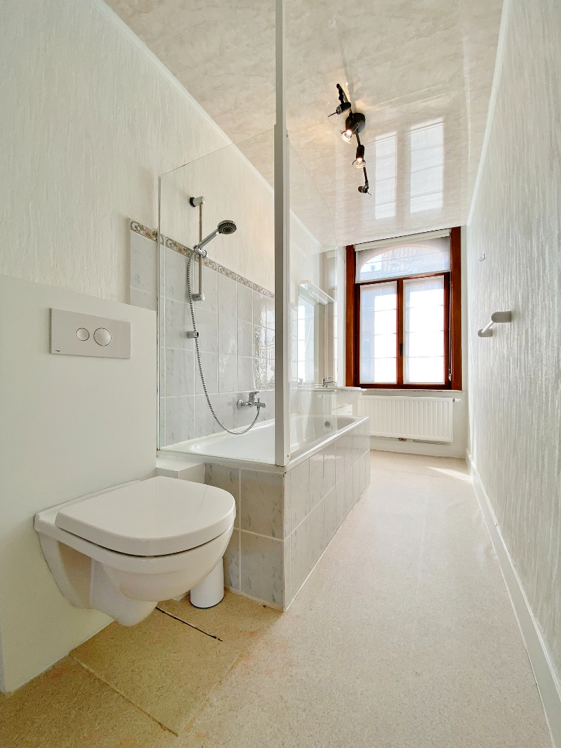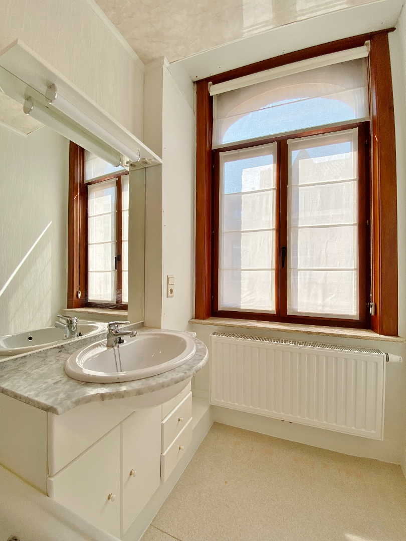 Deze charmante herenwoning gelegen op wandelafstand van de grote markt omvat op het gelijkvloers een inkomhal, woonkamer met eet- en zitplaats, volledig uitgeruste keuken, bergruimte, wasplaats en apart toilet. De eerste verdieping beschikt over 2 slaapkamers en een badkamer met ligbad met douchescherm, toilet en wastafel. De tweede verdieping telt één ruime slaapkamer en een bergruimte. Buiten zijn een stadskoer met buitenberging.