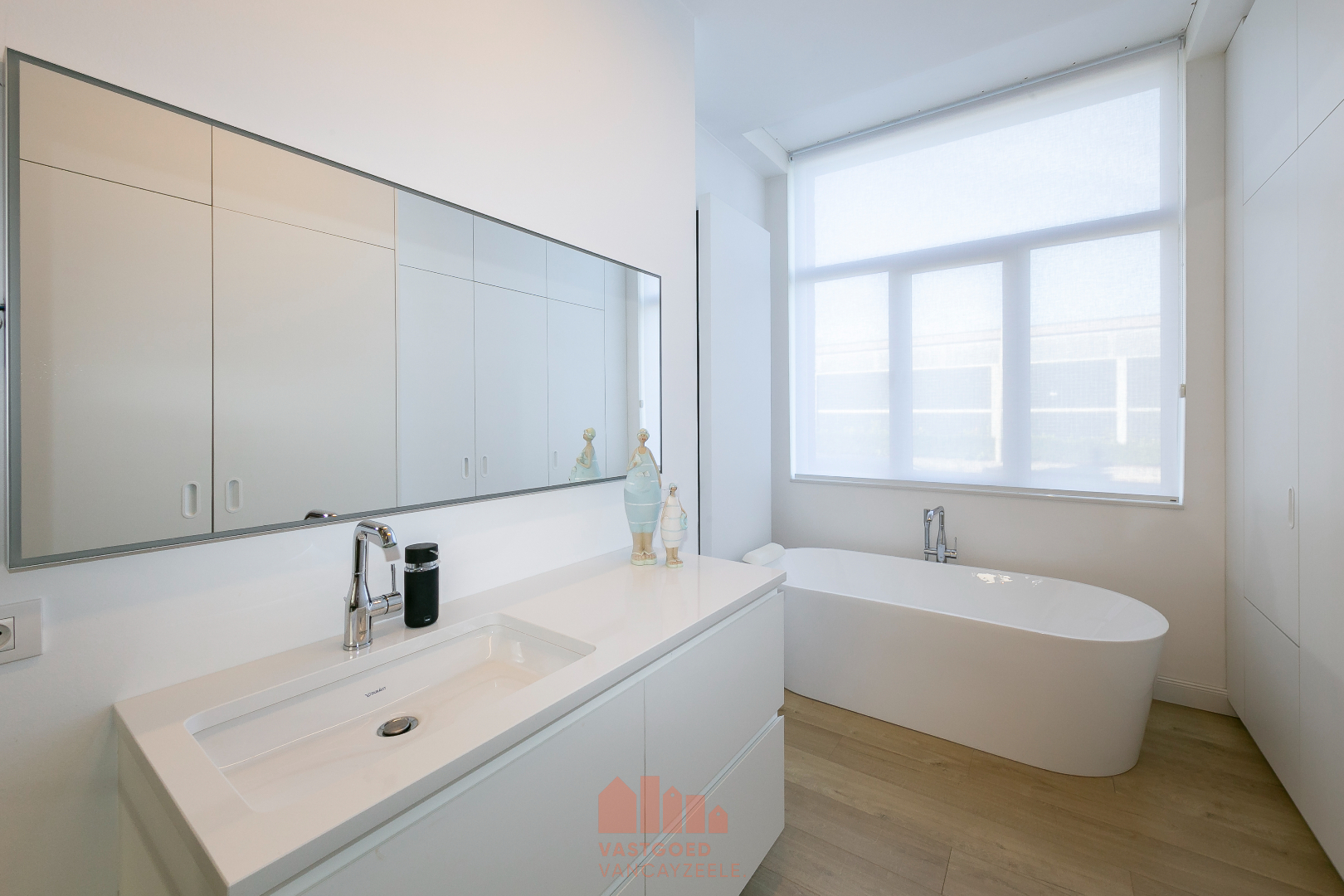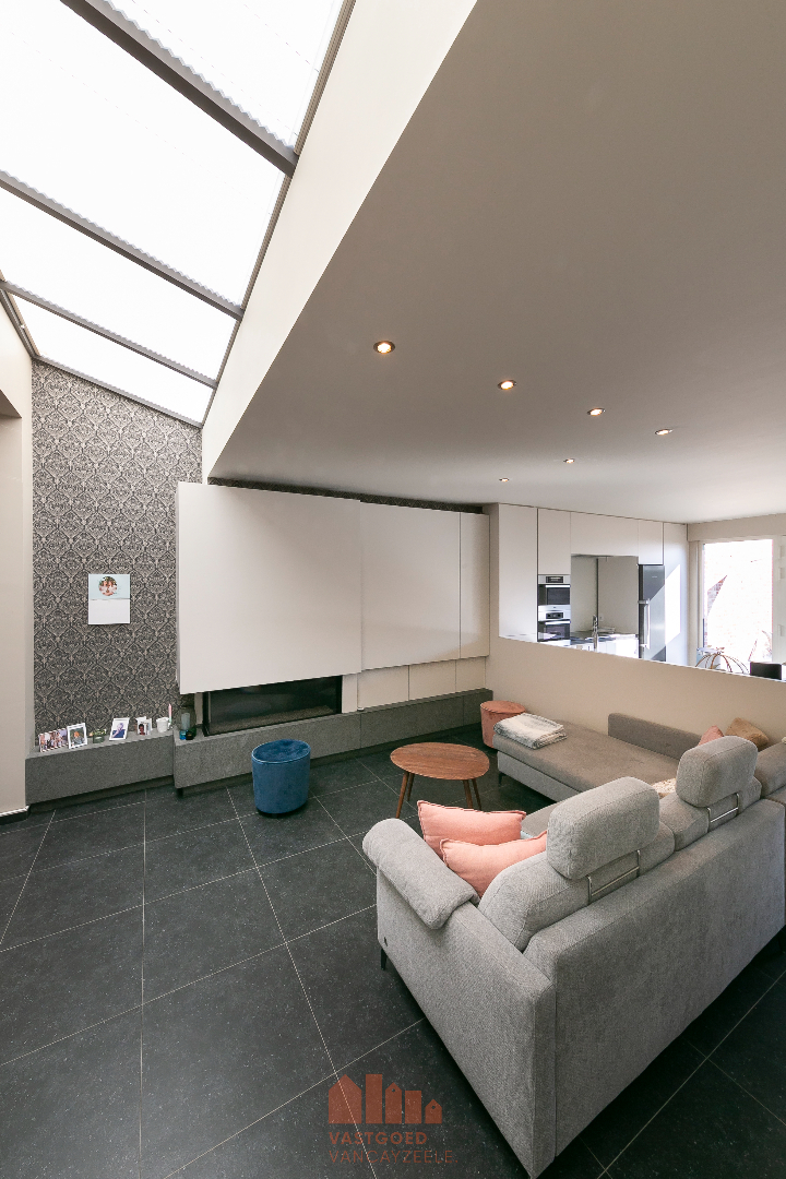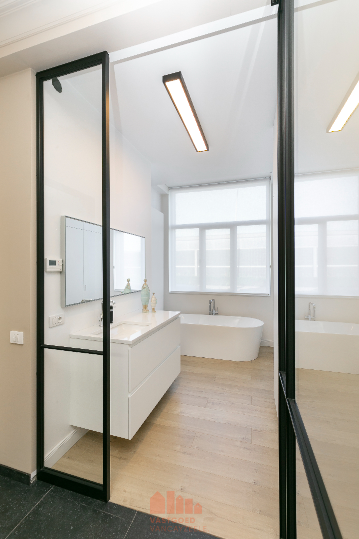 Via de inkomhal voorzien van apart toilet en toegang tot de kelder bereikt u de gezellige en lichtrijke woon- en eetkamer voorzien van gashaard en extra bureauruimte. De leefruimte loopt door richting de volledig geïnstalleerde keuken met bijhorende eetplaats. Naast de leefruimte via een glazen stalen deur treft u een badkamer voorzien van lavabomeubel, losstaand ligbad en ingemaakte kast met voorziening voor wasmachine en droogkast.