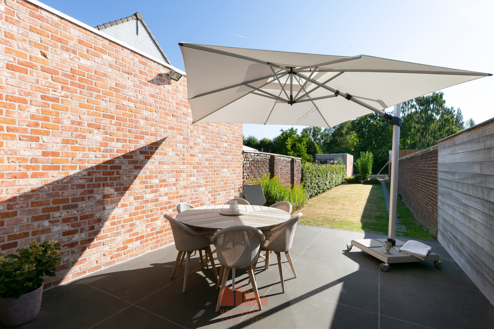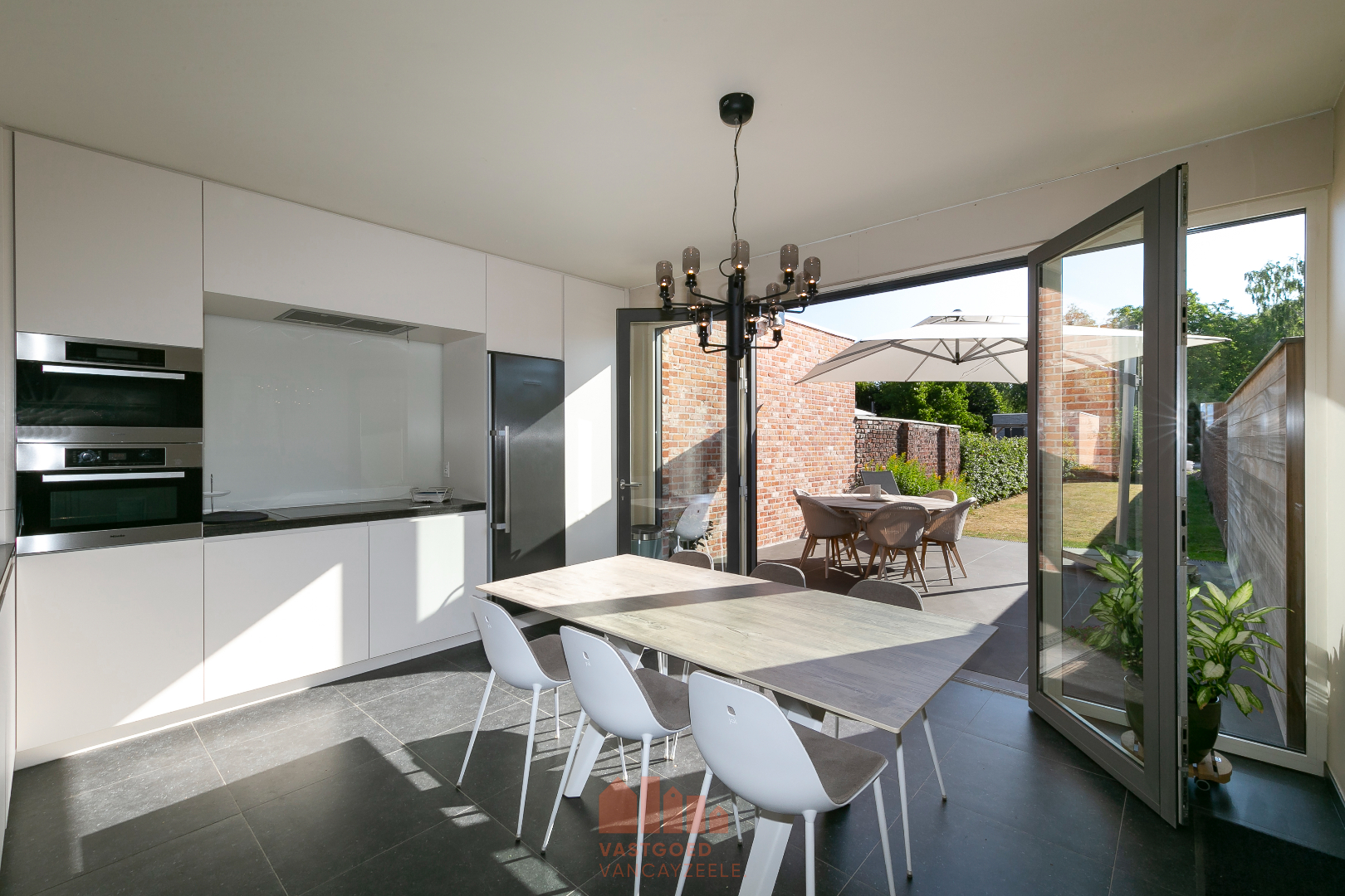 Via de keuken heeft u toegang tot de zonovergoten, omheinde tuin met terras en uitweg via een zijstraat