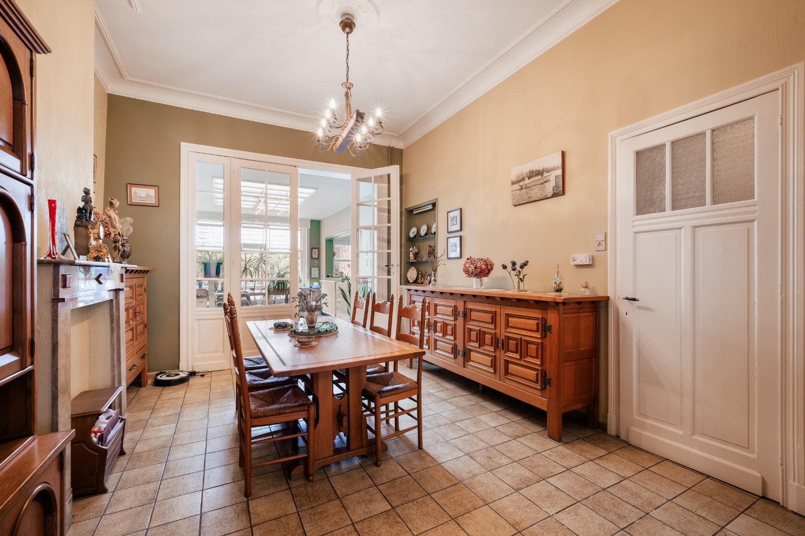 Deze prachtige herenwoning is gelegen op 250m van de Grote Markt. Het atelier links van de woning, een oude koffiebranderij, bestaat uit 3 bouwlagen van elk 83m² die doorgetrokken kunnen worden in de woning want de niveaus liggen gelijk.