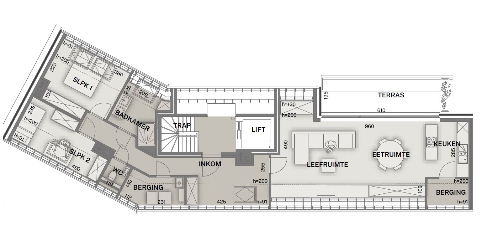 - personaliseren van uw appartement is nog mogelijk! ( bv: vloerbedekking, keuken, badkamer, binnendeuren en zelfs het aanpassen van niet dragende structuren kan besproken worden )