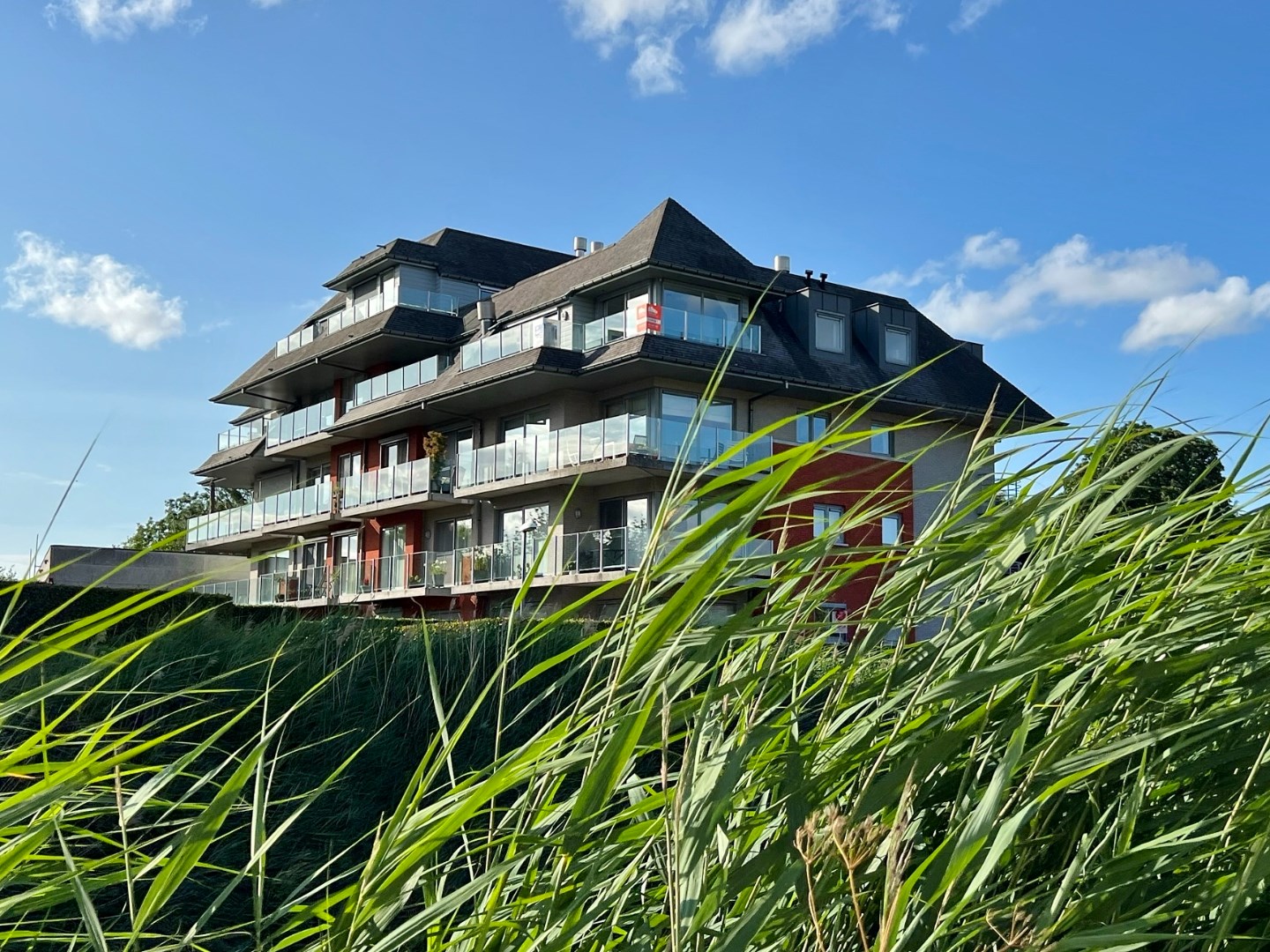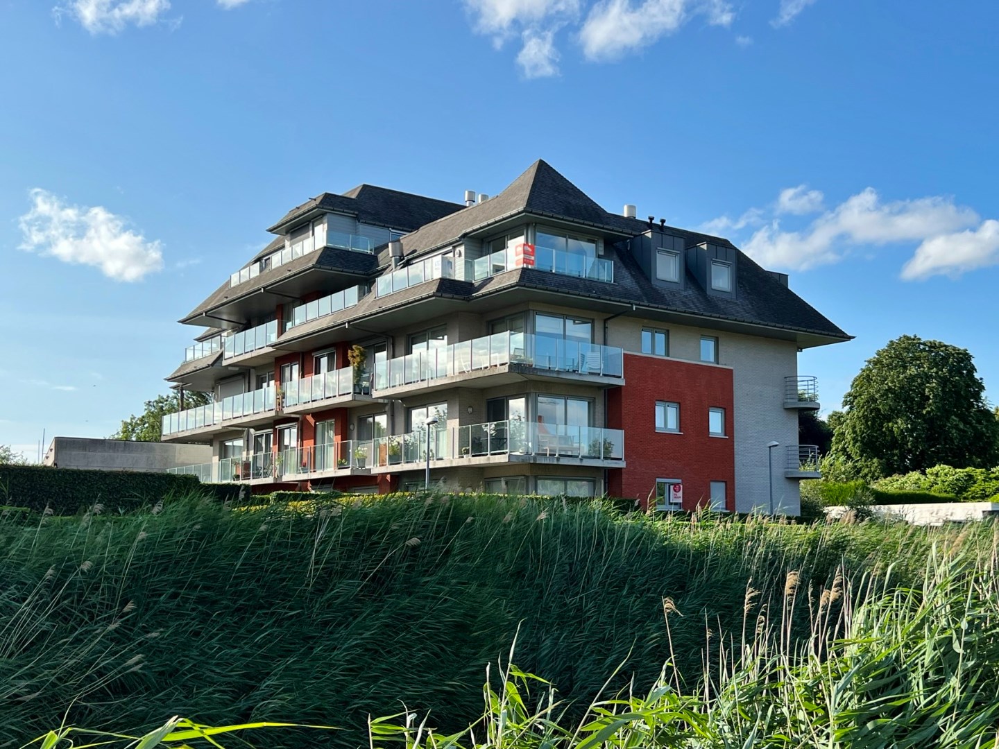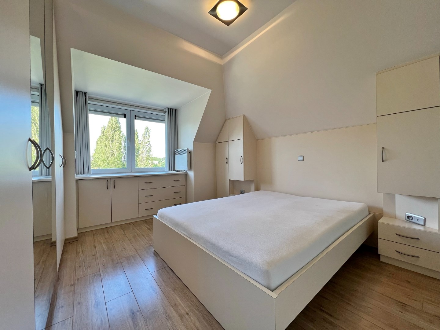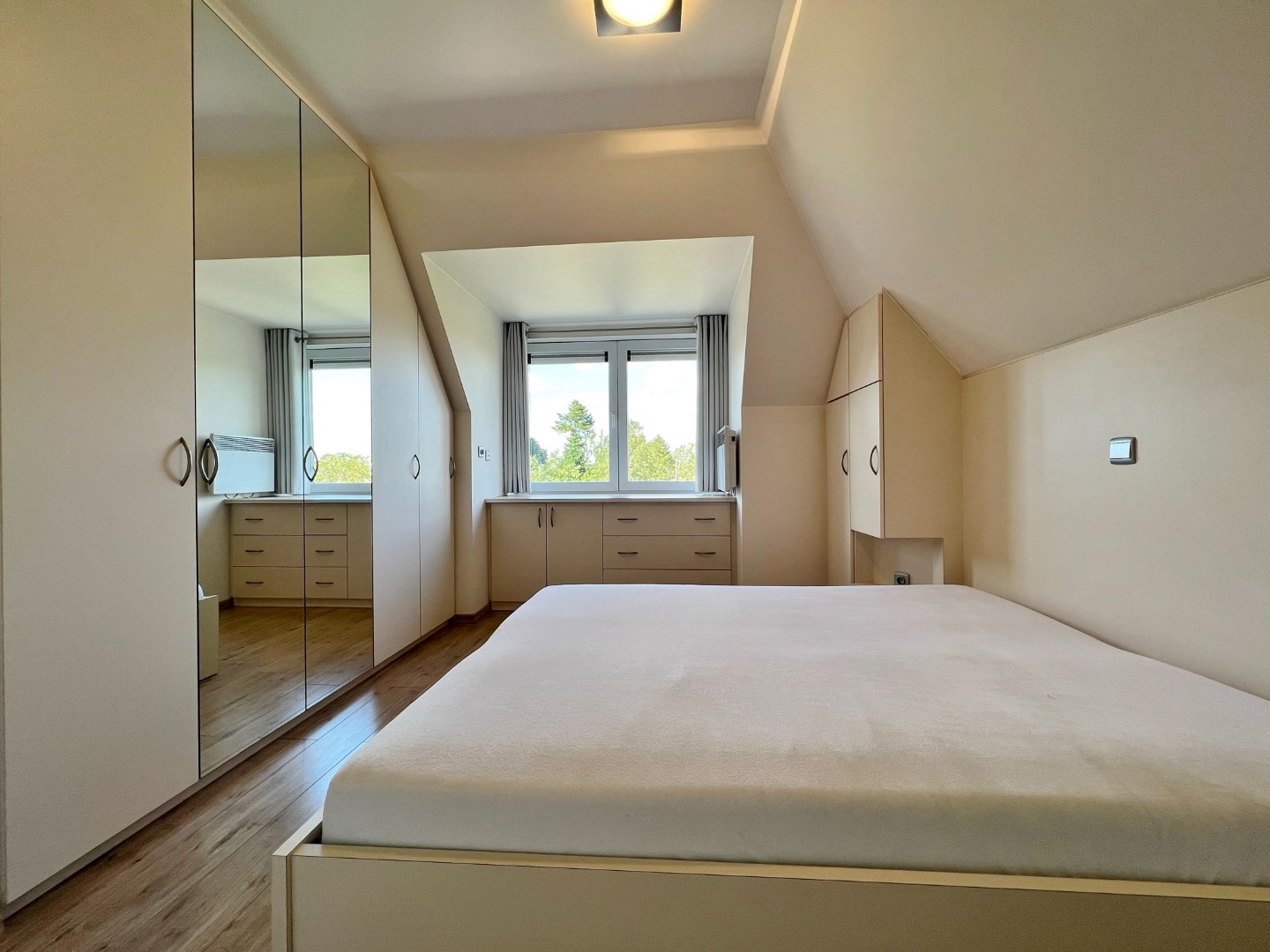 inkomhal (5m²) - ruime living voorzien van airco + verwarming met warmtepomp (40m²) - open ingerichte keuken (8.70m²) - keukenberging (4m²) - zuid-gericht terras (12.85m²) met prachtig zicht - nachthal (3.10m²) met gastentoilet - 2 slaapkamers telkens voorzien van maatwerk inbouwkasten (15.80m² - 13.80m²) - badkamer met ligbad/douche en lavabomeubel (5.20m²) - apart toilet in 2de slaapkamer