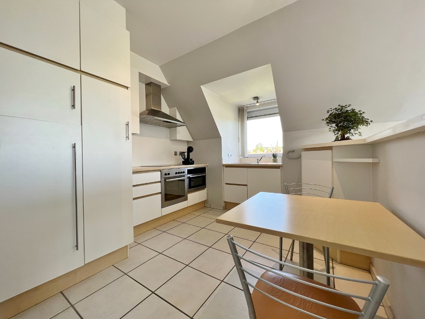Dit prachtig dakappartement is gelegen in één van de meest gegeerde Residenties te Ieper nl. "De Waterkant" aan de Haiglaan. U heeft er een prachtig zicht op de Vaart en het vele groen in de omgeving. De ligging is uiterst centraal zijnde op wandelafstand van het centrum (5min), nabij Delhaize, bakker, beenhouwer, ... Verder is er een vlotte verbinding met de Noorder- en Zuiderring.