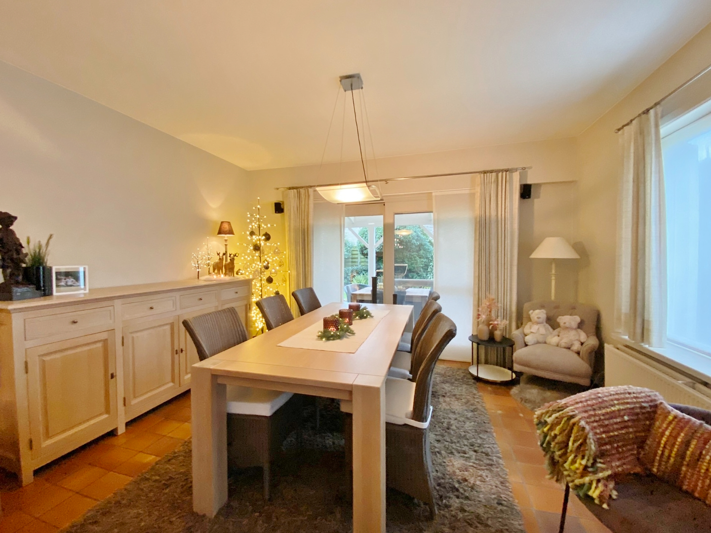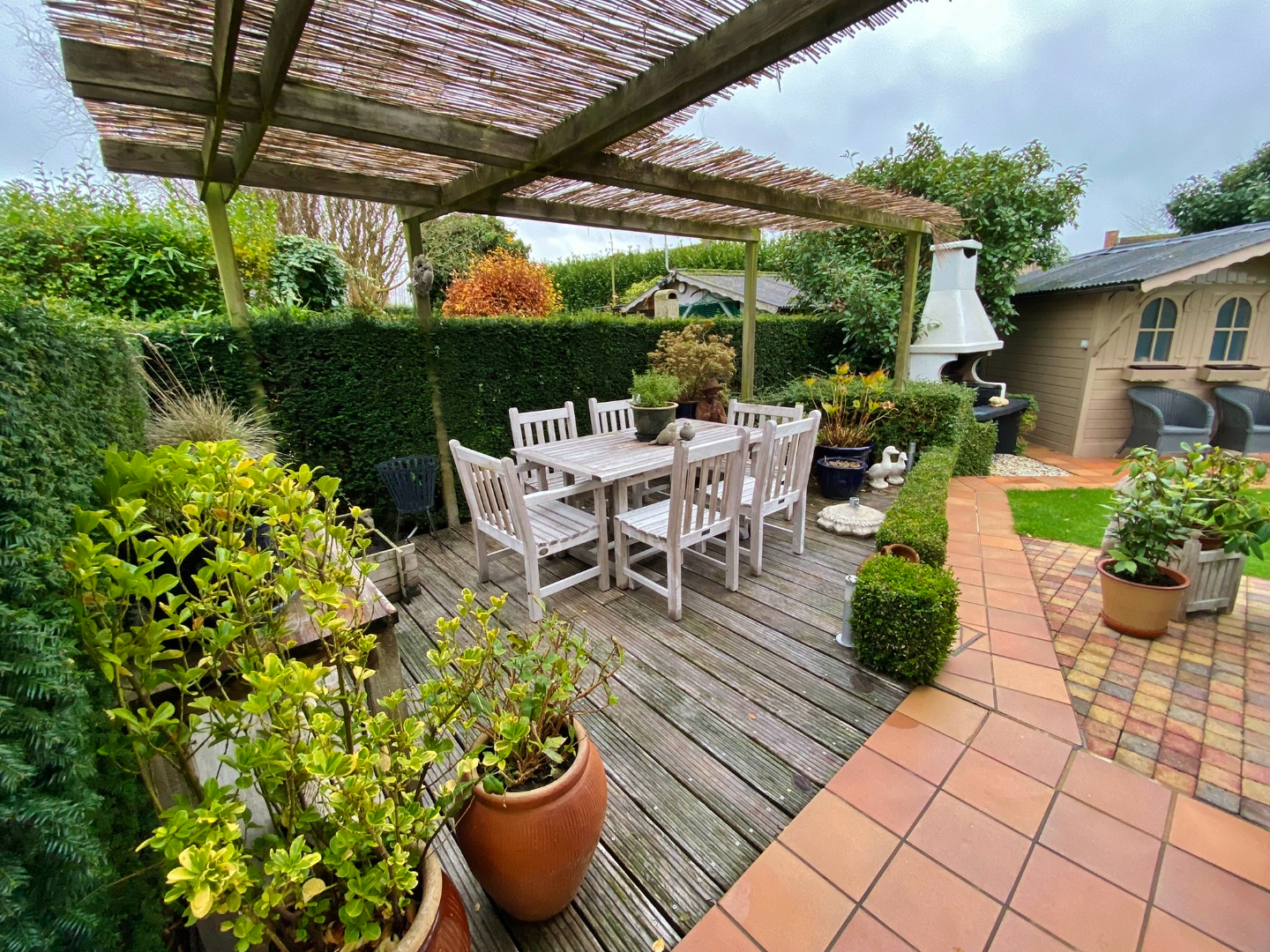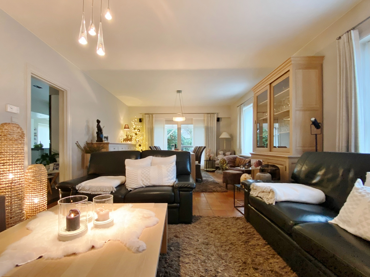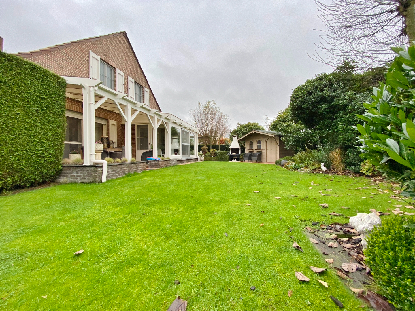 Deze ruime verzorgde woning is gelegen in een doodlopende straat en omvat een gelijkvloerse verdieping met inkom, gastentoilet, ruime gezellige leefruimte voorzien van houtkachel, modern ingerichte keuken (inductie kookplaat, dampkap, vaatwas, koelkast, oven, microgolf en veel kastruimte), aansluitende veranda met zicht op de tuin, bergruimte, bureau/slaapkamer, badkamer met lavabomeubel en ligbad, wasplaats en garage. Op het eerste verdiep zijn 3 ruime slaapkamers waarvan 1 met ingemaakte kast en een badkamer met lavabomeubel en douche. Buiten is een zonnige tuin met verschillende terrassen (deels overdekt) en een tuinhuis.