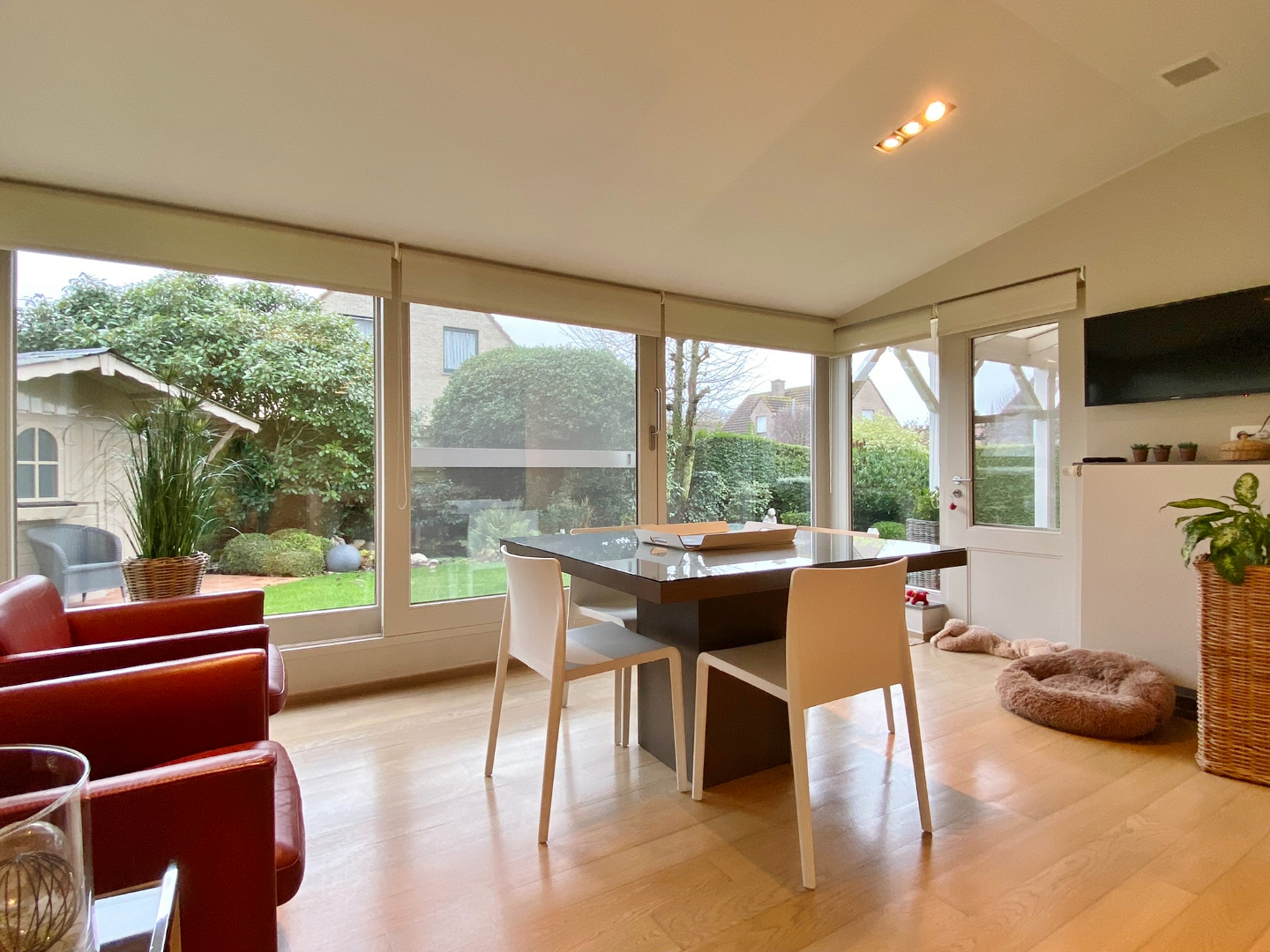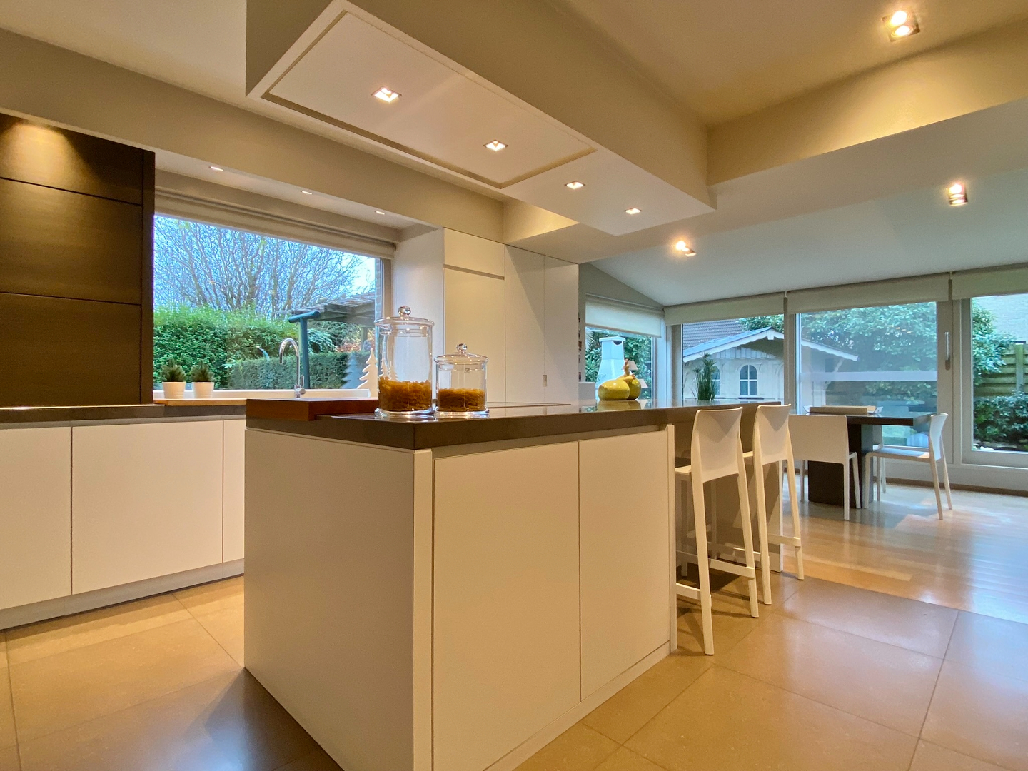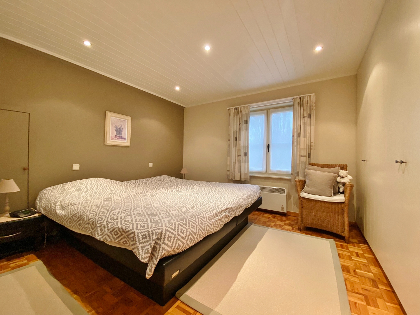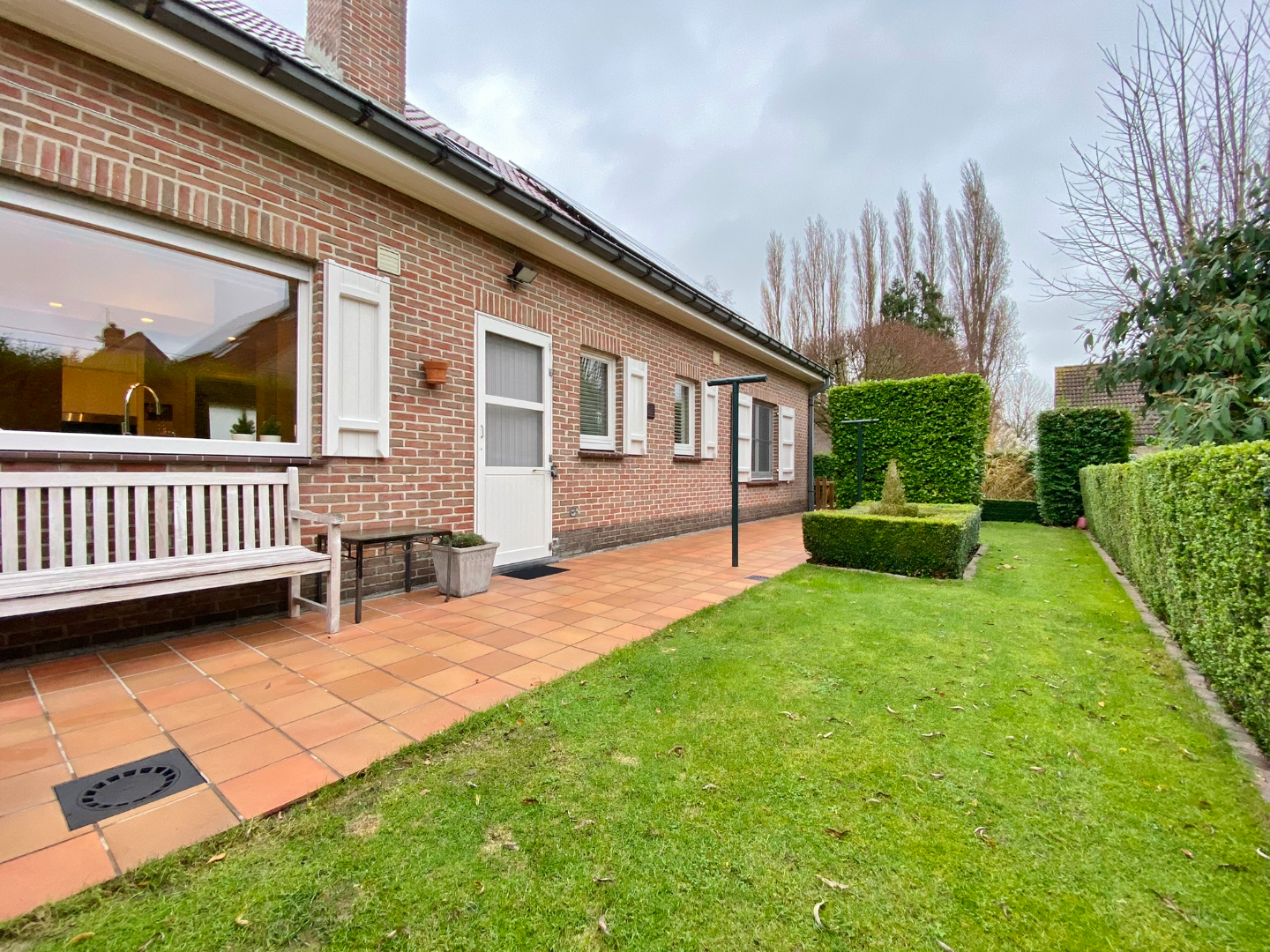 Deze ruime verzorgde woning is gelegen in een doodlopende straat en omvat een gelijkvloerse verdieping met inkom, gastentoilet, ruime gezellige leefruimte voorzien van houtkachel, modern ingerichte keuken (inductie kookplaat, dampkap, vaatwas, koelkast, oven, microgolf en veel kastruimte), aansluitende veranda met zicht op de tuin, bergruimte, bureau/slaapkamer, badkamer met lavabomeubel en ligbad, wasplaats en garage. Op het eerste verdiep zijn 3 ruime slaapkamers waarvan 1 met ingemaakte kast en een badkamer met lavabomeubel en douche. Buiten is een zonnige tuin met verschillende terrassen (deels overdekt) en een tuinhuis.