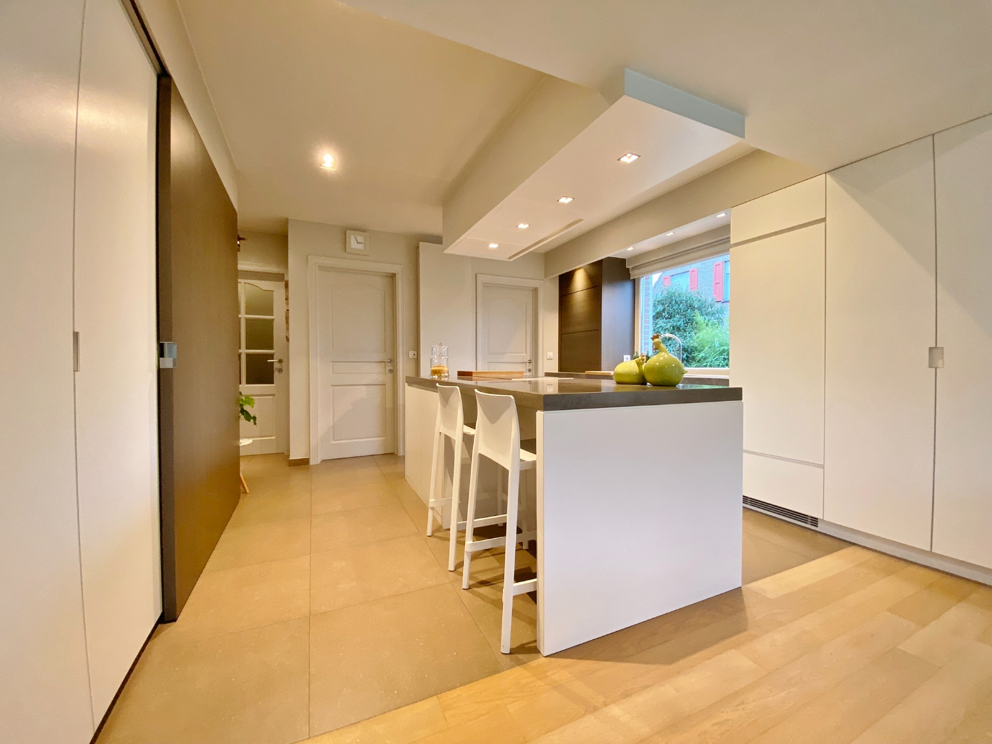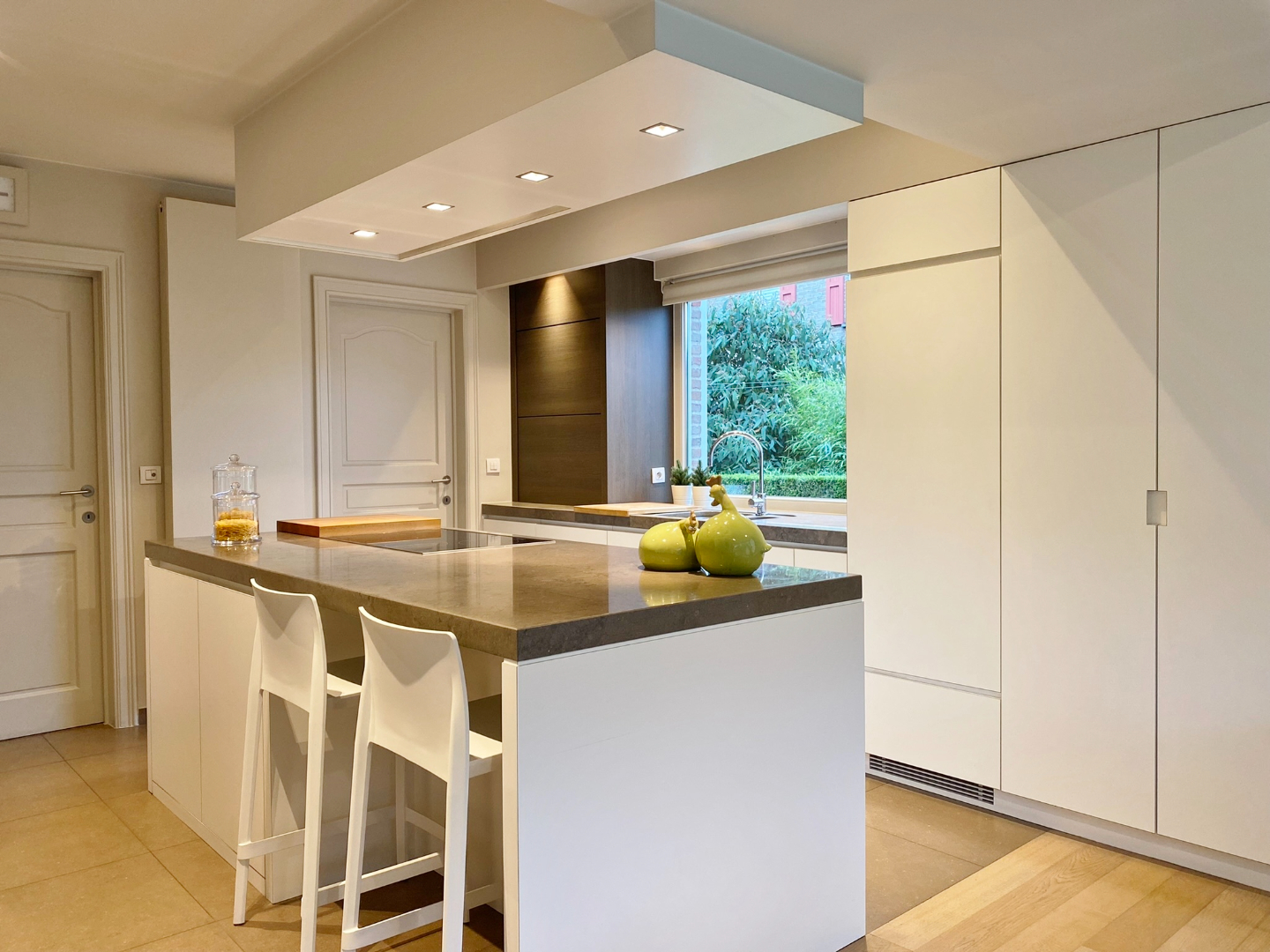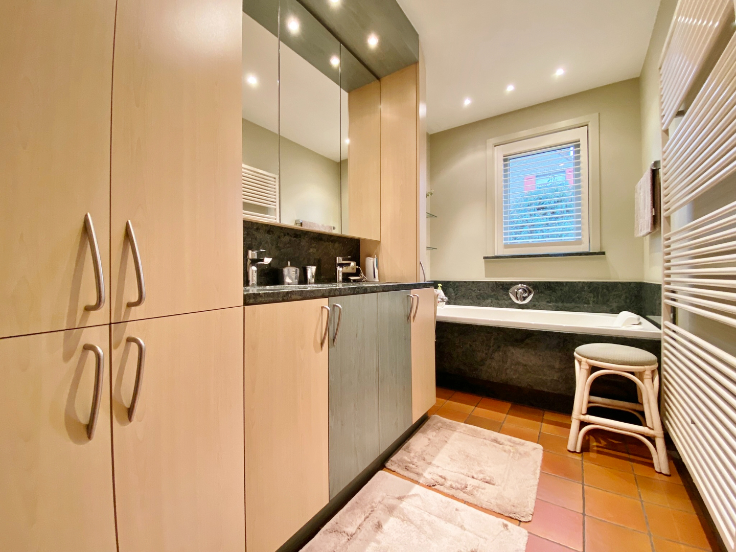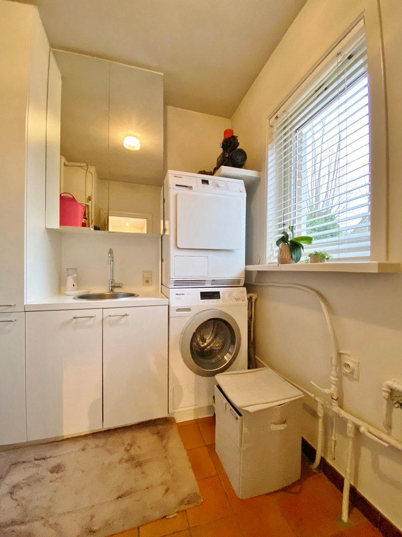 Deze ruime verzorgde woning is gelegen in een doodlopende straat en omvat een gelijkvloerse verdieping met inkom, gastentoilet, ruime gezellige leefruimte voorzien van houtkachel, modern ingerichte keuken (inductie kookplaat, dampkap, vaatwas, koelkast, oven, microgolf en veel kastruimte), aansluitende veranda met zicht op de tuin, bergruimte, bureau/slaapkamer, badkamer met lavabomeubel en ligbad, wasplaats en garage. Op het eerste verdiep zijn 3 ruime slaapkamers waarvan 1 met ingemaakte kast en een badkamer met lavabomeubel en douche. Buiten is een zonnige tuin met verschillende terrassen (deels overdekt) en een tuinhuis.