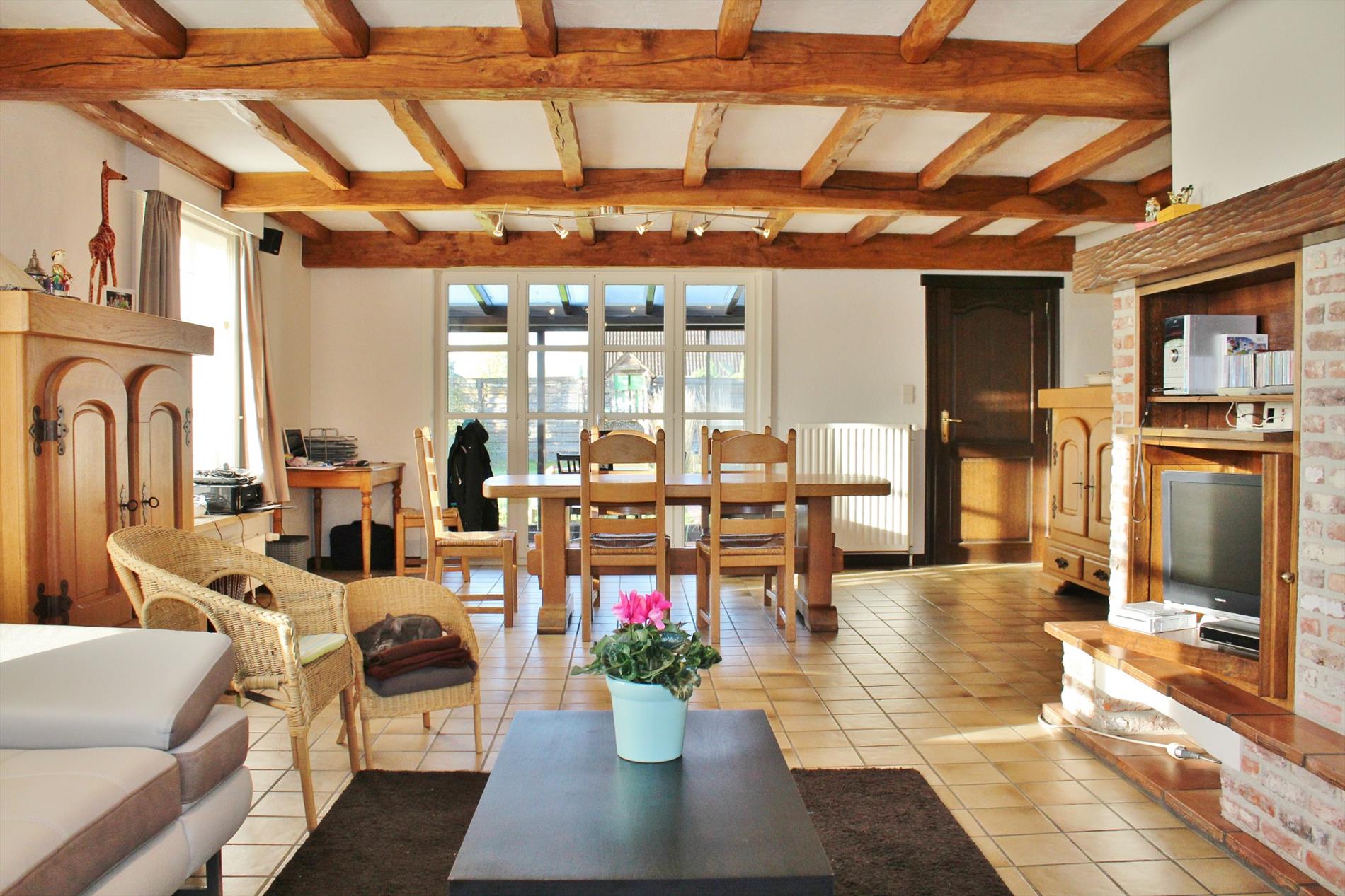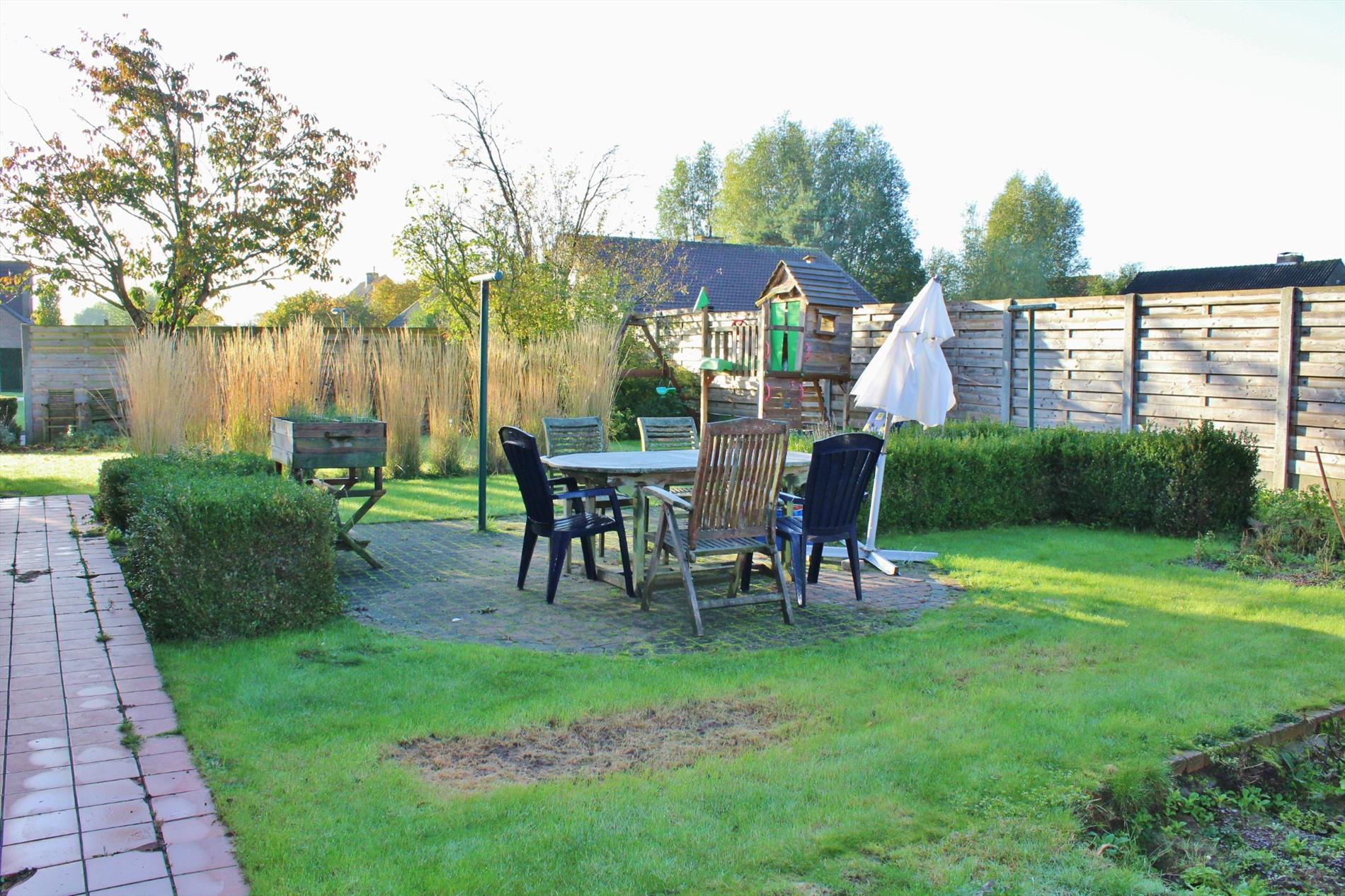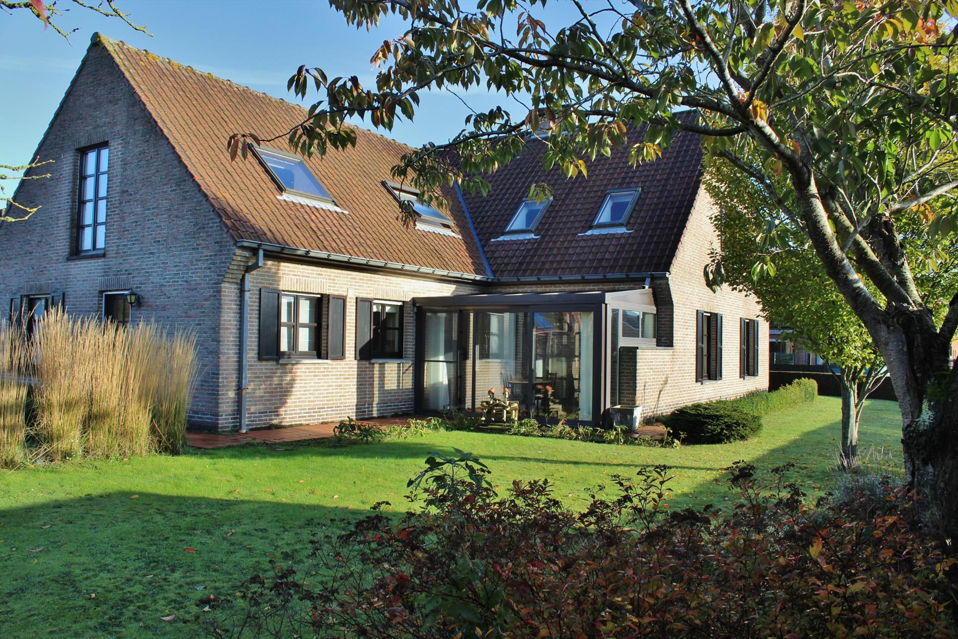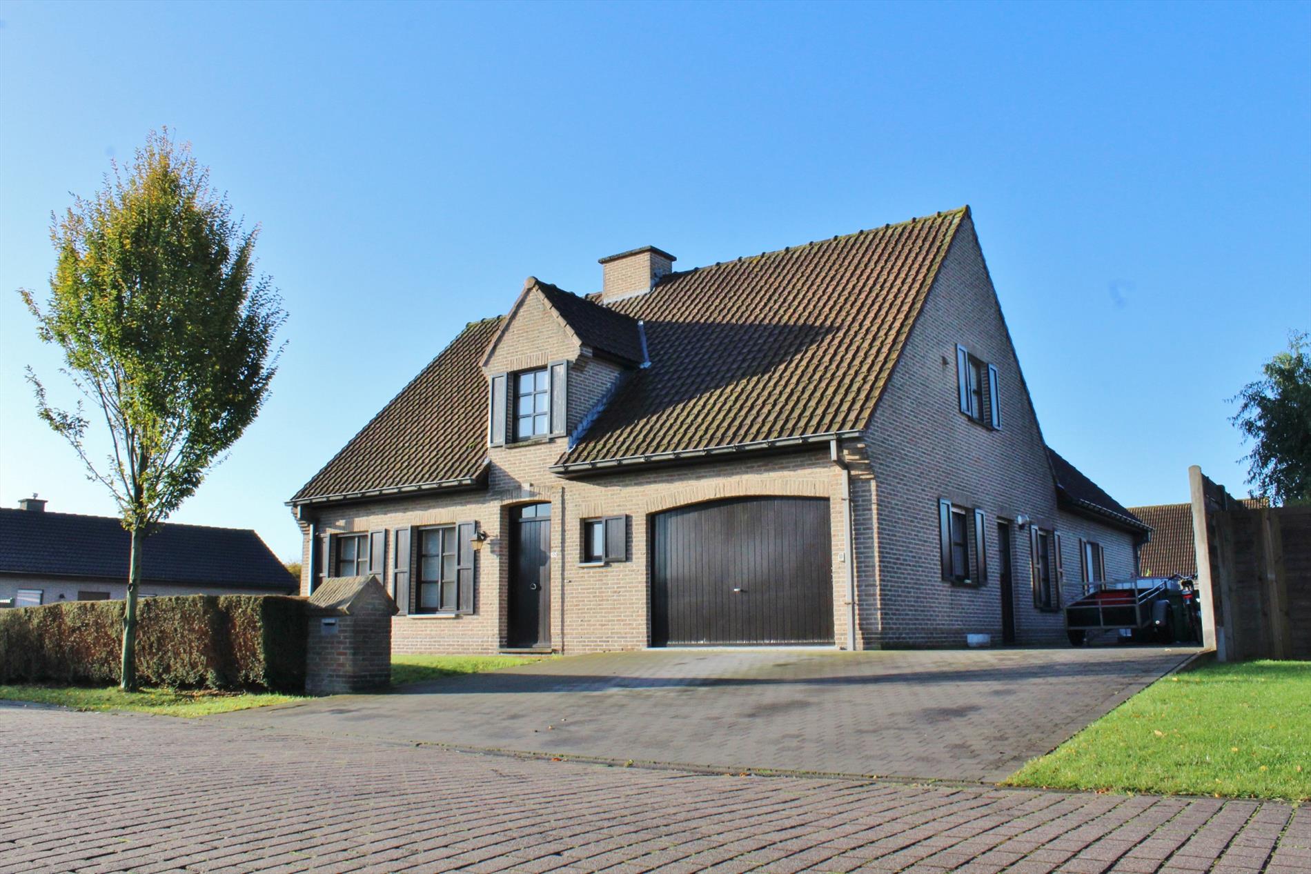 Deze eigendom is zeer rustig gelegen en bestaat uit een gelijkvloerse verdieping met inkom, gastentoilet, ruime lichtrijke leefruimte met eet- en zitplaats en gezellige gashaard, veranda, volledig ingerichte keuken, bergruimte, achterkeuken, 2 slaapkamers, een badkamer met ligbad, lavabo meubel en toilet en een garage. Op het eerste verdiep zijn 3 ruime slaapkamers waarvan 1 met achterliggende zolderkamer, berging en een badkamer met ligbad, lavabo meubel en toilet. Buiten is een gezellige zonnige tuin met ruime oprit.
