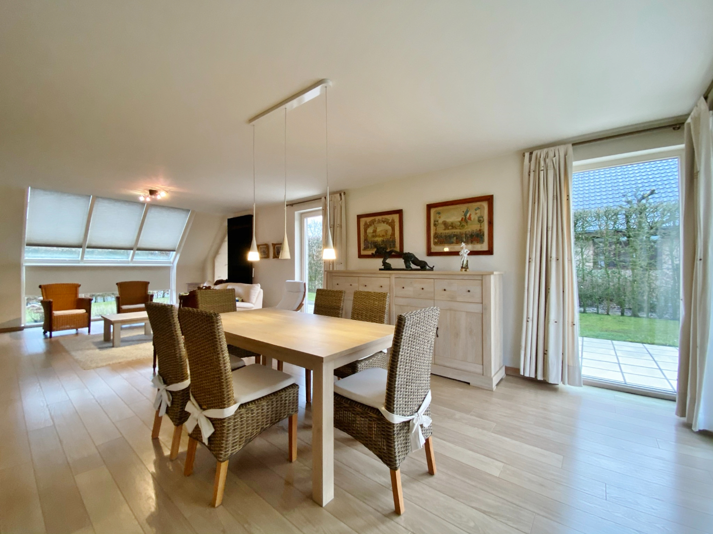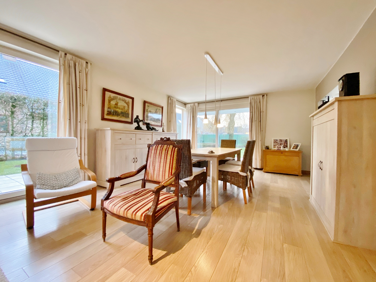 Buiten is een afgesloten zonnige tuin ( zuid - west ) met terras en vooraan ruime oprit.