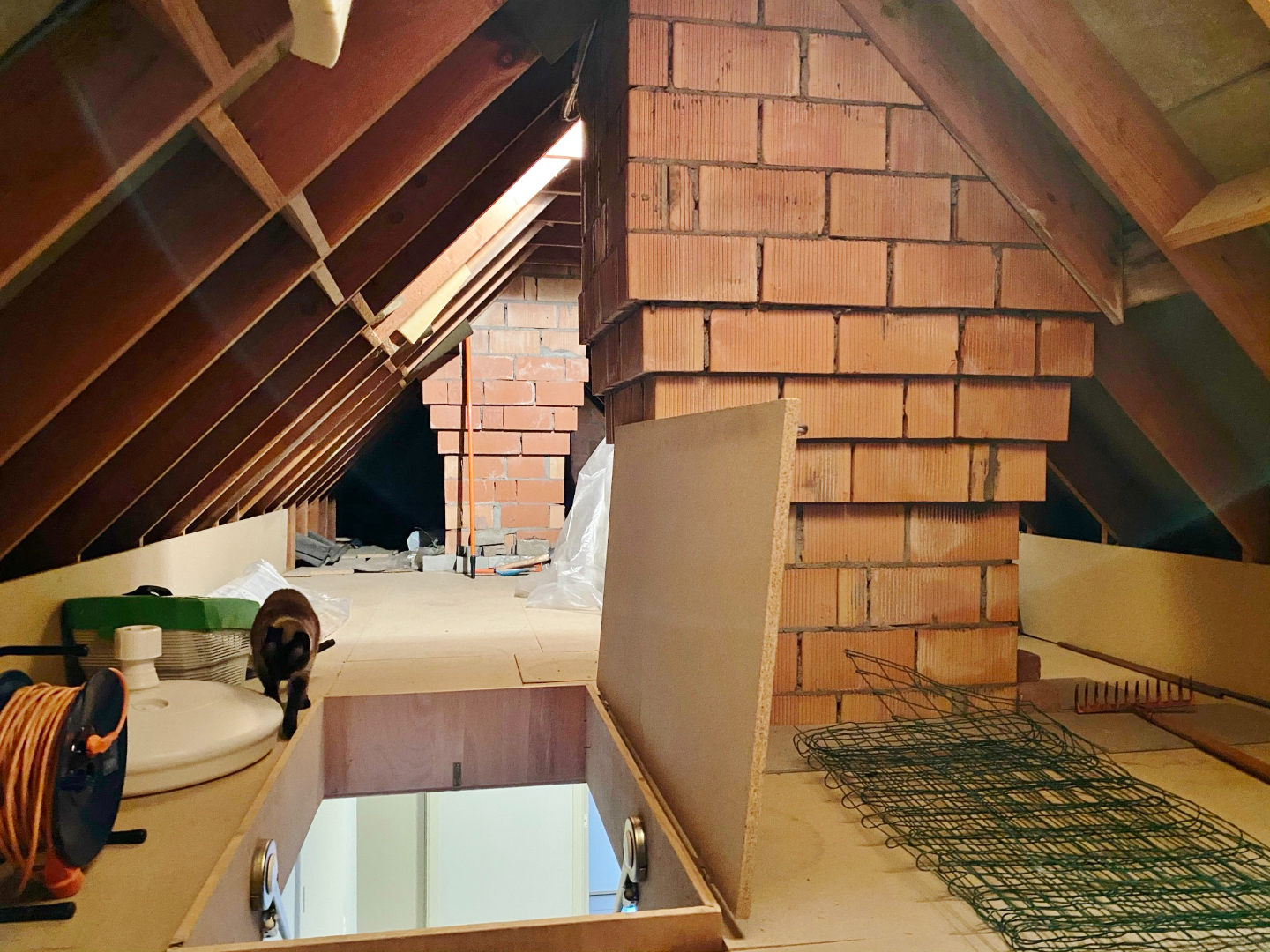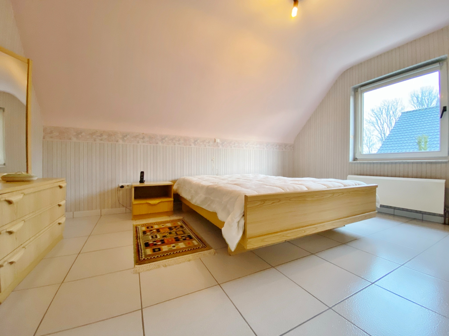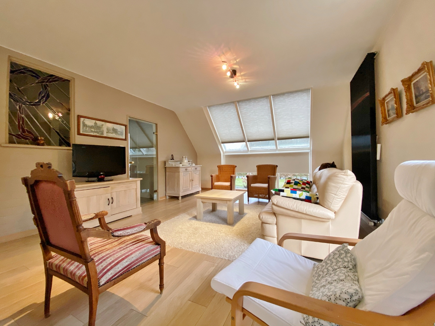 Deze woning is gelegen aan het eind van een doodlopende straat en omvat een gelijkvloerse verdieping met inkom, toilet, ruime lichtrijke leefruimte met eet- en zitplaats, half-open volledig ingerichte keuken met eetplaats, berging met aansluiting voor wasmachine, ruime garage en extra bergruimte onder de trap. Op het eerste verdiep zijn 4 slaapkamers, een toilet en een badkamer met douche, ligbad en lavabomeubel. Er is tevens een zolderverdiep.