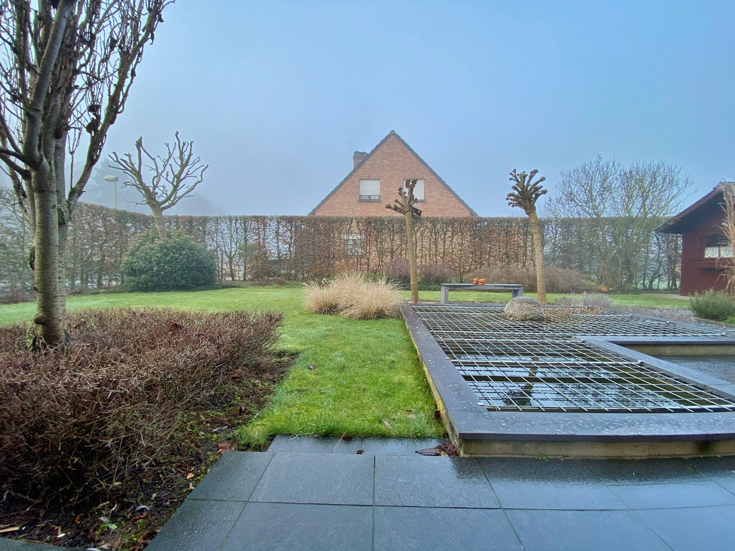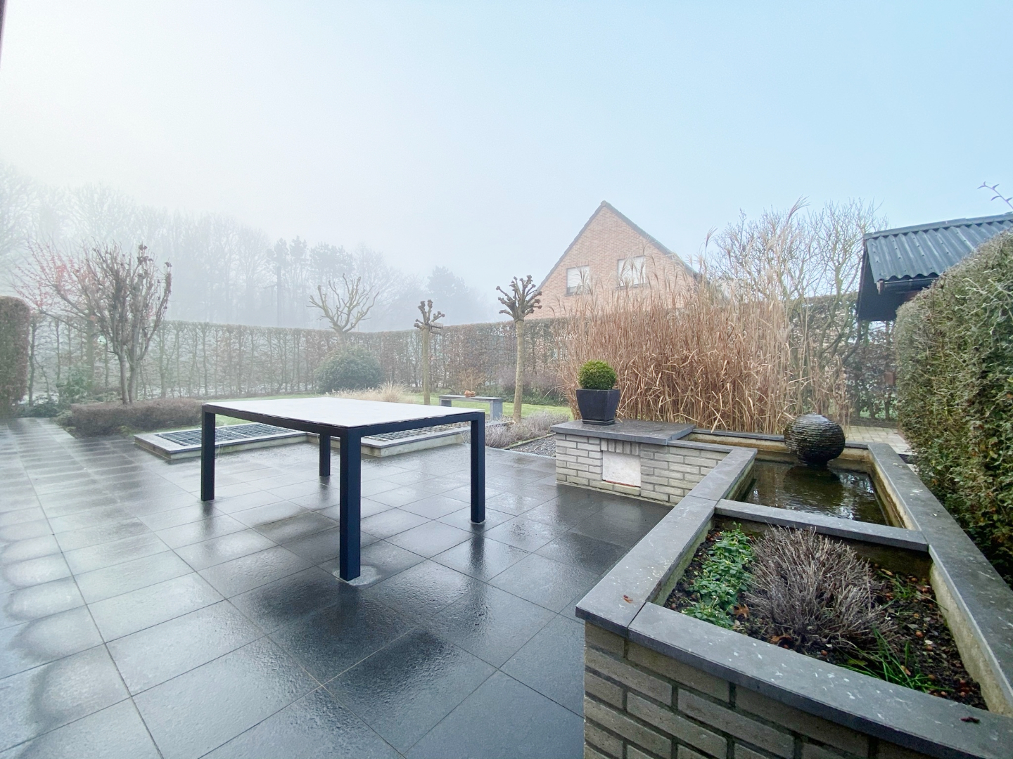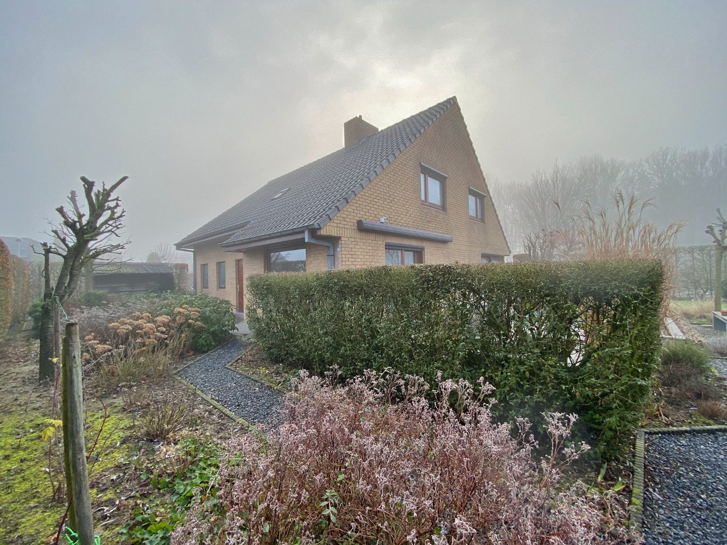 Buiten is een afgesloten zonnige tuin met terras, tuinhuis en vooraan ruime oprit met voortuin.