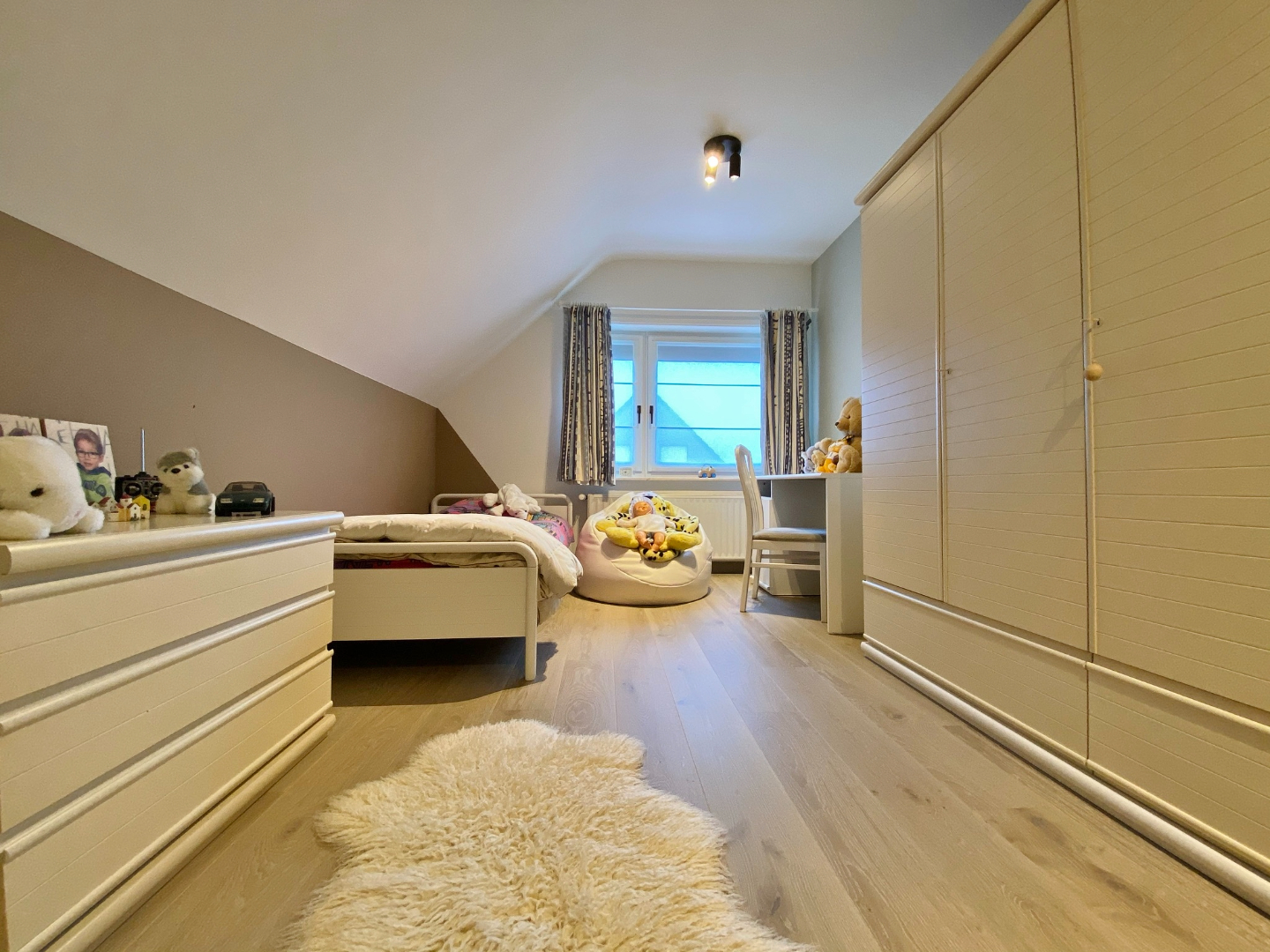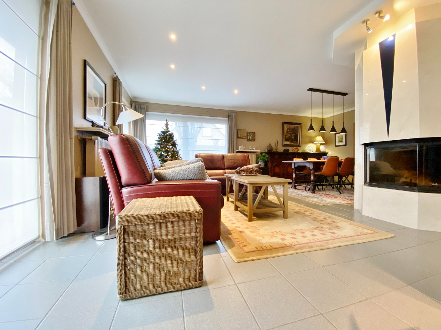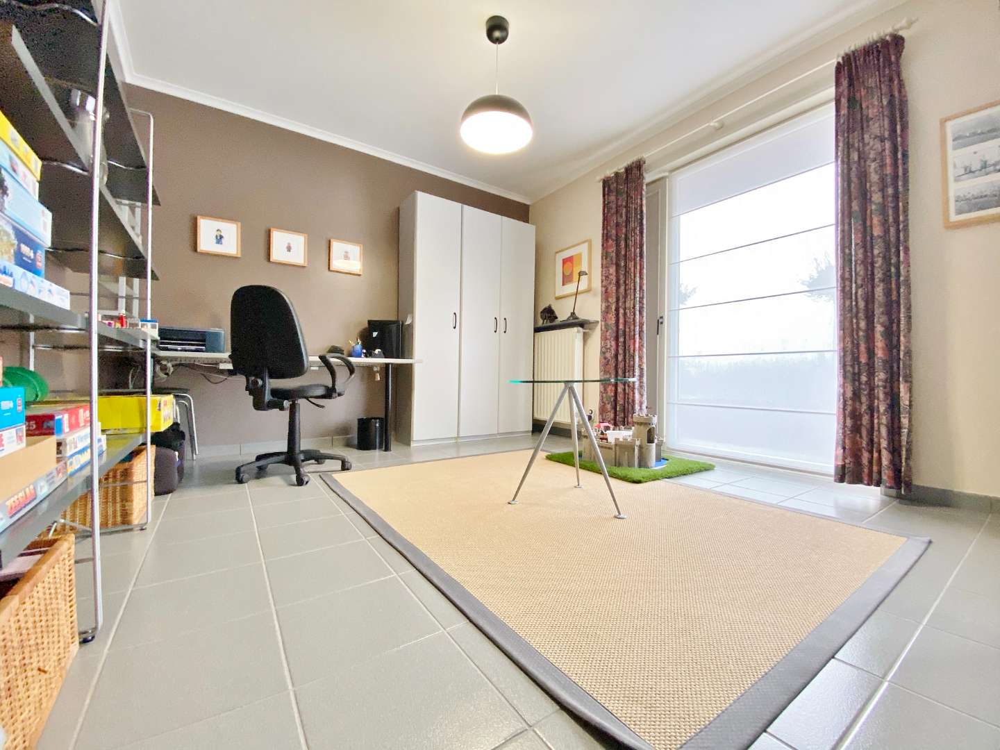 Deze woning is centraal gelegen in een rustige doodlopende straat en omvat een gelijkvloerse verdieping met inkom, toilet, ruime lichtrijke leefruimte met eet- en zitplaats, half-open volledig ingerichte keuken met eetplaats, berging met aansluiting voor wasmachine, ruime slaapkamer/ bureauruimte/ hobbyruimte, moderne badkamer met dubbel lavabomeubel en ligbad, en een ruime garage met elektrische poort. Op het eerste verdiep zijn 3 slaapkamers, een bergruimte, en een badkamer met douche, lavabomeubel en toilet.