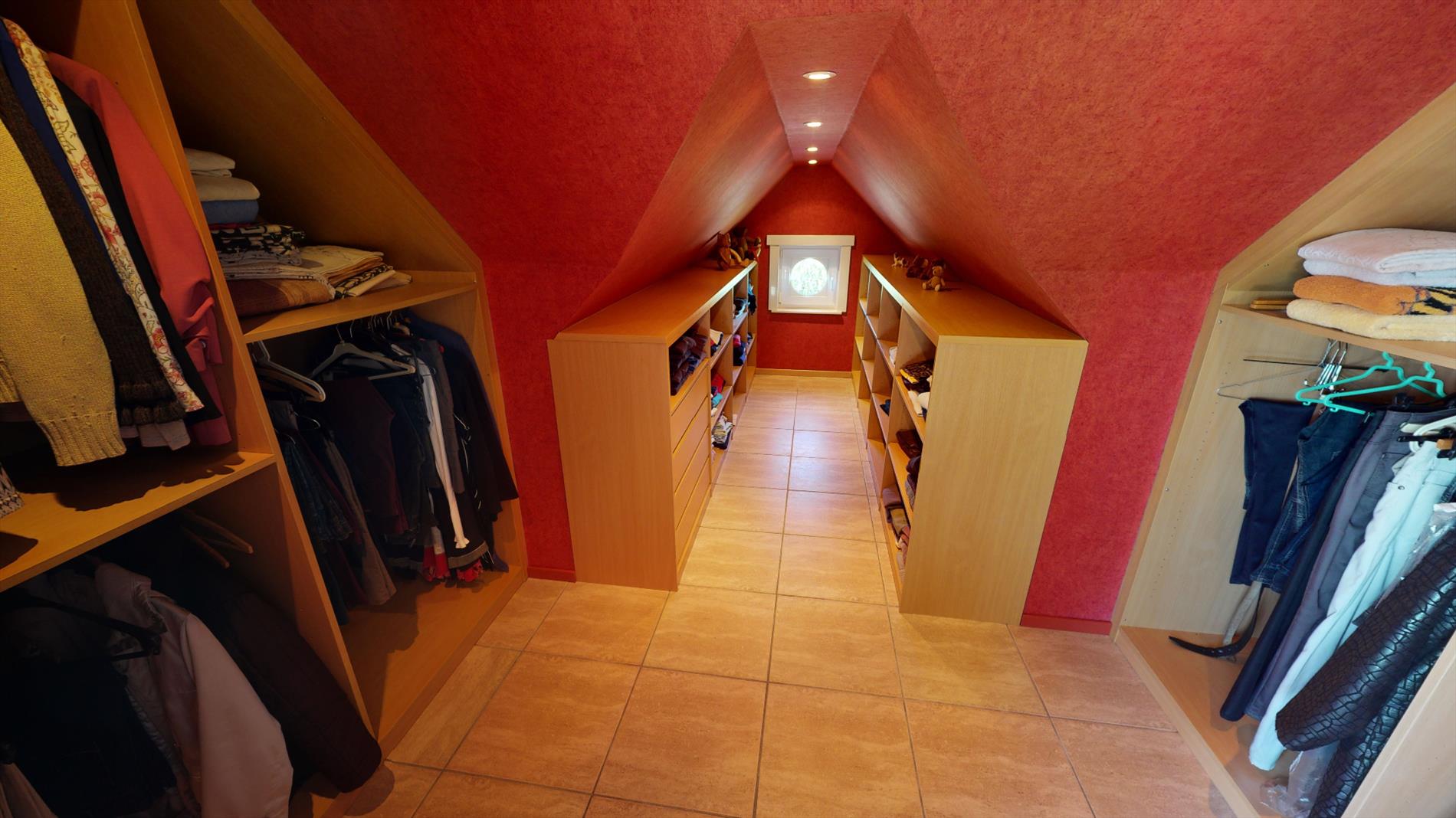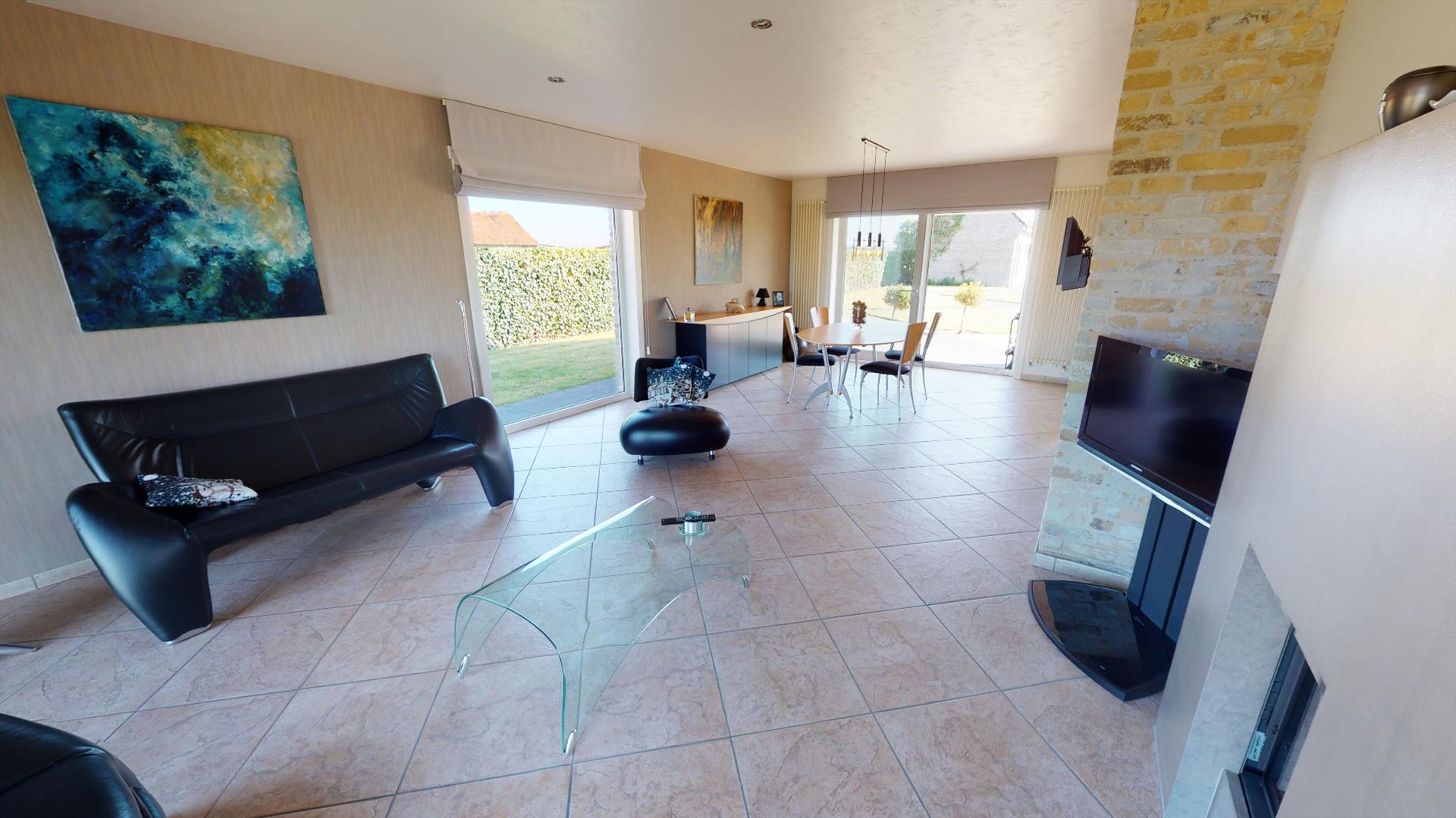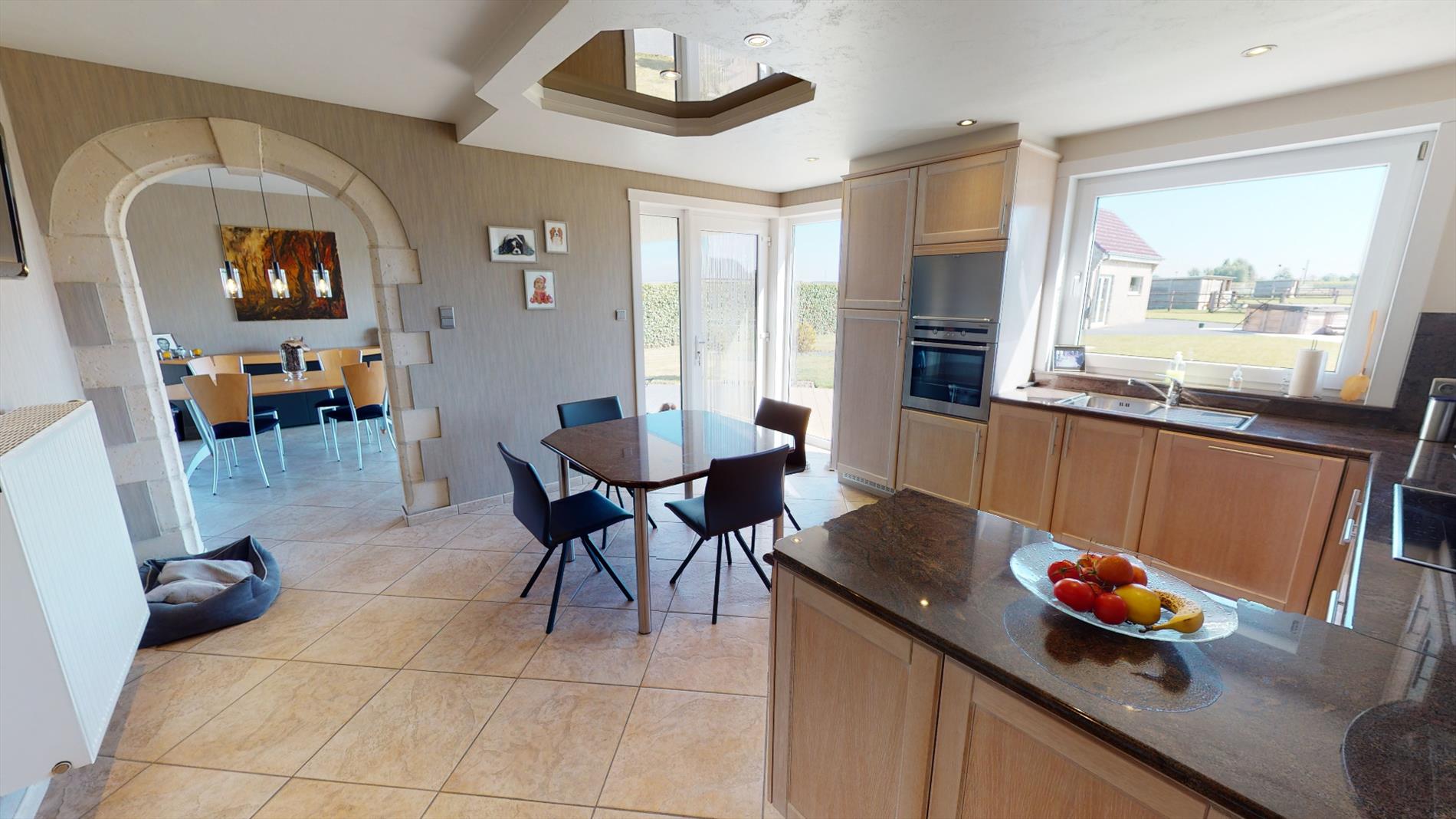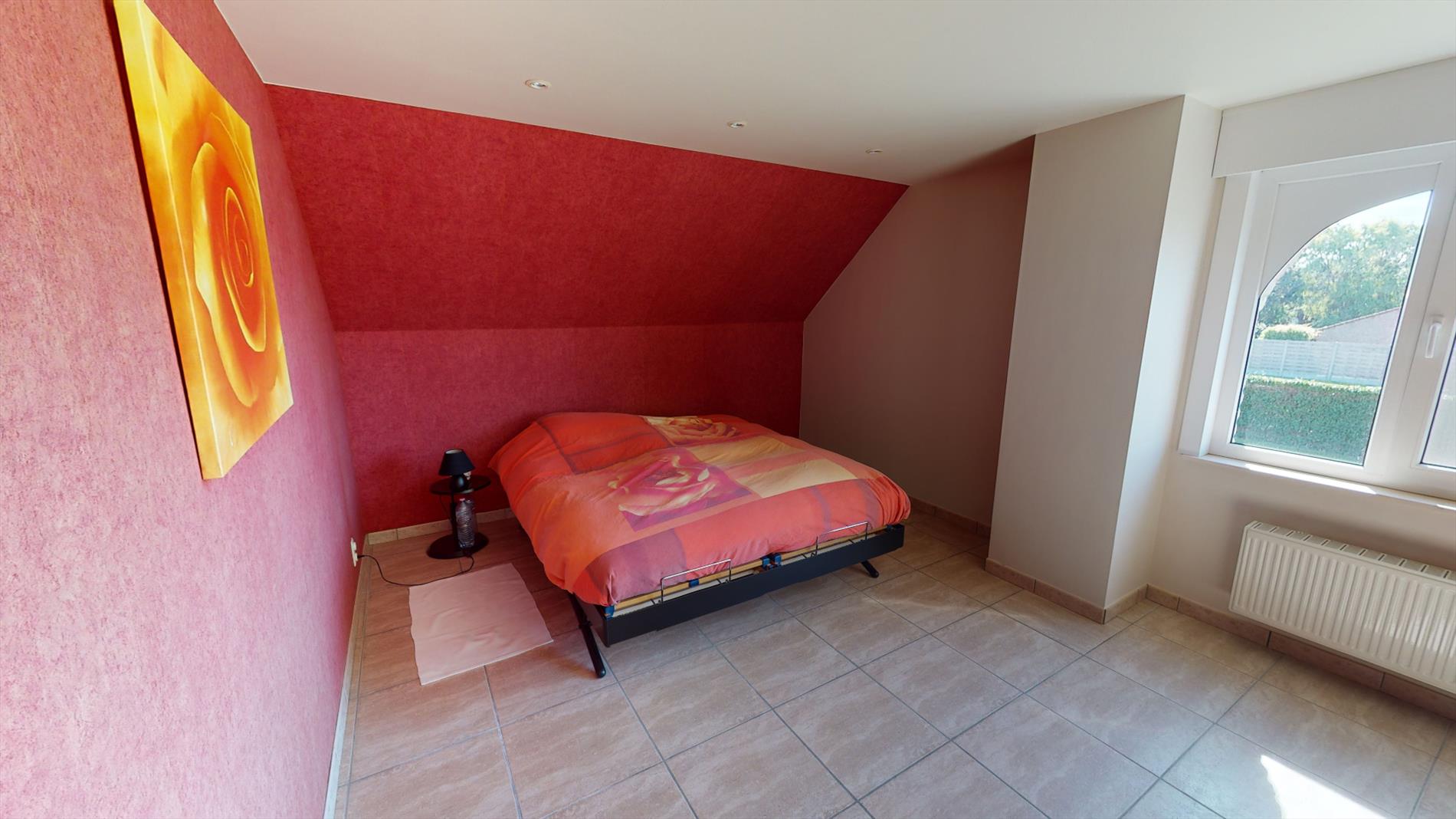 De woning omvat een gelijkvloerse verdieping met een lichtrijke inkom met gastentoilet, gezellig salon met inbouwcassette op hout en eetplaats met zicht op de prachtige tuin en achterliggende weiden, ruime volledig ingerichte keuken voorzien van alle apparaten, berging, bureau en een grote garage met sectionale poort. Op het eerste verdiep bevindt zich een grote master bedroom (22m²) met aanpalend een luxueus ingerichte dressing, twee ruime gastenkamers en een prachtige badkamer met douche, bad en lavabomeubel. De ruime zolder biedt nog veel uitbreidingsmogelijkheden.