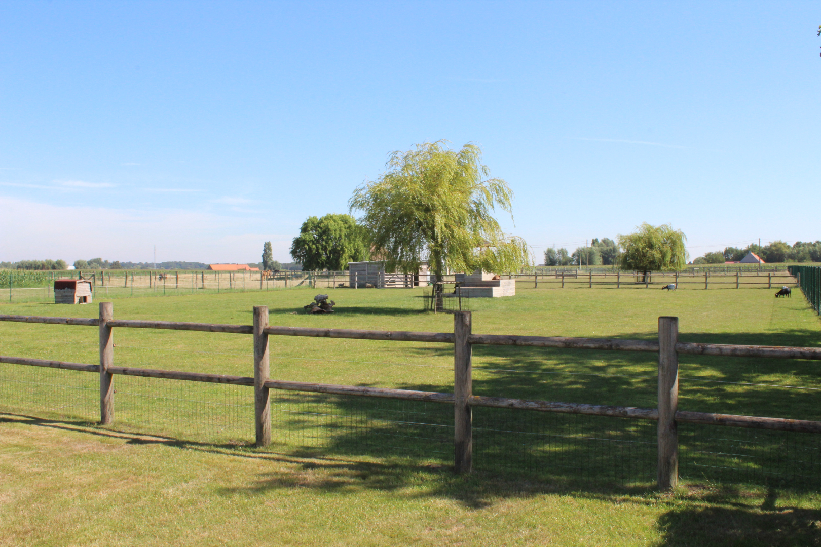 De aanpalende weiden zijn volledig en kwalitatief omheind en onderverdeeld in 3 percelen met mooie houten stallingen voorzien van elektriciteit en water.