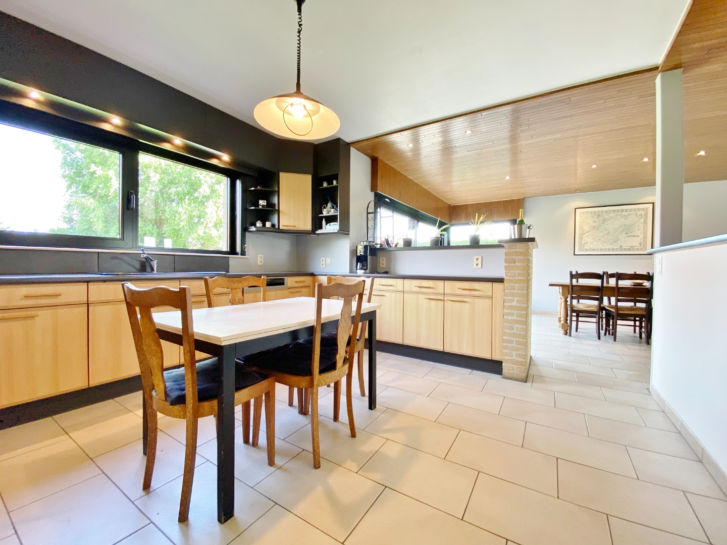 Deze rustig gelegen eigendom omvat een gelijkvloerse verdieping met inkom, apart toilet, ruime lichtrijke leefruimte met eet eet- en zitplaats voorzien van houtkachel en een open volledig ingerichte keuken, wasplaats, slaapkamer en garage met elektrische poort. Op het eerste verdiep zijn 4 ruime slaapkamers, een apart toilet en een badkamer met ligbad, douche en dubbele lavabomeubel. Er is tevens een zolderruimte op het eerste verdiep en een extra zolder op het tweede verdiep bereikbaar via zoldertrap. Buiten is een aangelegde en goed onderhouden tuin aanwezig met 2 opritten, groot terras en tuinhuis.