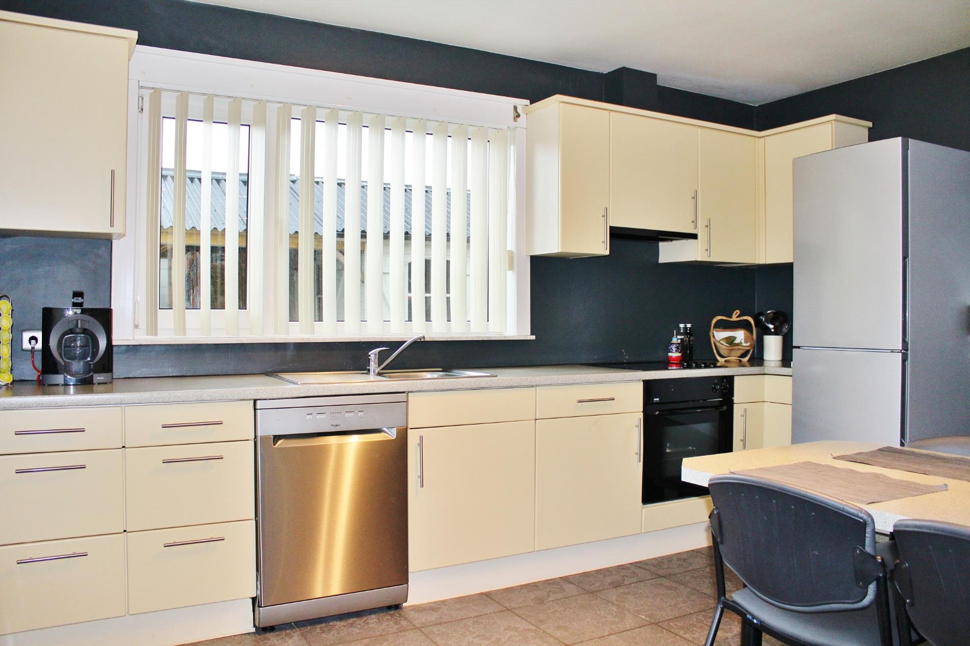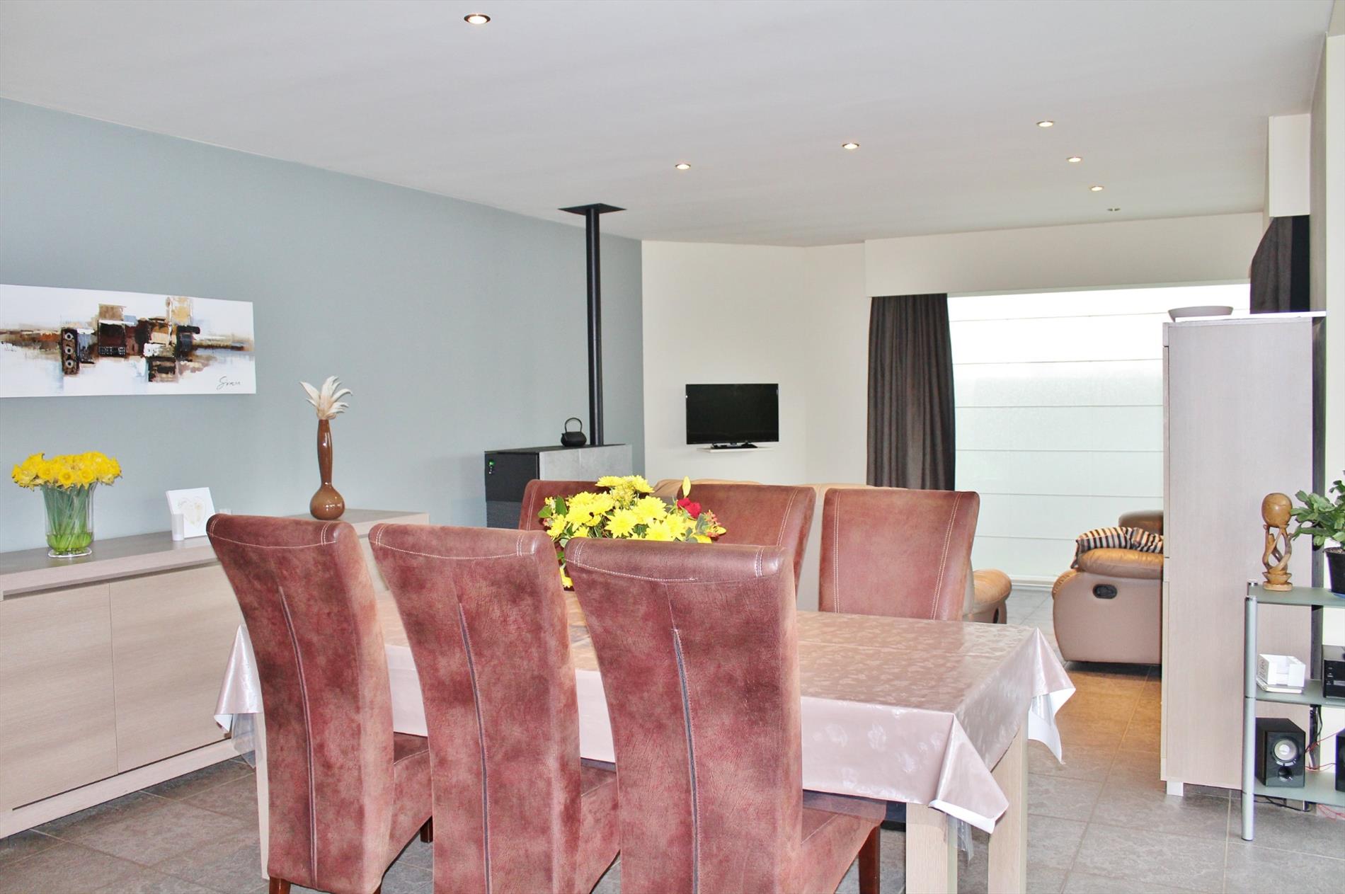 Deze instapklare en perfect onderhouden open bebouwing is als volgt ingedeeld: een gelijkvloerse verdieping met inkomhal, gastentoilet, een ruime woon- annex eetkamer met palletkachel en aansluitend een volledig ingerichte half-open keuken, een wasplaats en een ruime garage met automatische poort. Op de eerste verdieping zijn 3 ruime slaapkamers, een badkamer bestaande uit een wastafel en douche en een apart toilet.