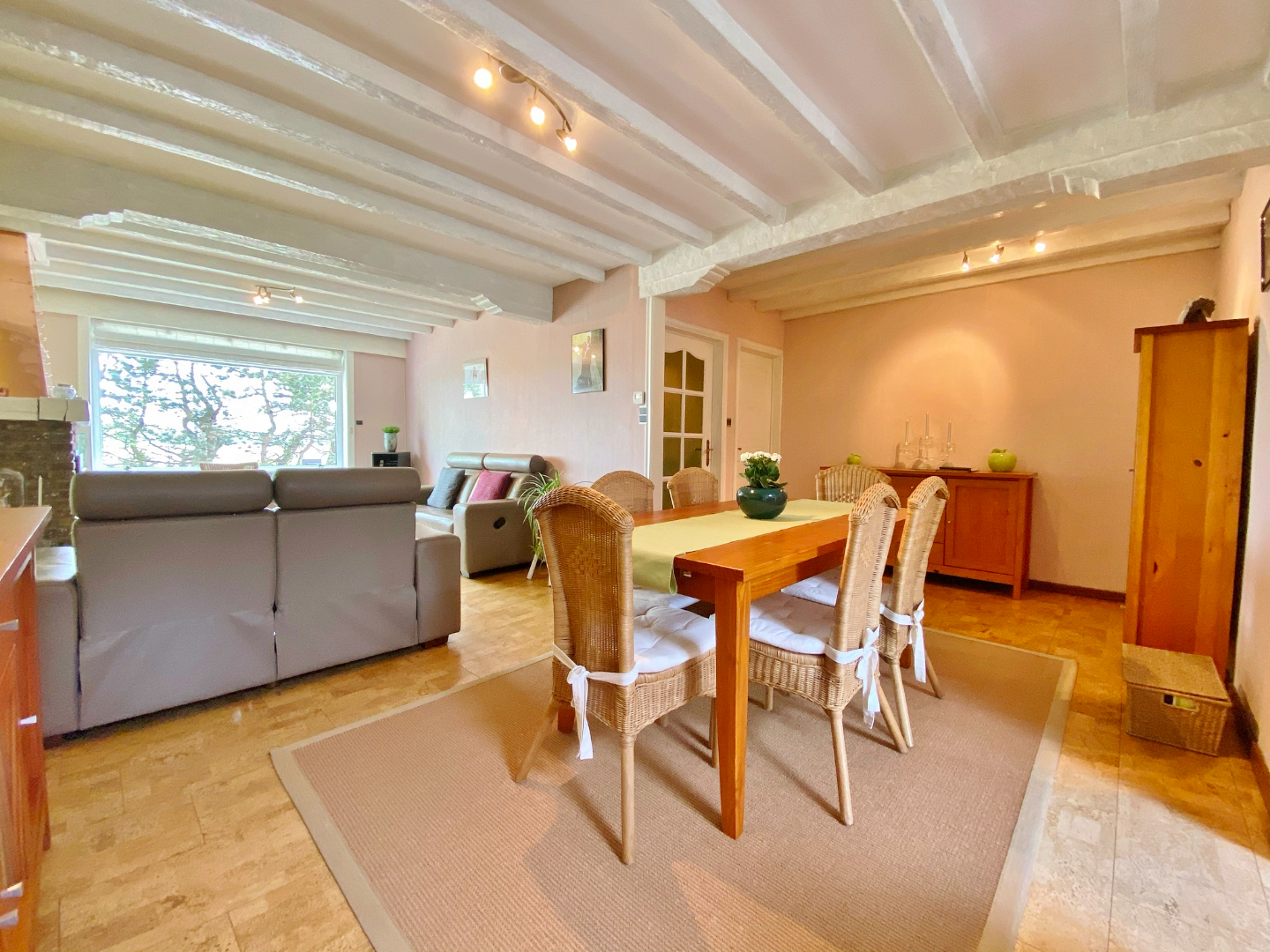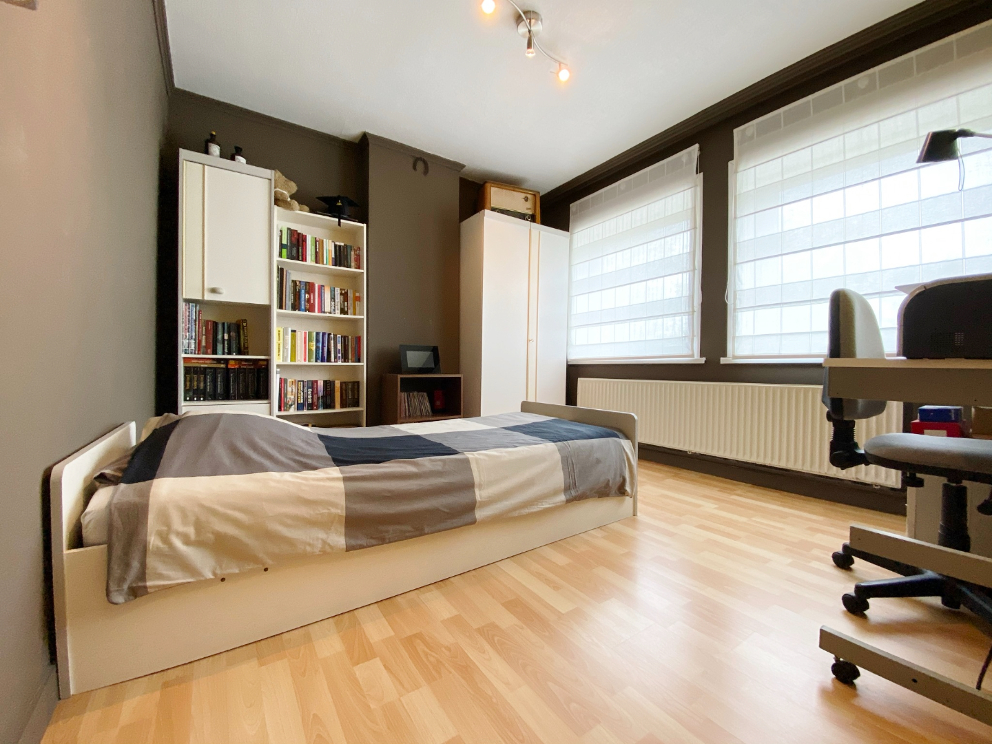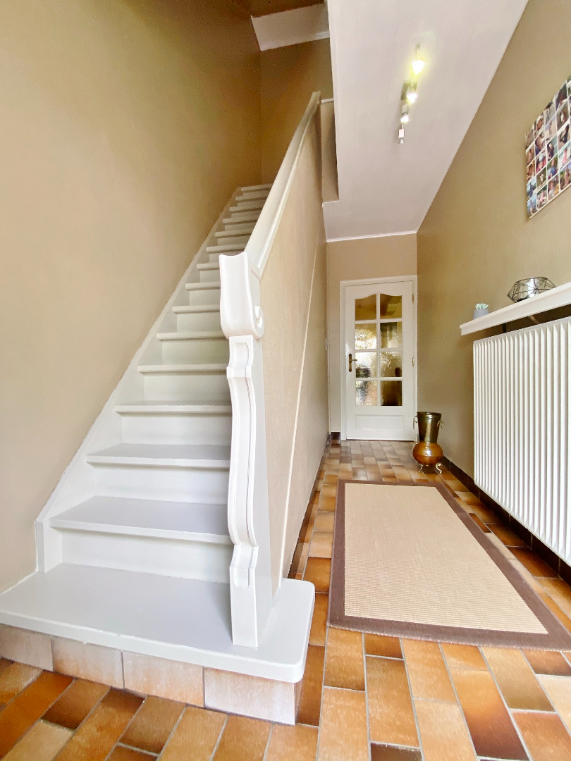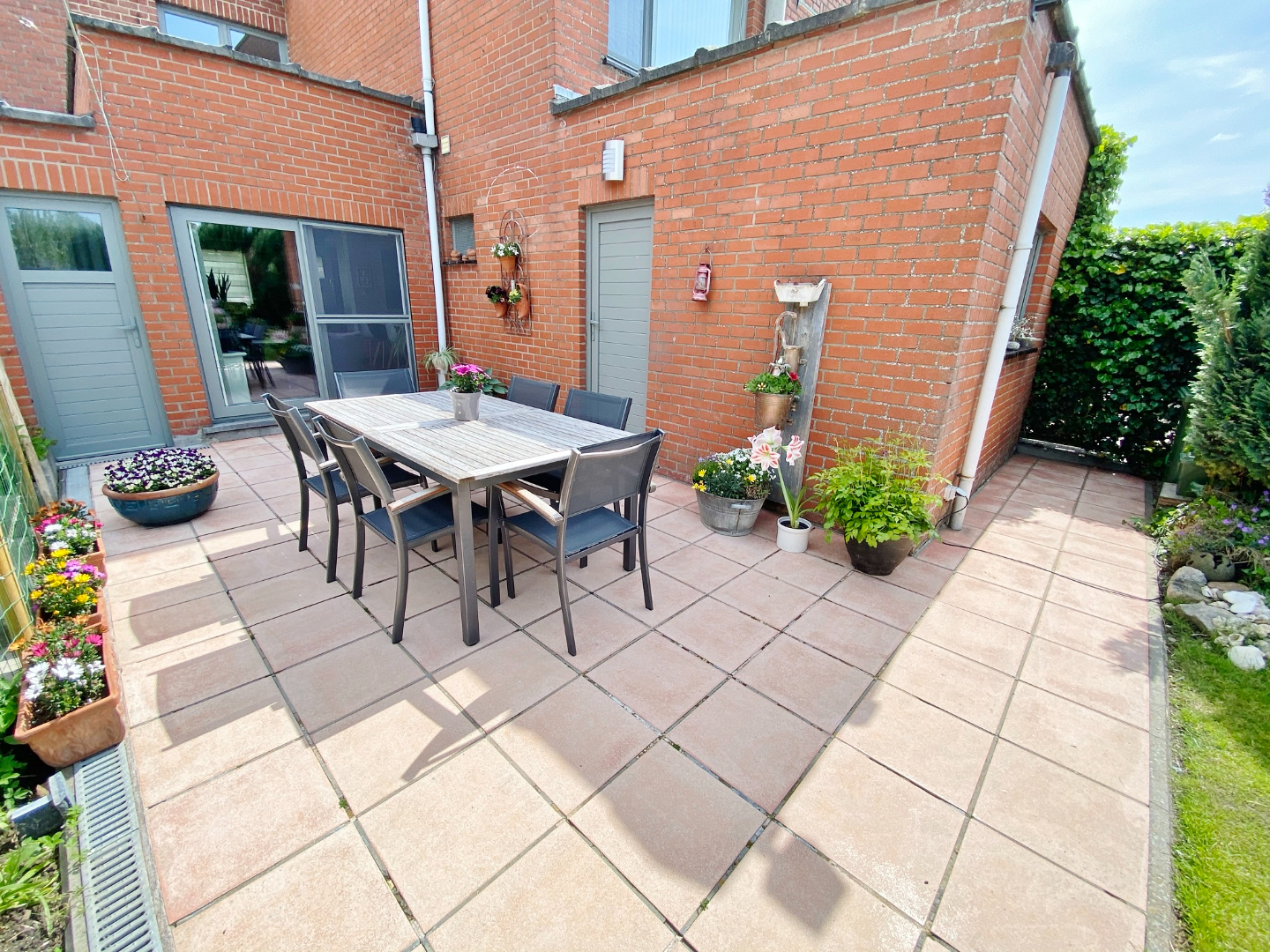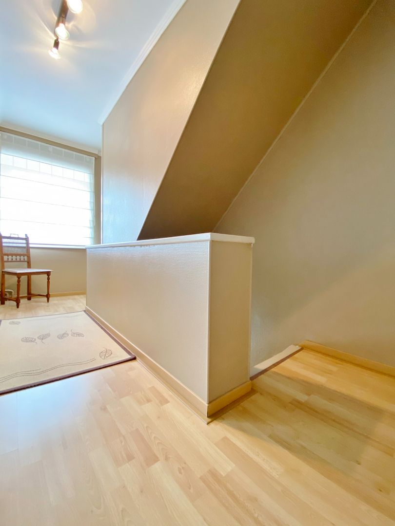 Deze woning omvat een gelijkvloerse verdieping met inkom, ruime lichtrijke leefruimte met eet- en zitplaats, volledig ingerichte keuken met extra zithoek, apart toilet, wasplaats en ruime berging. Op het eerste verdiep zijn 3 ruime slaapkamers en een badkamer met dubbel lavabomeubel en ligbad. Er is tevens een zolderverdiep ( bereikbaar via vaste trap ) waar mogelijkheid is tot het bijmaken van extra slaapkamers. De garage rechts van de woning hoort bij deze woning en geeft via een gang doorgang tot aan de tuin. Er is tevens een kelder. Buiten is een zuidwest gerichte tuin met terras en tuinhuis.
