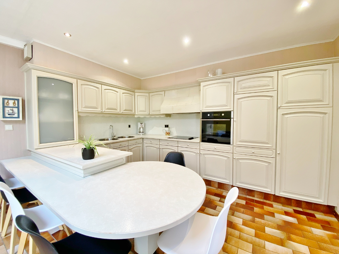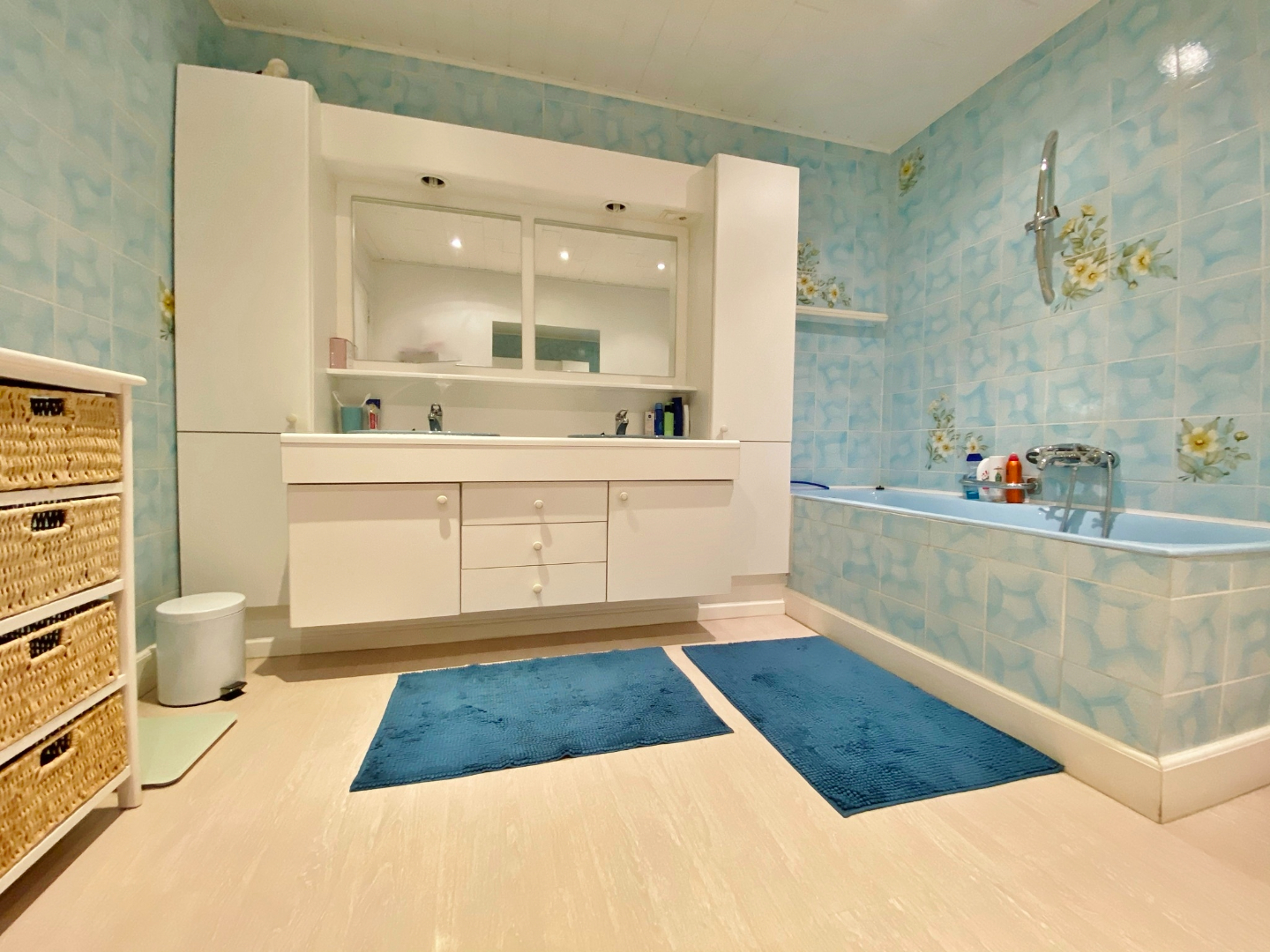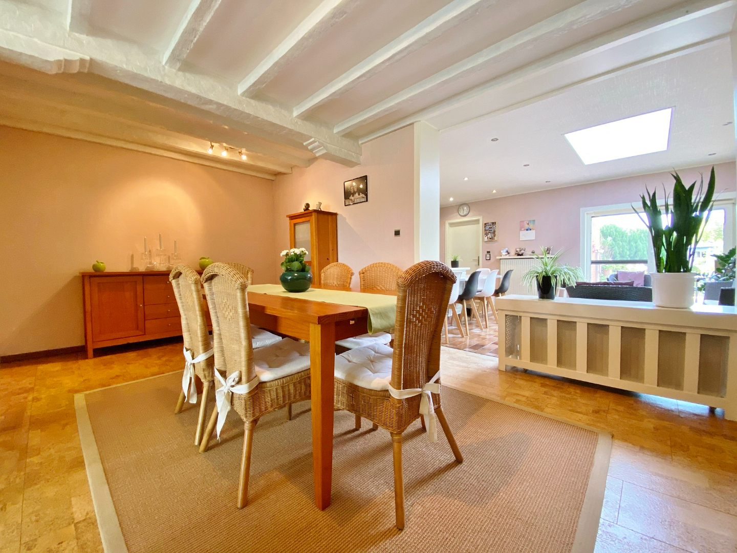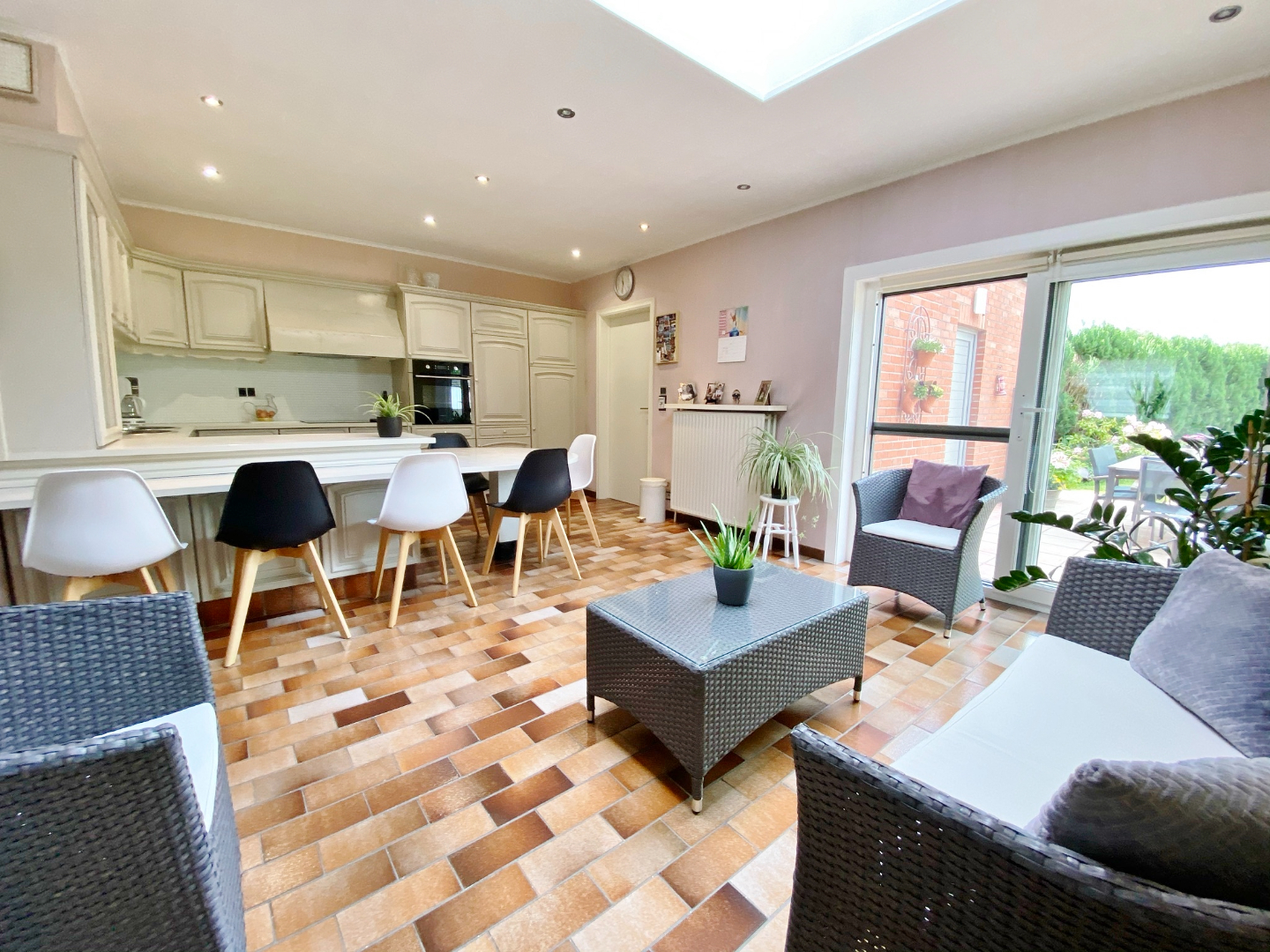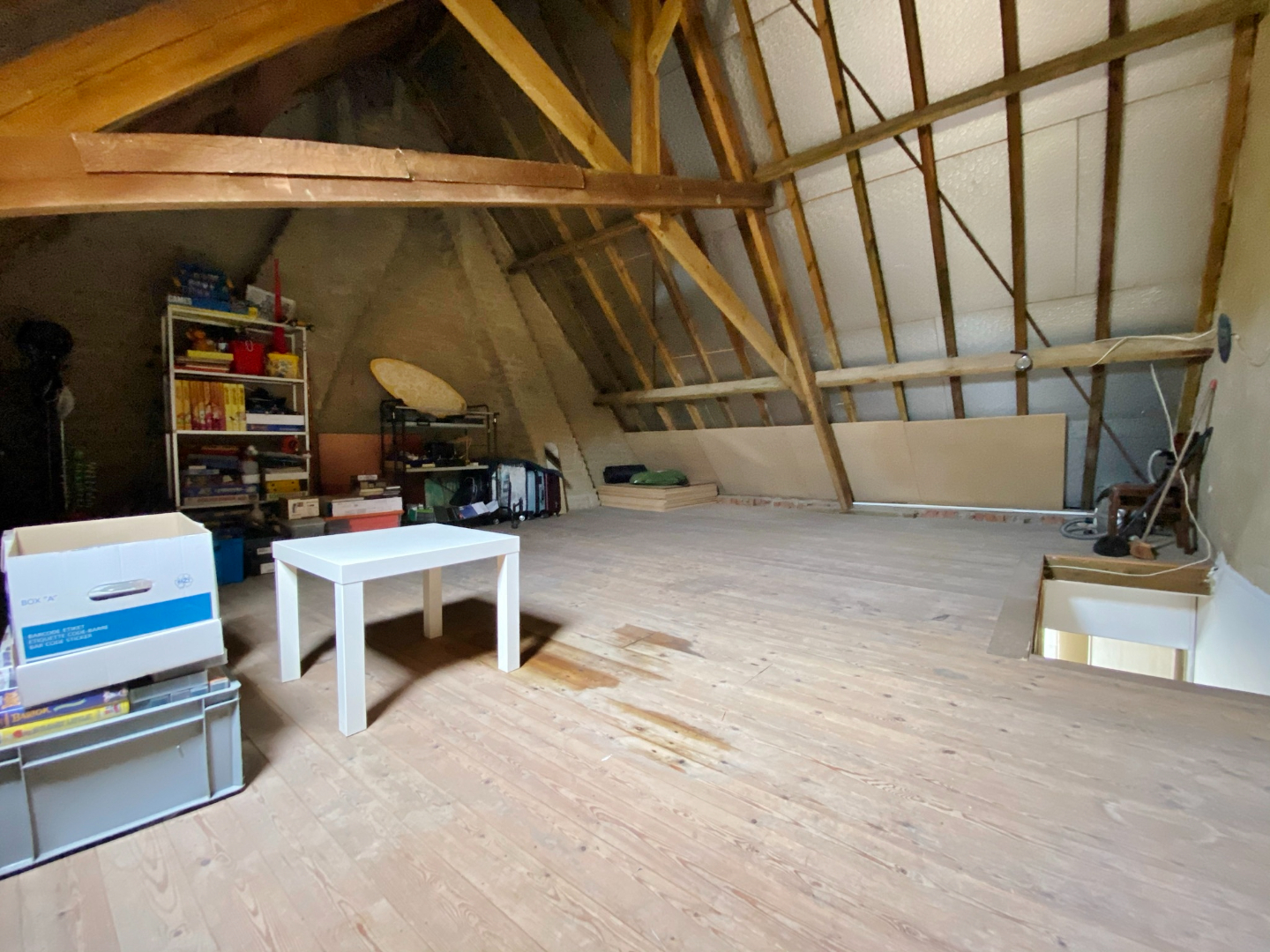 Deze woning omvat een gelijkvloerse verdieping met inkom, ruime lichtrijke leefruimte met eet- en zitplaats, volledig ingerichte keuken met extra zithoek, apart toilet, wasplaats en ruime berging. Op het eerste verdiep zijn 3 ruime slaapkamers en een badkamer met dubbel lavabomeubel en ligbad. Er is tevens een zolderverdiep ( bereikbaar via vaste trap ) waar mogelijkheid is tot het bijmaken van extra slaapkamers. De garage rechts van de woning hoort bij deze woning en geeft via een gang doorgang tot aan de tuin. Er is tevens een kelder. Buiten is een zuidwest gerichte tuin met terras en tuinhuis.