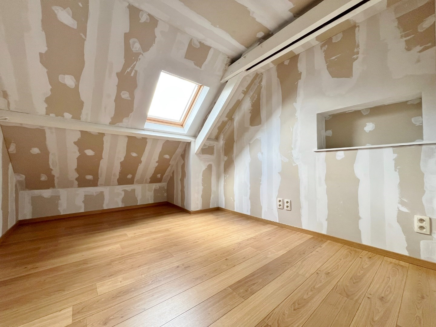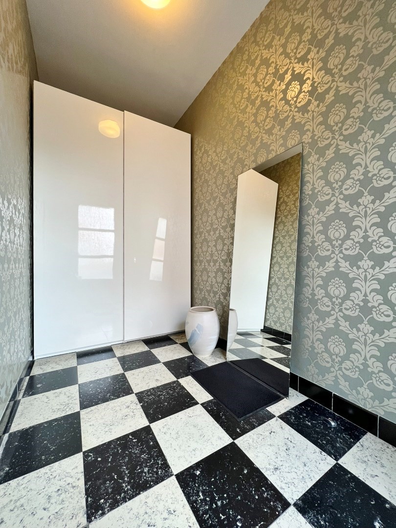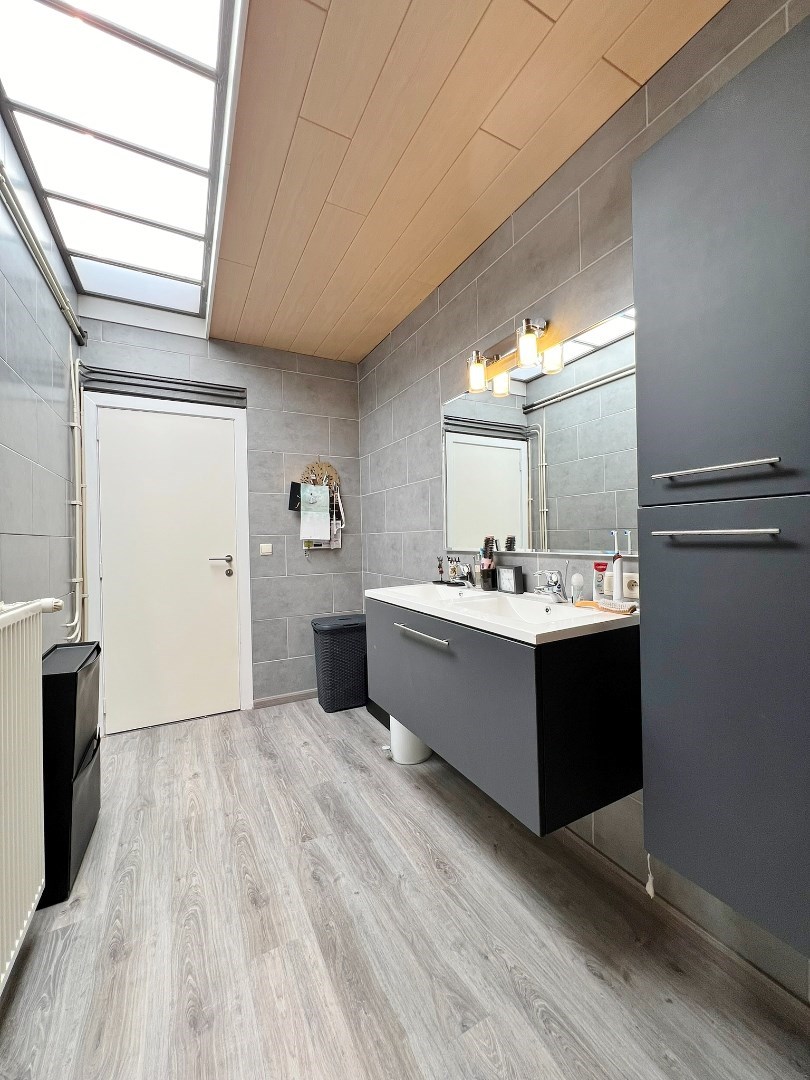 Terug in de leefruimte komen we via de ruime traphal op het eerste verdiep waar we twee ruime slaapkamers terugvinden waarvan één met aansluitende dressing en een badkamer voorzien van ligbad, lavabomeubel en toilet. Op het tweede verdiep vinden we nog twee verder in te richten slaapkamers terug.