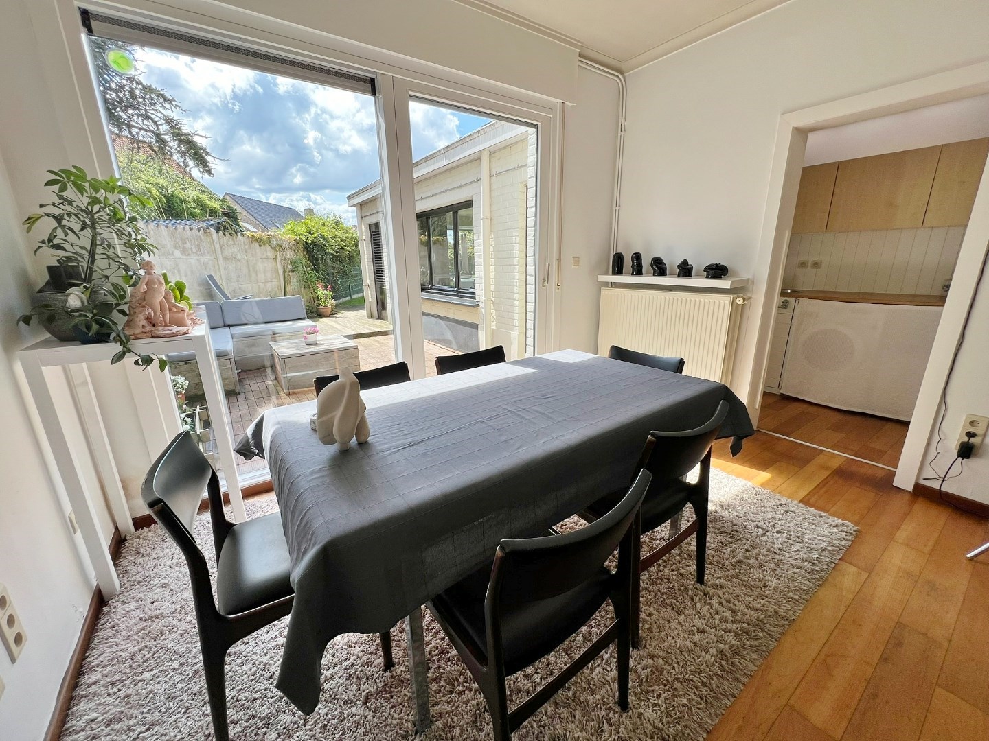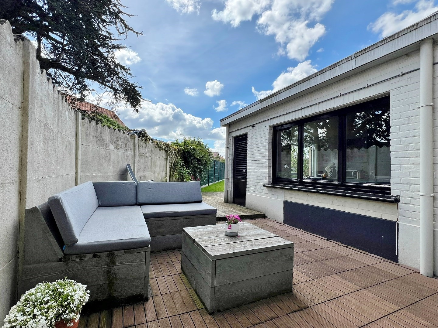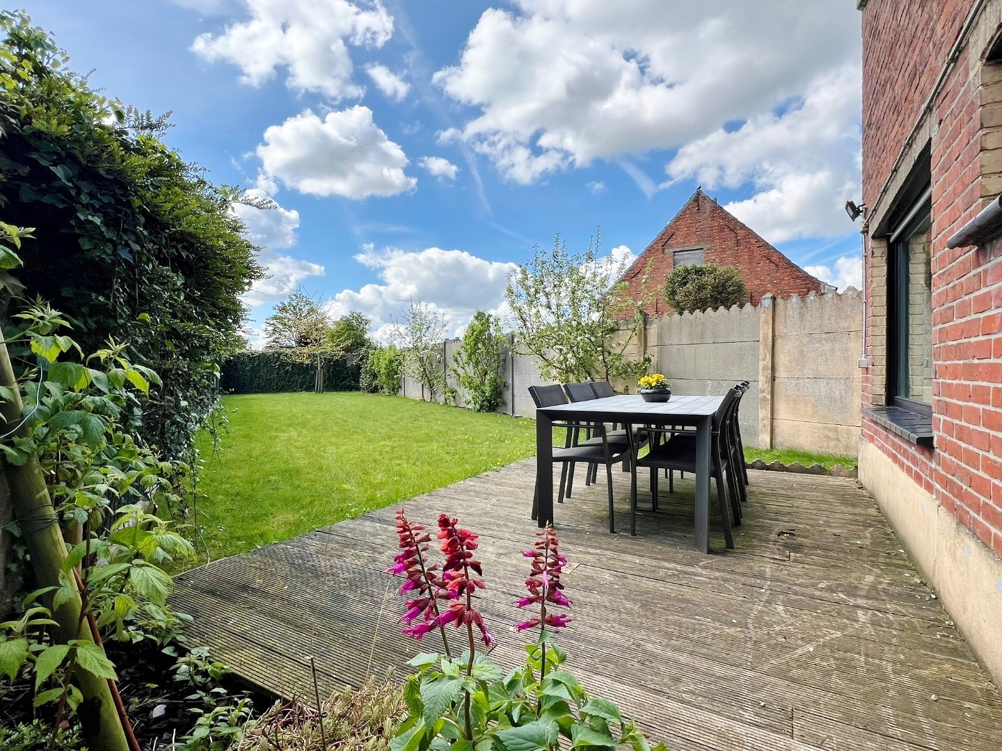 Buiten kan je genieten van de zuidwest gerichte afgesloten tuin met terras en tuinhuis.