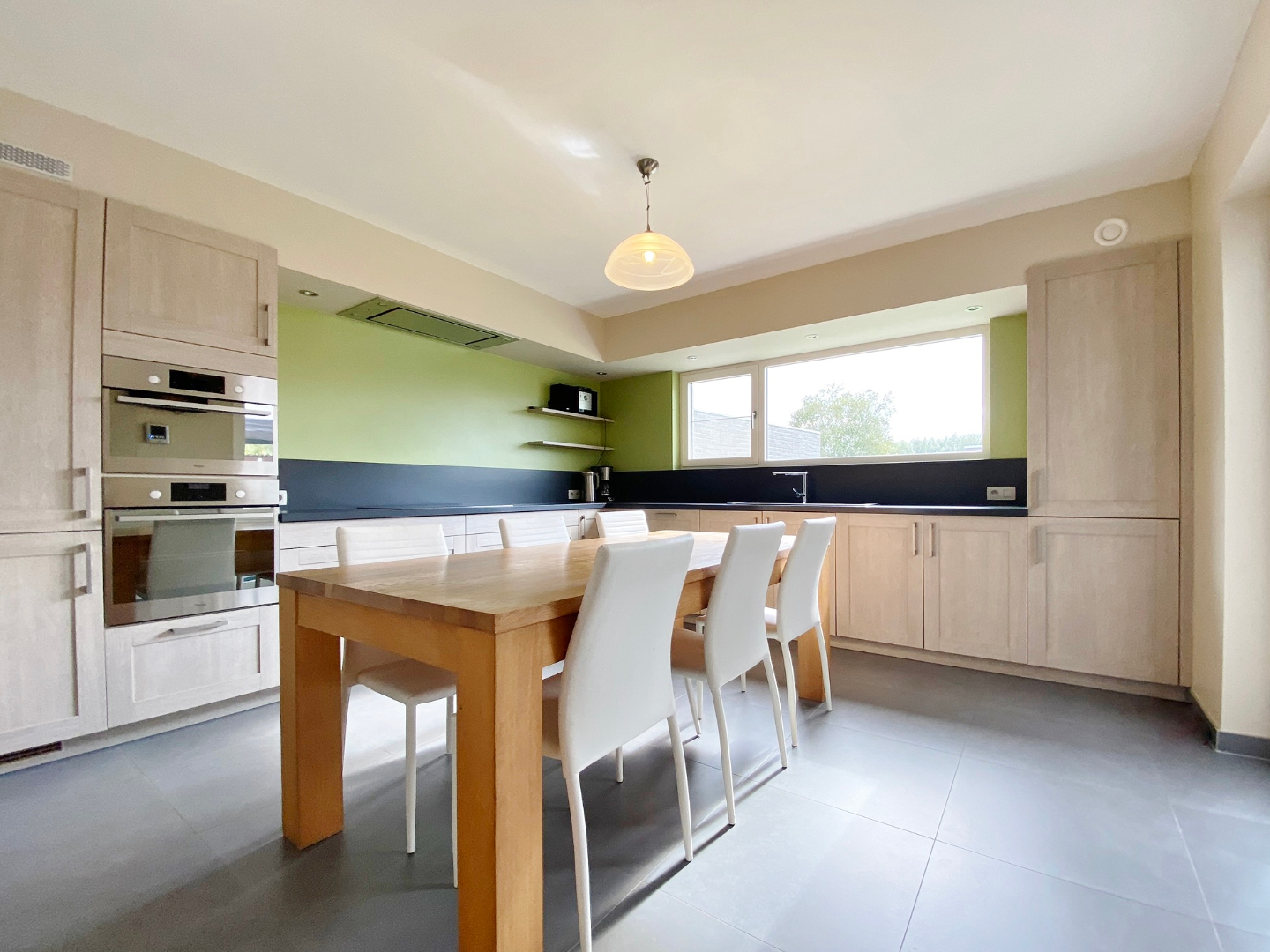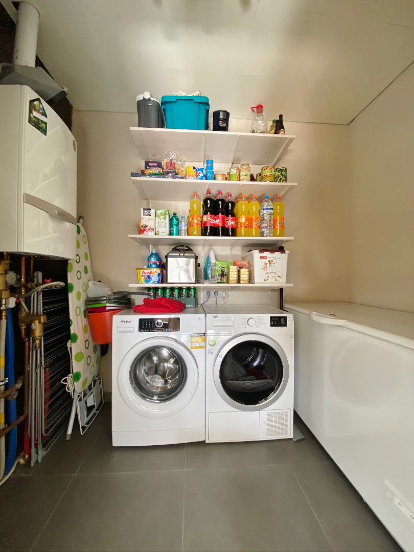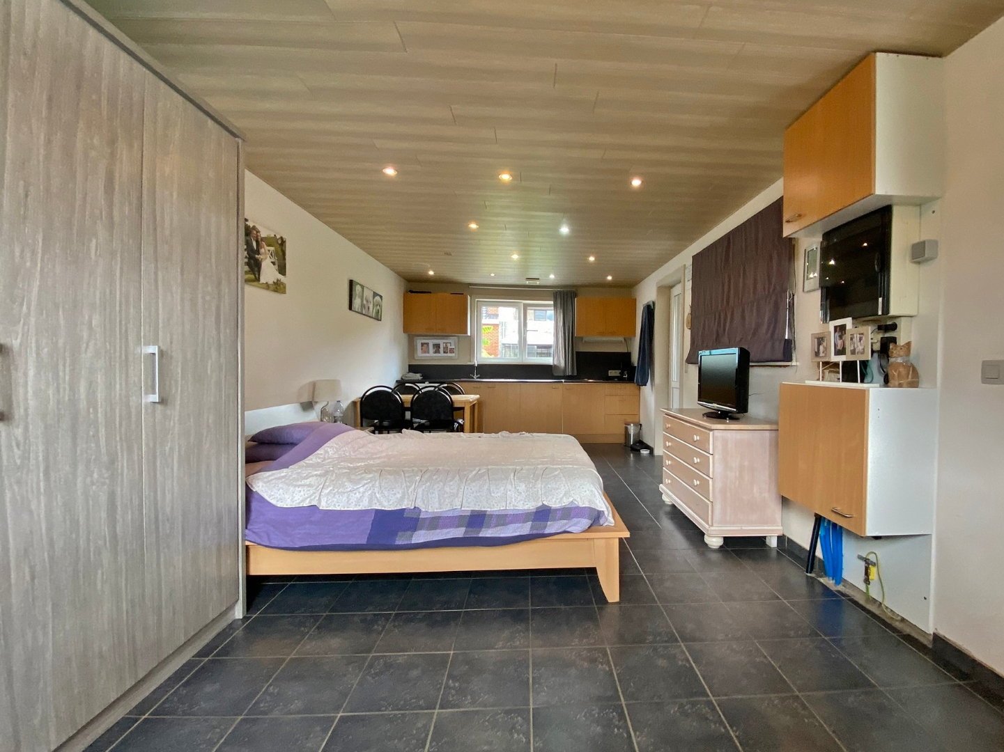 Buiten is een zuid-gerichte tuin met aangelegd terras, zwembad, tuinberging, serre en ruime buitenberging met extra overdekt terras (momenteel ingericht als aparte studio met ingerichte keuken, kan ook perfect gebruikt worden als pool house/bergplaats). Vooraan is tevens een ruime oprit voor twee wagens.