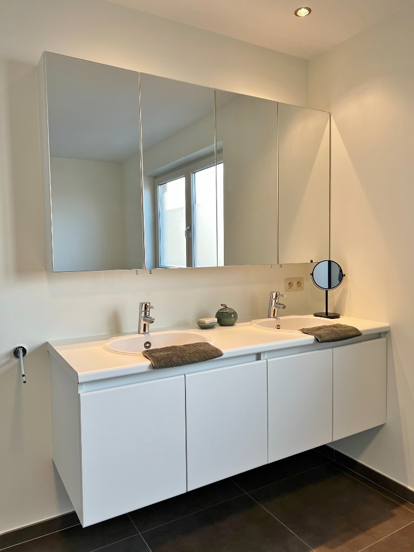 - isolatie in het hellend dak (16cm), plat dak (10cm) en in de vloer (6cm).