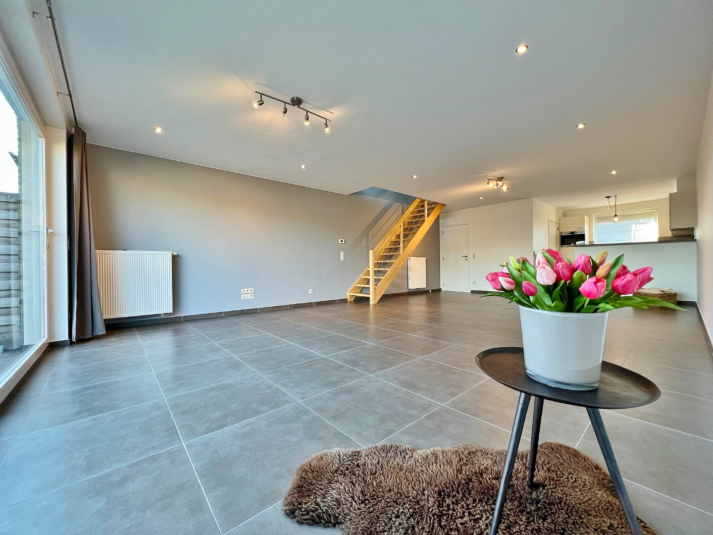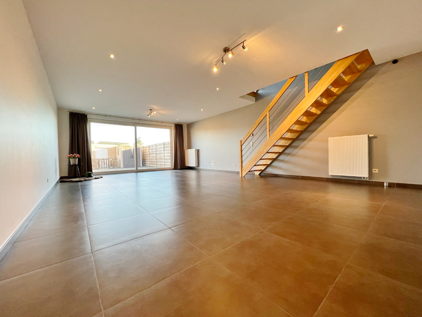 Deze instapklare woning (bj: 2008) omvat een gelijkvloerse verdieping met inkom, apart toilet, ruime lichtrijke leefruimte met open volledig ingerichte keuken ( vaatwas, frigo, combi-oven, vitro-keramische kookplaat, dampkap en spoelbak ) en een bergruimte. Op het eerste verdiep zijn een ruime slaapkamer, badkamer met douche, bad, dubbel lavabomeubel en toilet en een wasplaats. Op het tweede verdiep zijn 2 ruime slaapkamers en een technische berging. Buiten is een terras/tuintje met tuinhuis en toegang tot de garage ( via een achtergelegen straat toegankelijk )